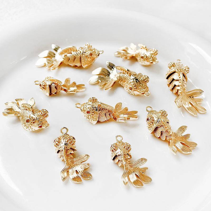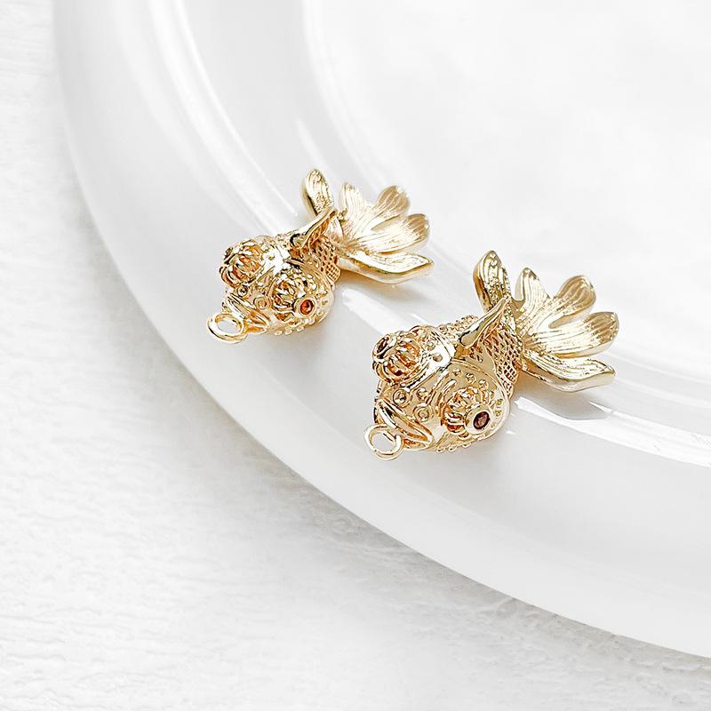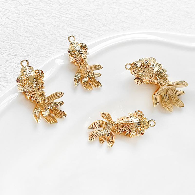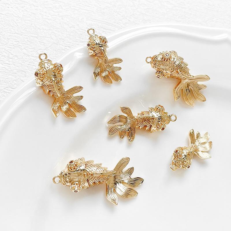 Colgante de koi de oro auténtico chapado en cobre con microcirconio de 18 quilates, joyería artesanal, pulsera, collar, pendientes y accesorios con cuentas.