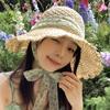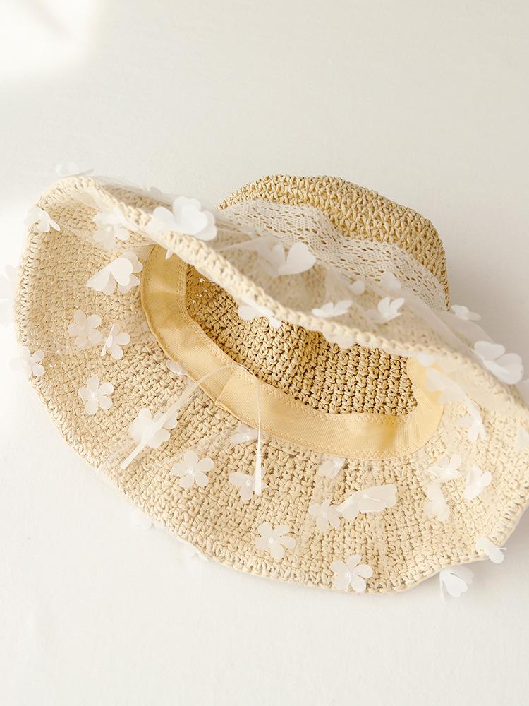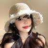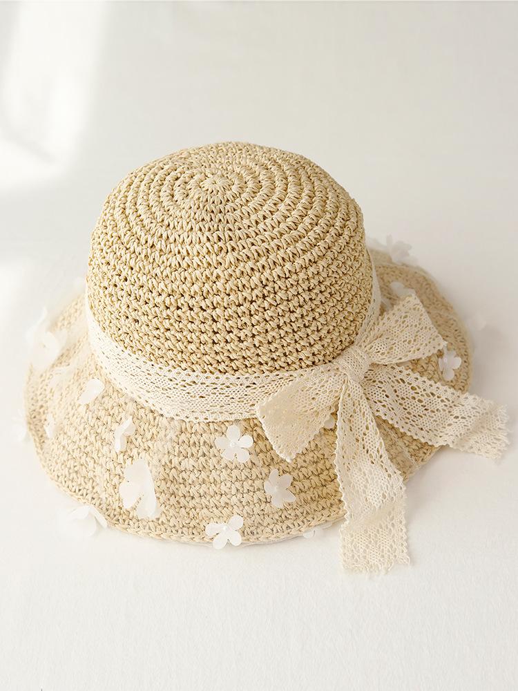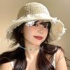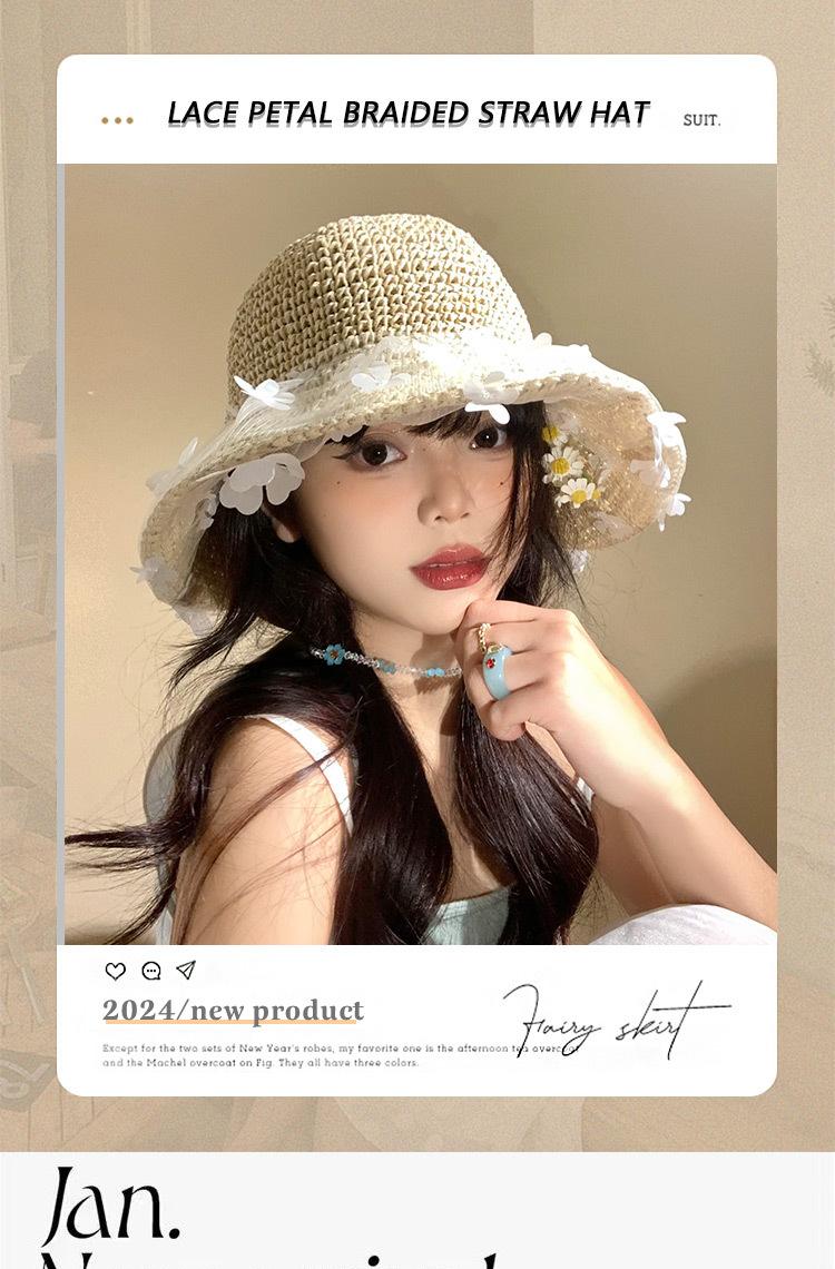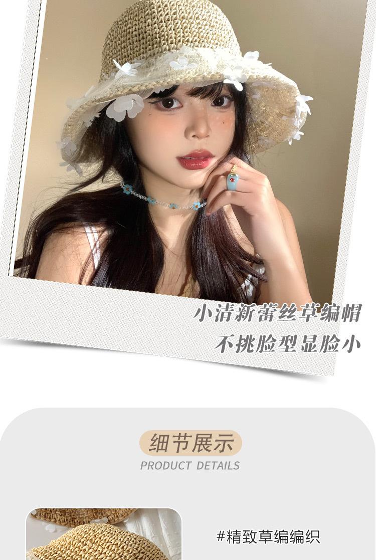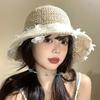 Sombrero de Paja con Flores de Encaje para Mujer Verano Nuevo Vacaciones en la Playa Junto al Mar Sombrero Parasol Protector Solar Sombrero de Paja Calado Francés