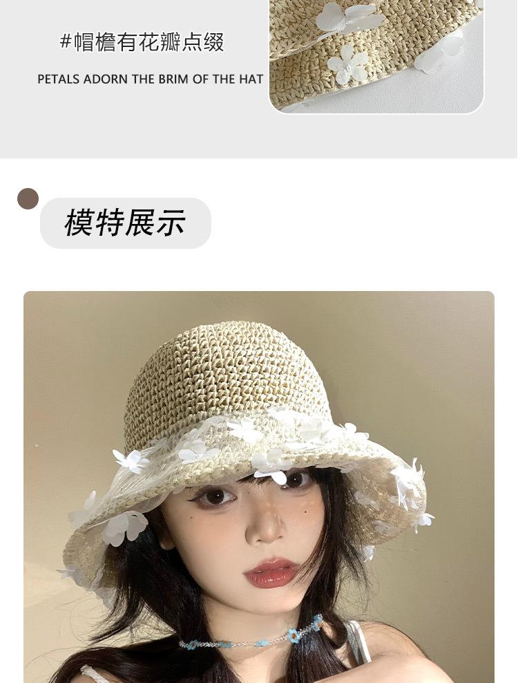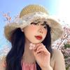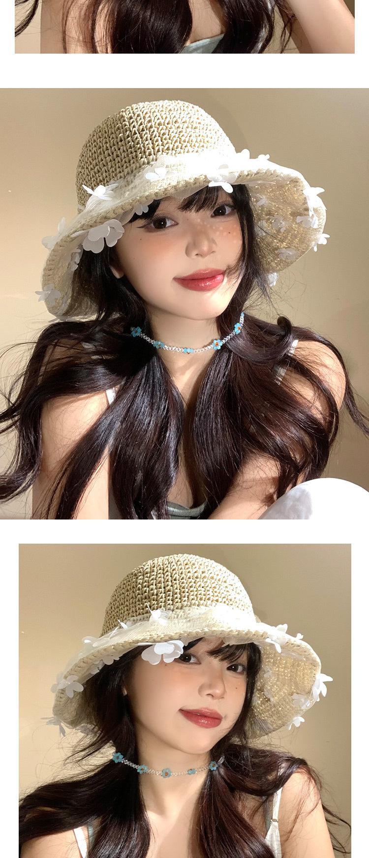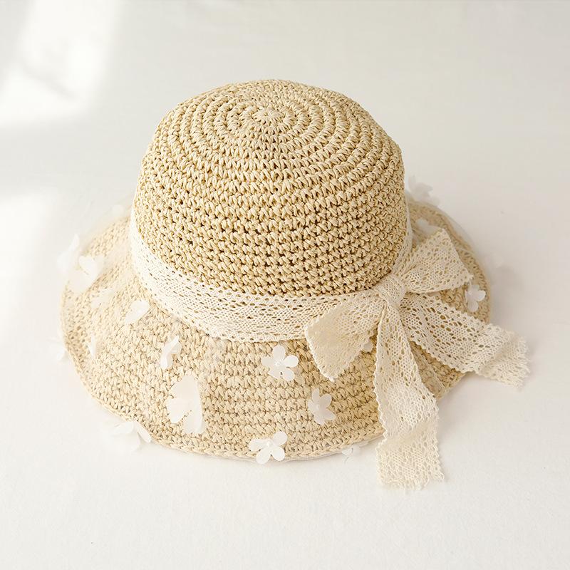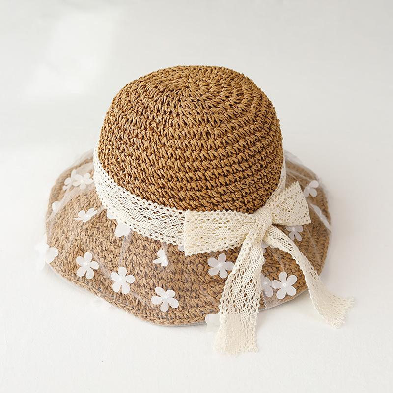 Sombrero de Paja con Flores de Encaje para Mujer Verano Nuevo Vacaciones en la Playa Junto al Mar Sombrero Parasol Protector Solar Sombrero de Paja Calado Francés