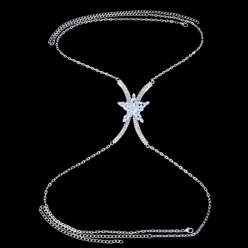 AliExpress Fuego Accesorios para el Cuerpo Mujer Estrella Zircón Forma de X Pedrería Soporte para el Pecho Sexy Cadena para el Cuerpo Bikini 05