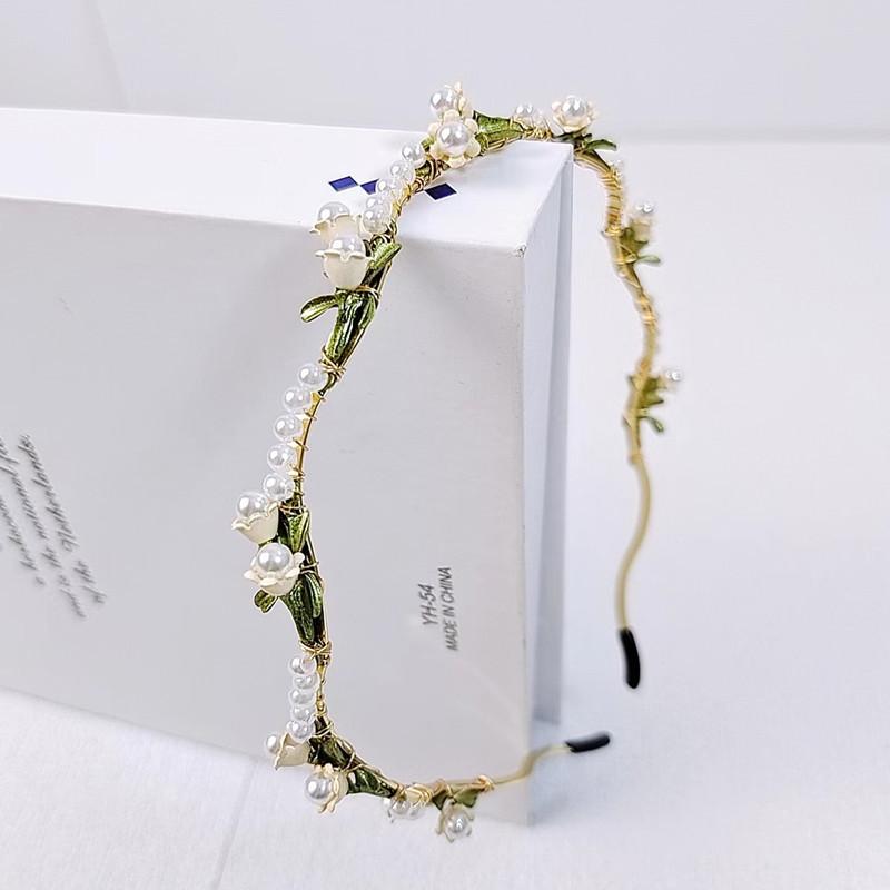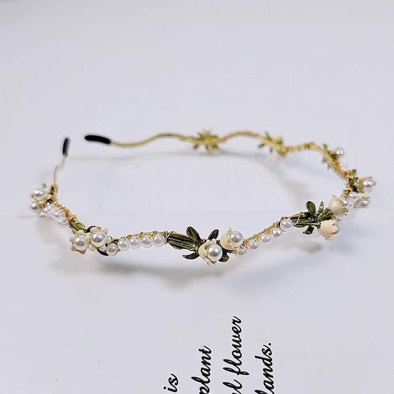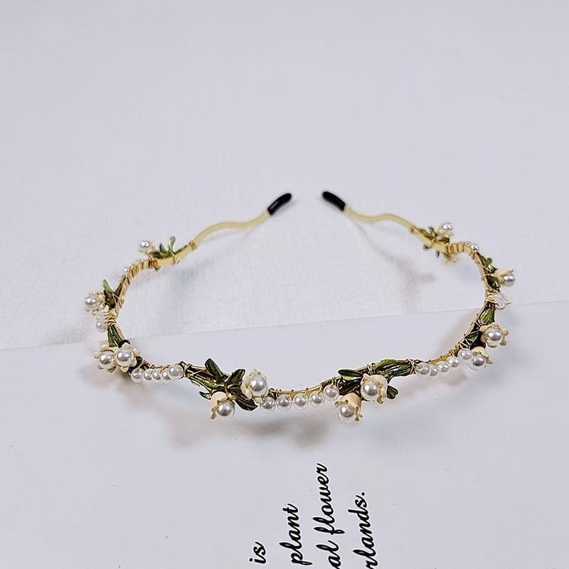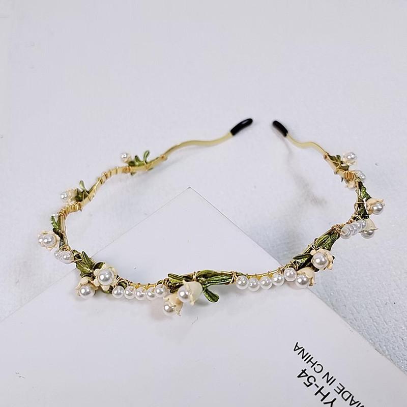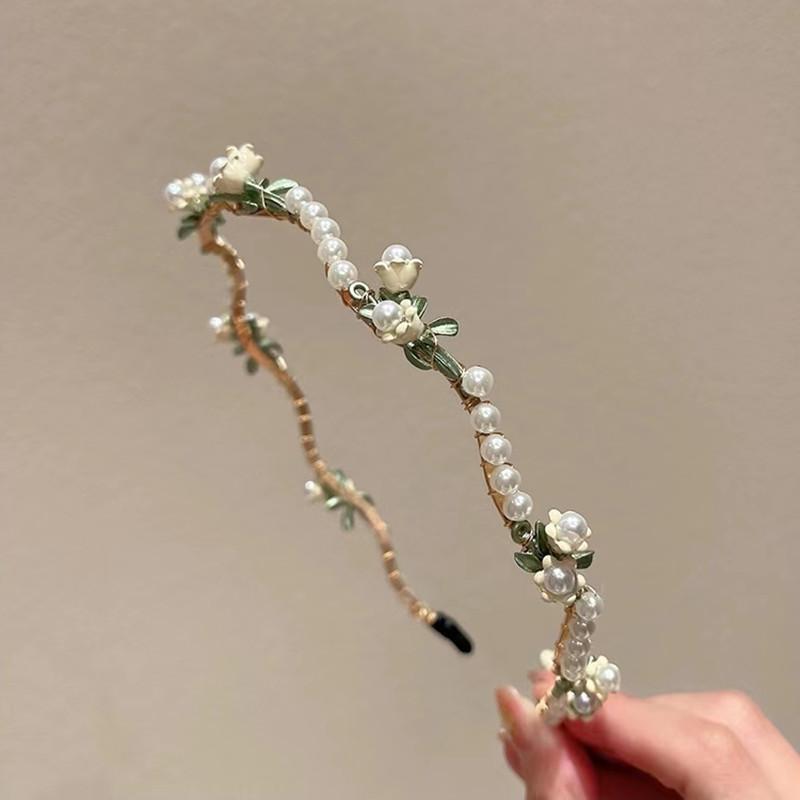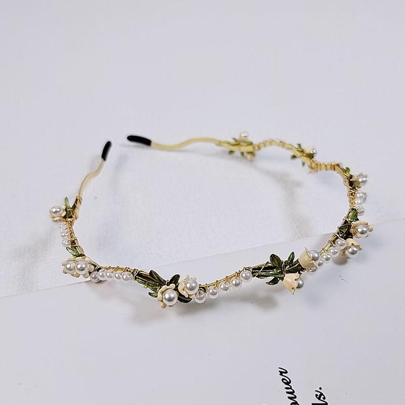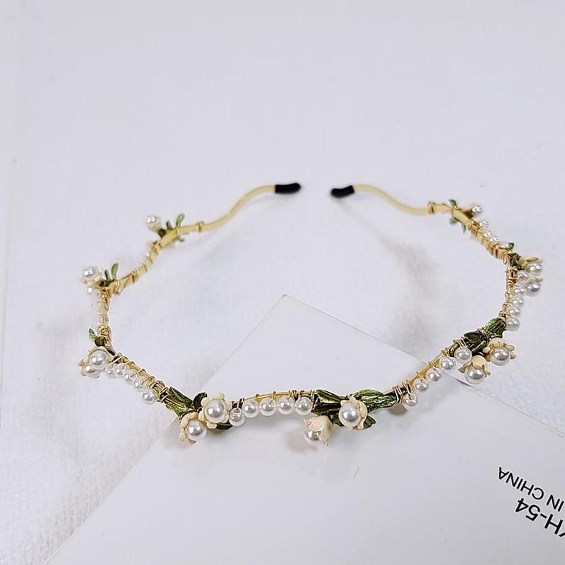 Diadema de flores de perlas para mujer hecha a mano nueva celebridad de internet combinable accesorios para el cabello de hada Mori diadema dulce
