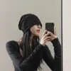Gorro balakra pequeño de estilo coreano para otoño e invierno, cálido, con aspecto de cara, de lana para mujer, tipo jersey, gorro de punto con protección para el cuello, gorro integrado