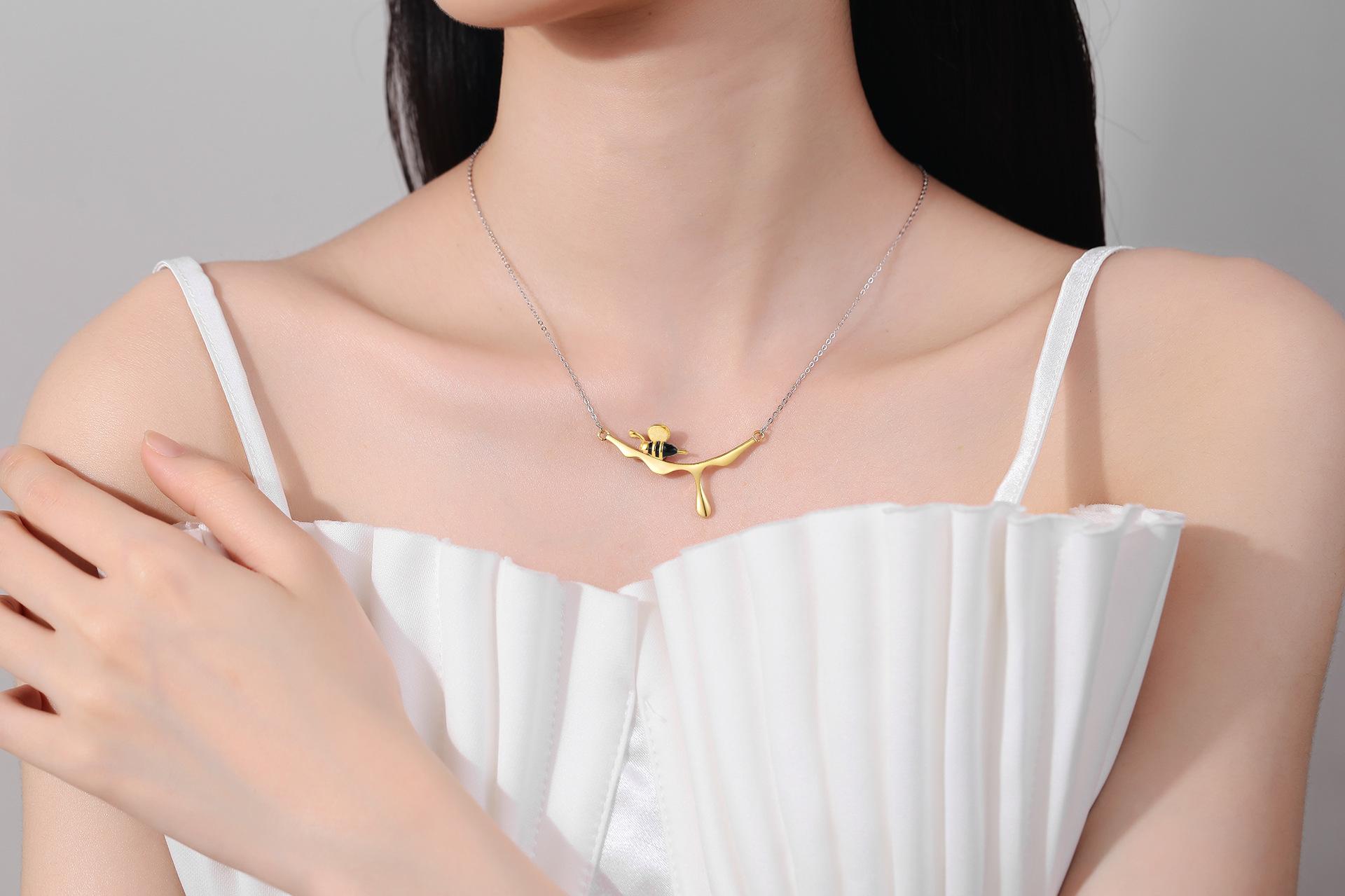 Anillo de abeja de moda transfronterizo europeo y americano para mujer, moderno conjunto de joyas con collar elegante, ligero y de lujo que combina con todo.