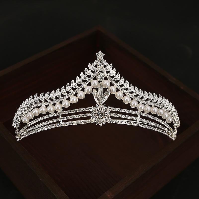 Tocado de corona de novia con incrustaciones de diamantes, estilo coreano, accesorios de boda de moda, accesorios de vestido de perlas de cumpleaños de princesa, joyería