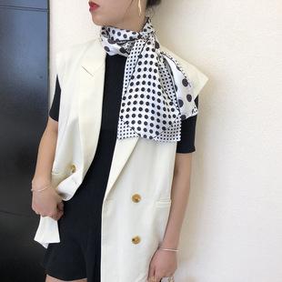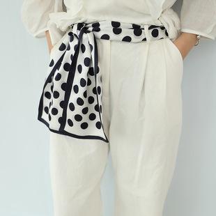 | |  | | Nuevo de verano y otoño Cinta mediana y larga de lunares blancos y negros franceses 100% seda de morera Bufanda de seda de doble cara Cinturón al por mayor | | | |