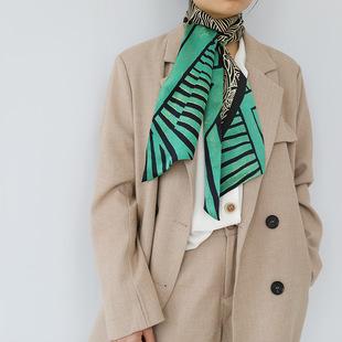 | |  | | Traje original de otoño e invierno con rayas de lunares franceses, pequeño pañuelo de seda largo, chal de seda, pañuelo de seda multifuncional. | | | |