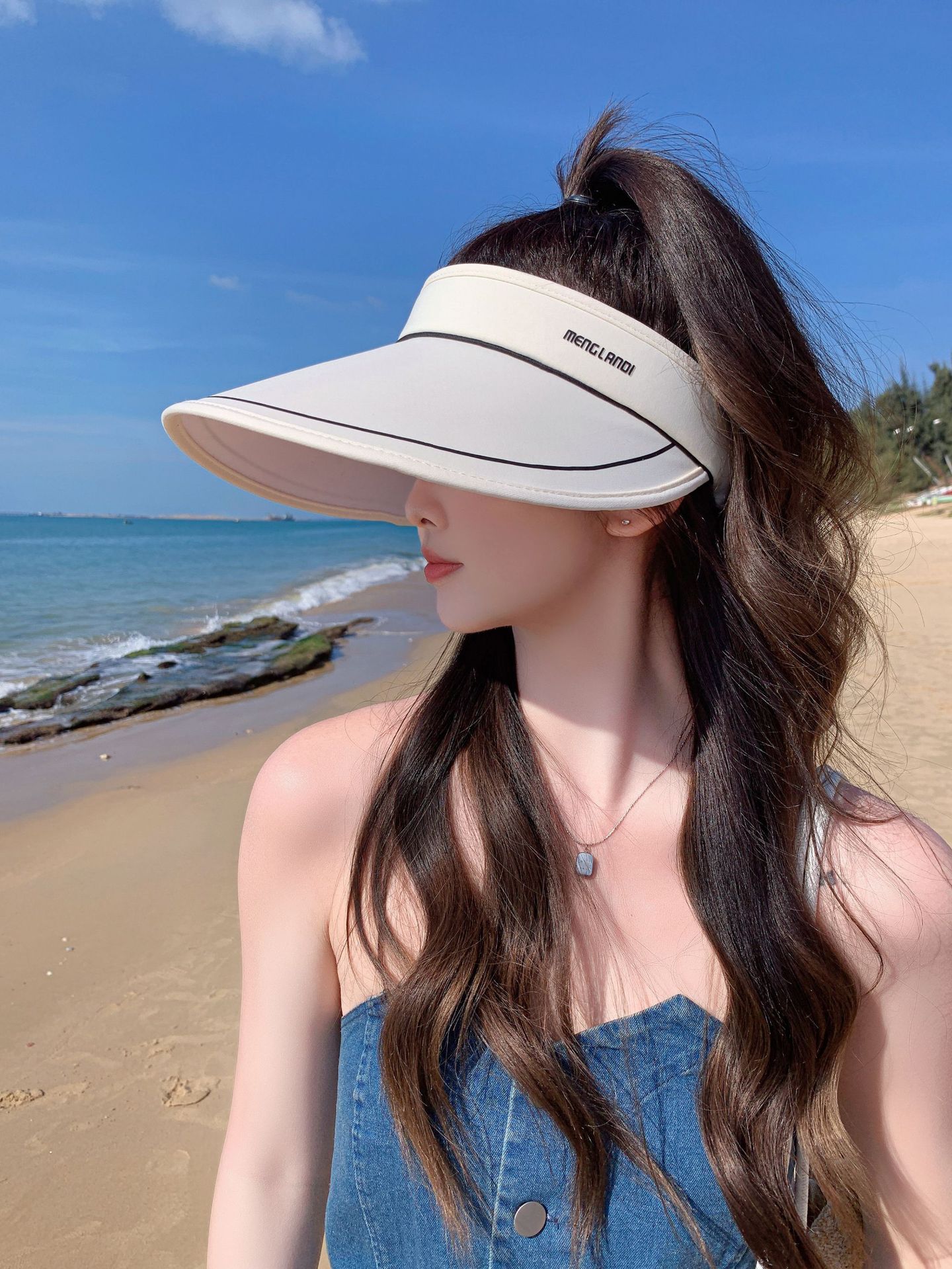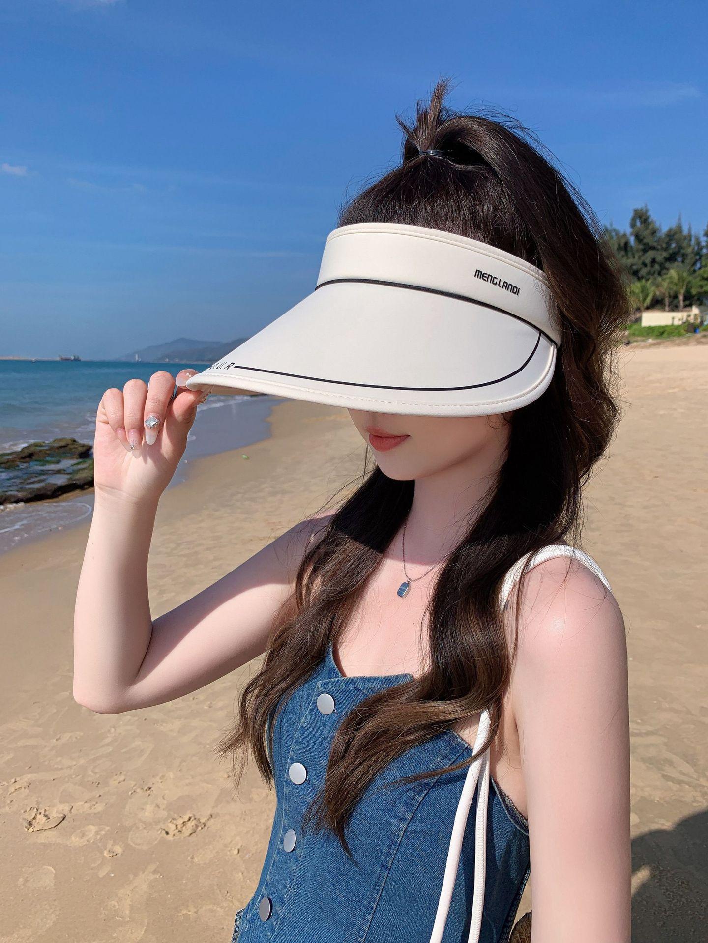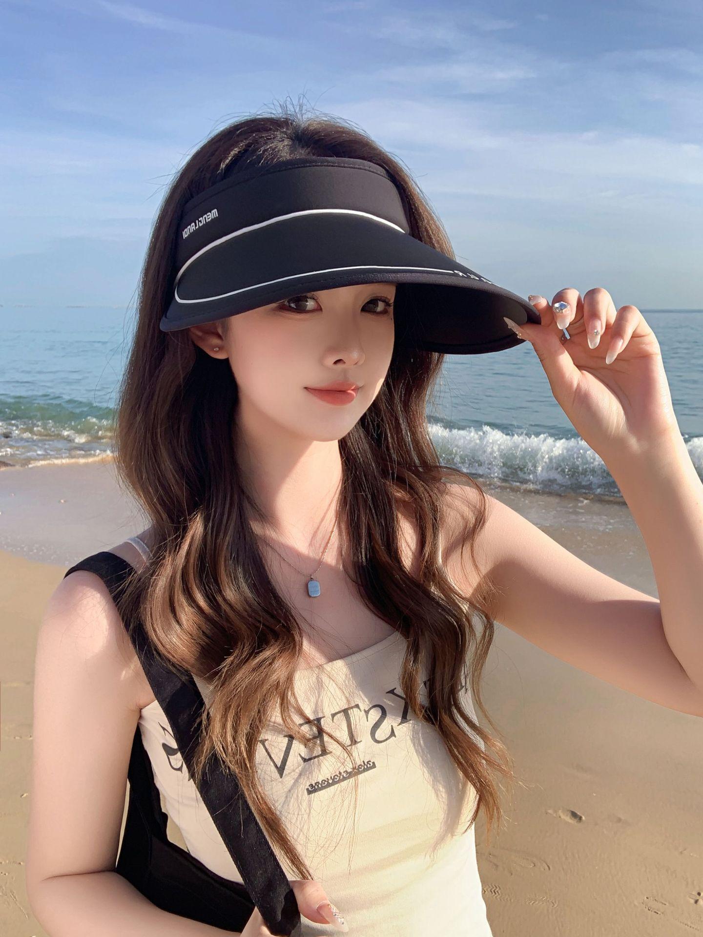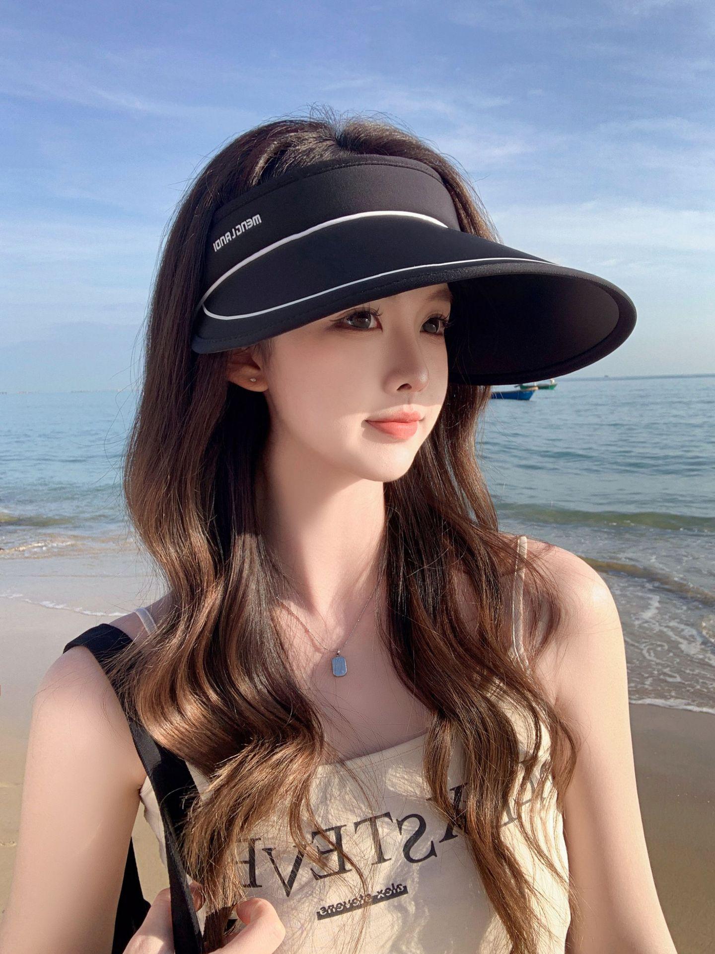 Nuevo sombrero para el sol para mujer, estilo coreano, ajustable, con parte superior vacía y ala grande, plegable para verano y exteriores.