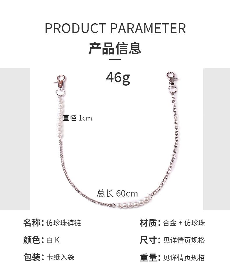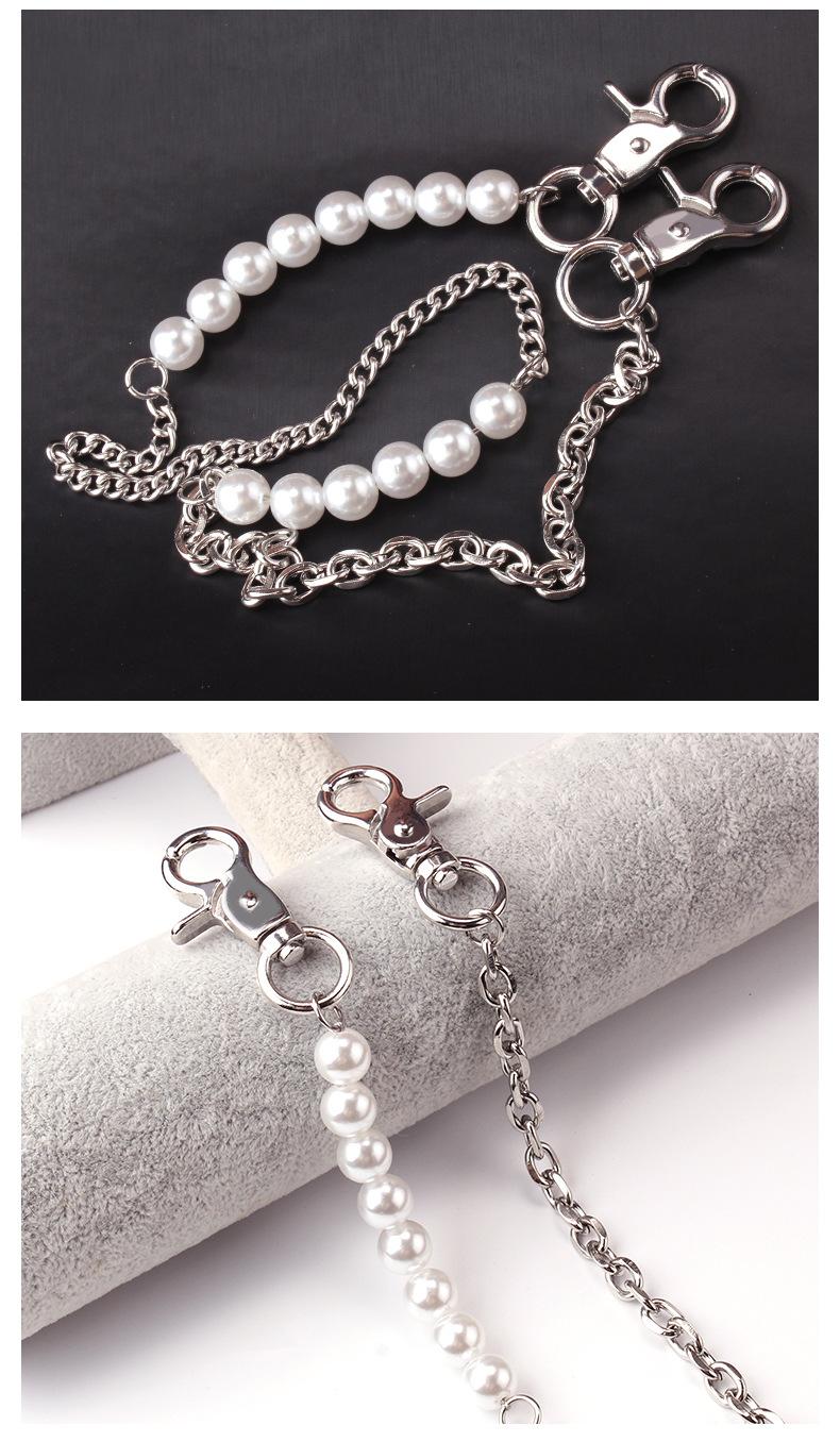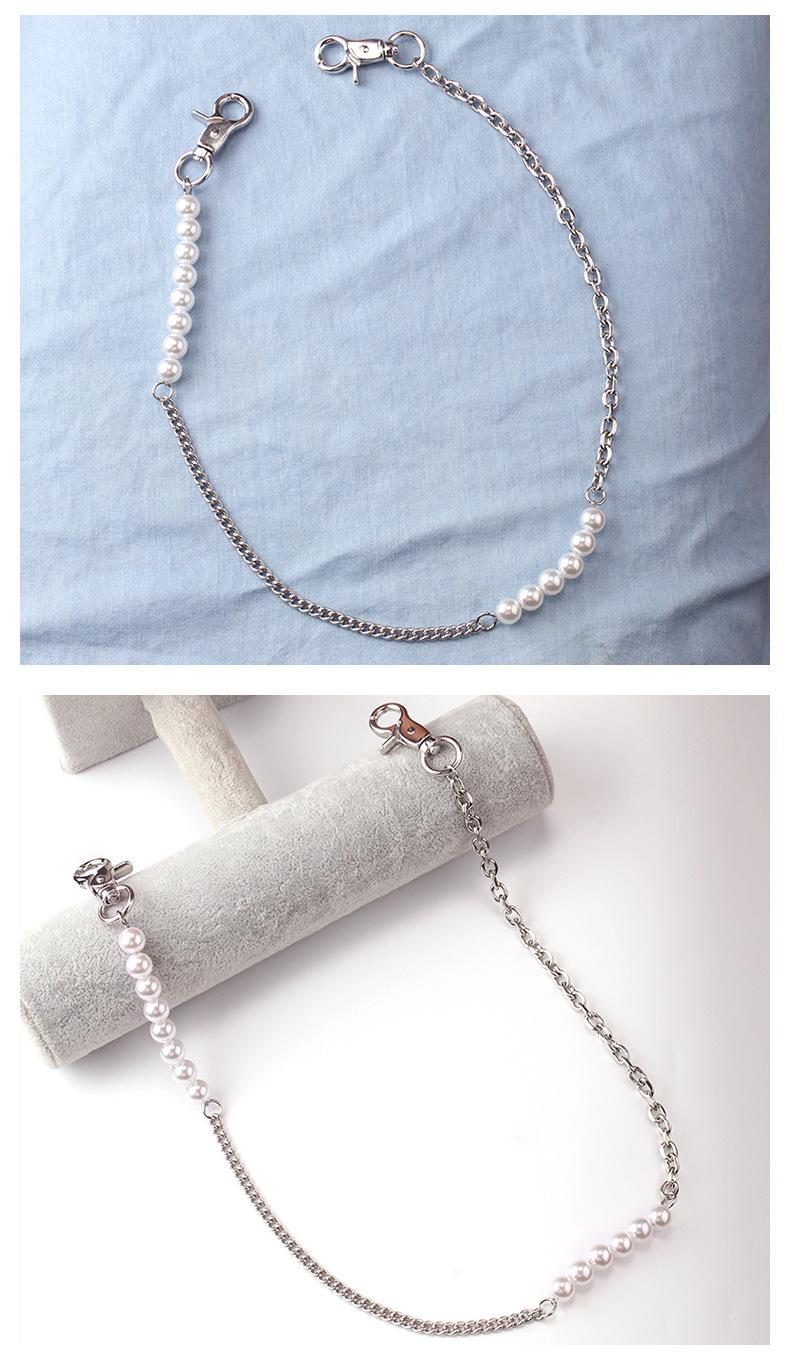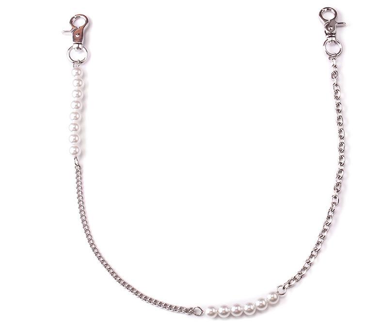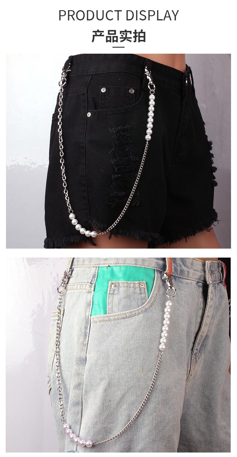 Cadena para pantalones con diseño de perla de imitación, estilo retro, estilo europeo y americano, con diseño de U, de una sola capa, sexy y personalizada.