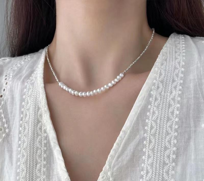 Collar de Perlas Plateadas 2023 nuevo popular nicho lujo ligero de alta gama cadena clavicular