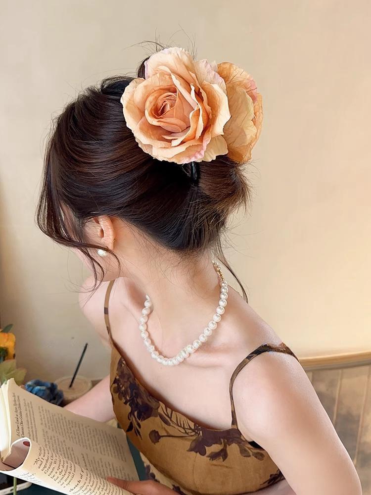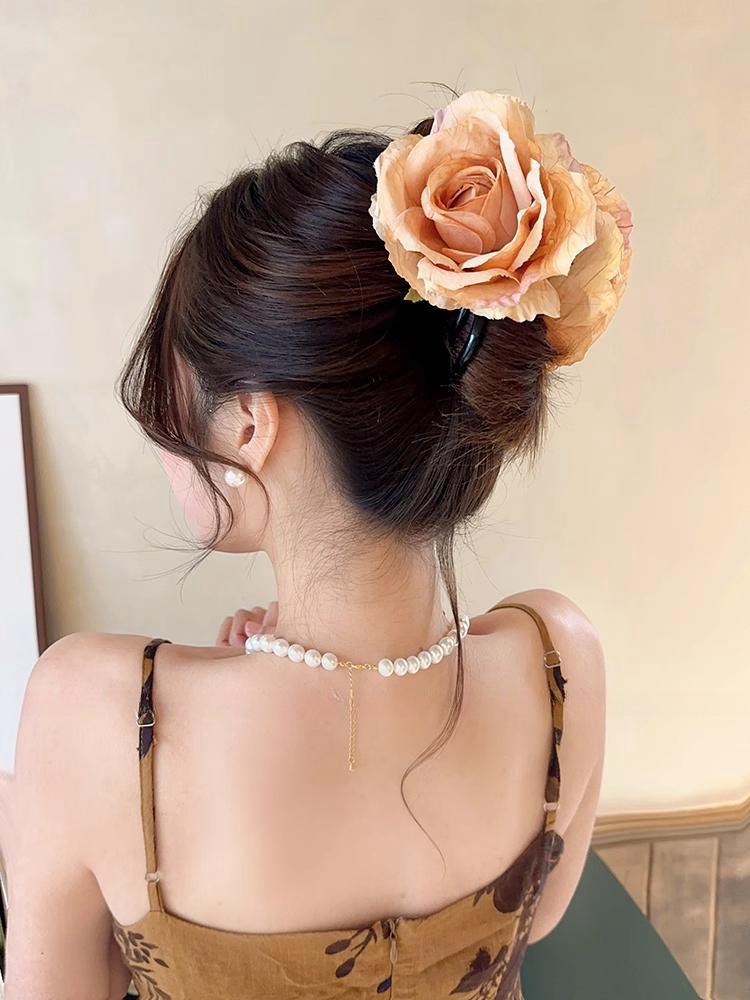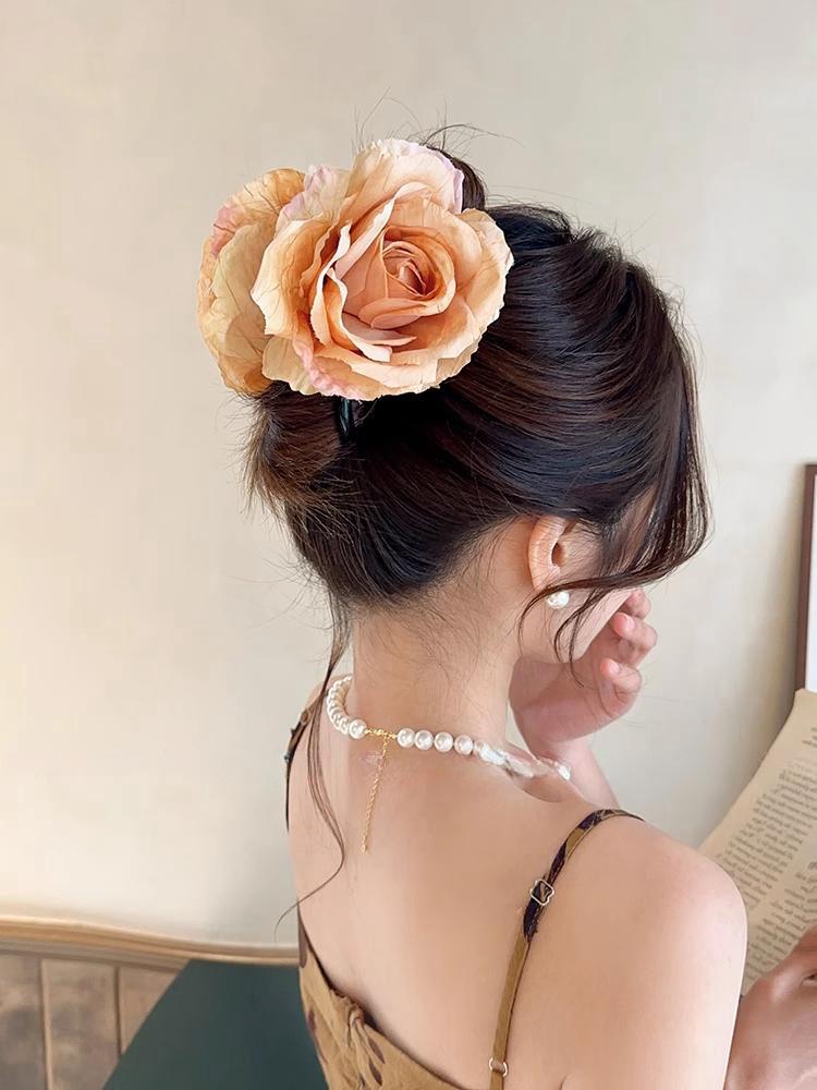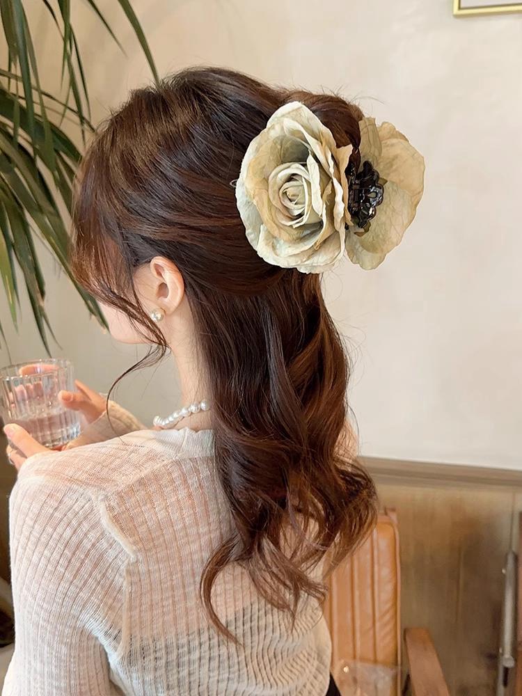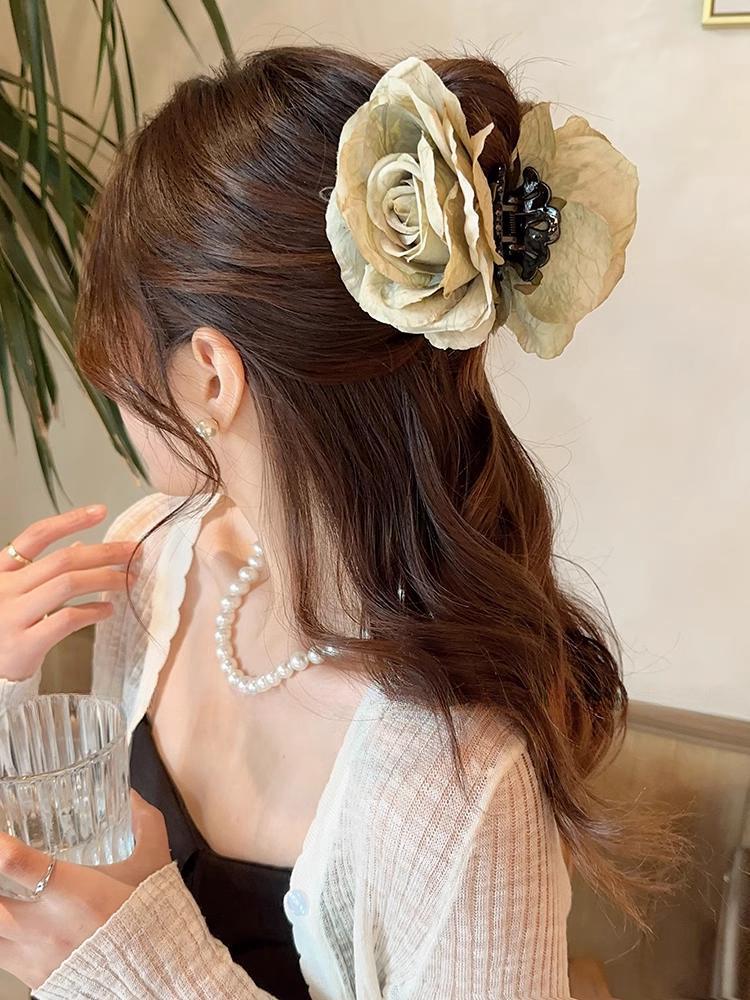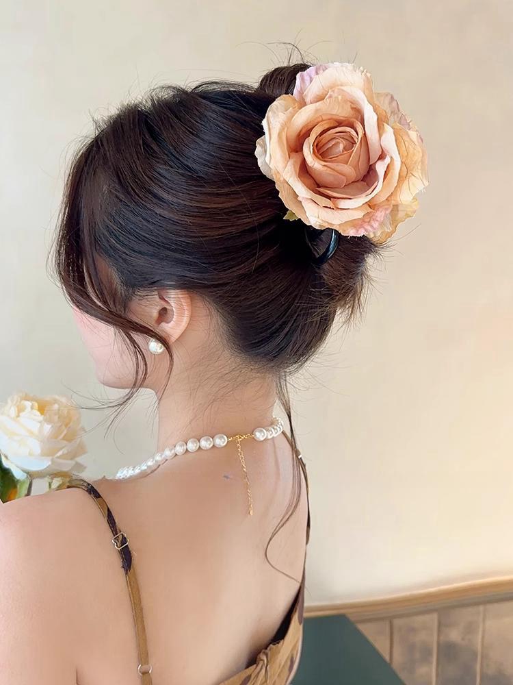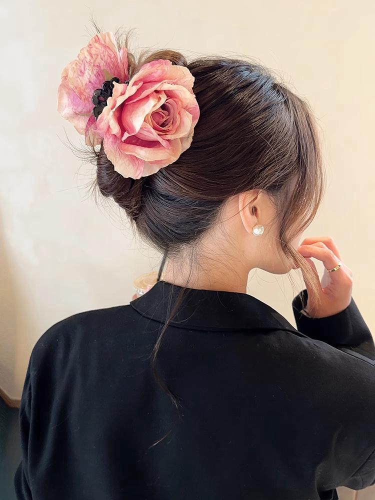 Pinza para el cabello de rosa seca tamaño grande volumen de cabello multi-recogido parte trasera de la cabeza pinza de tiburón 2024 Nuevo tocado tocado de flores accesorios para el cabello