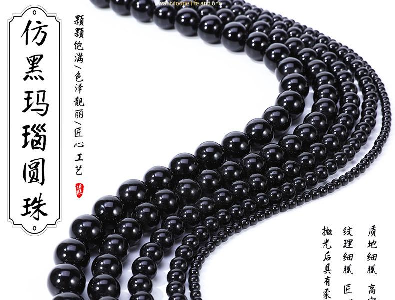 Cuentas redondas de vidrio de ágata negra de imitación, hechas a mano, para pulseras y collares, cuentas redondas sueltas, accesorios para cuentas.