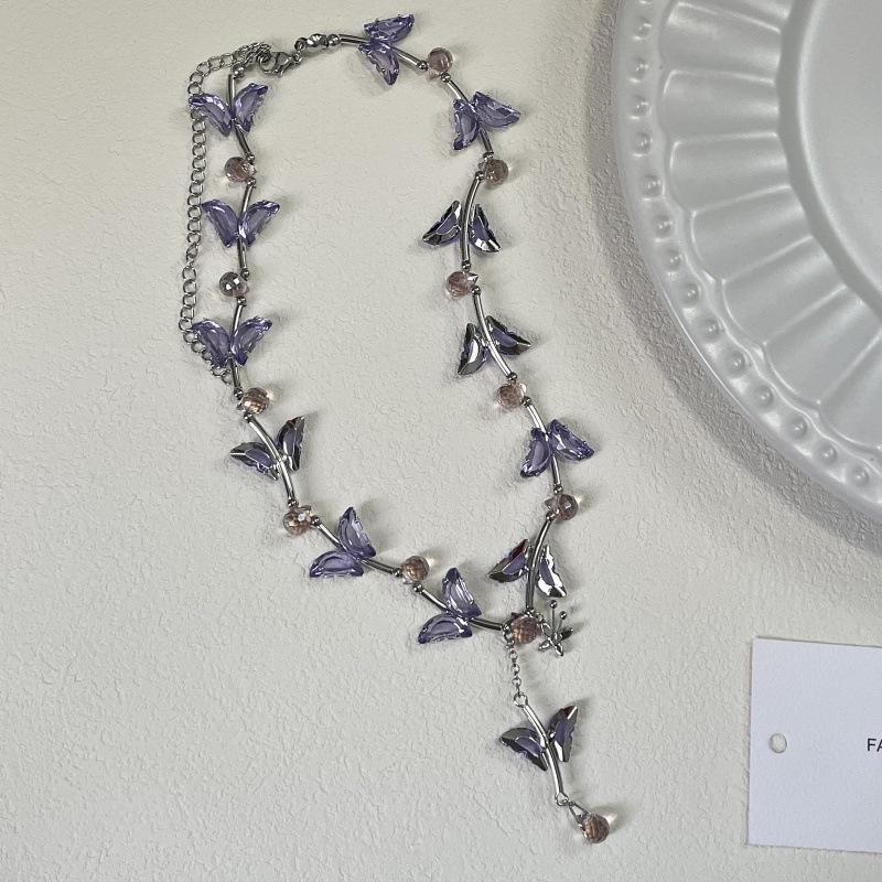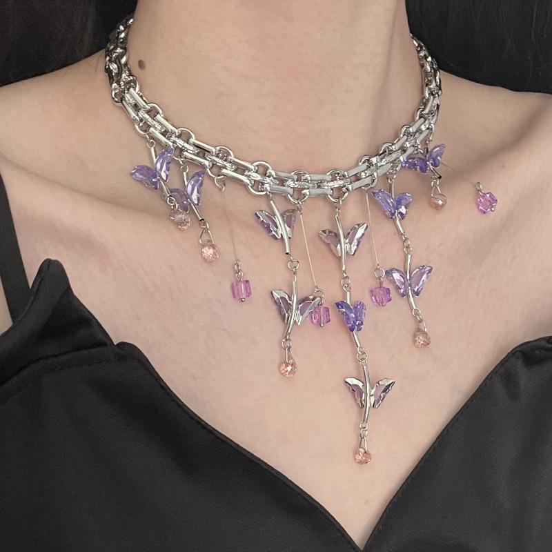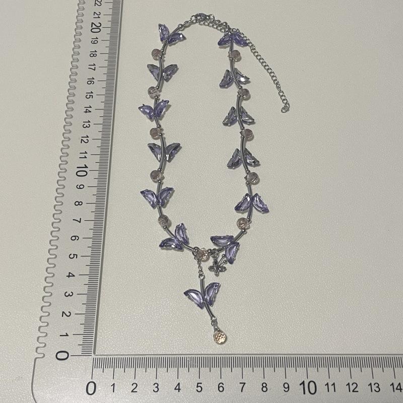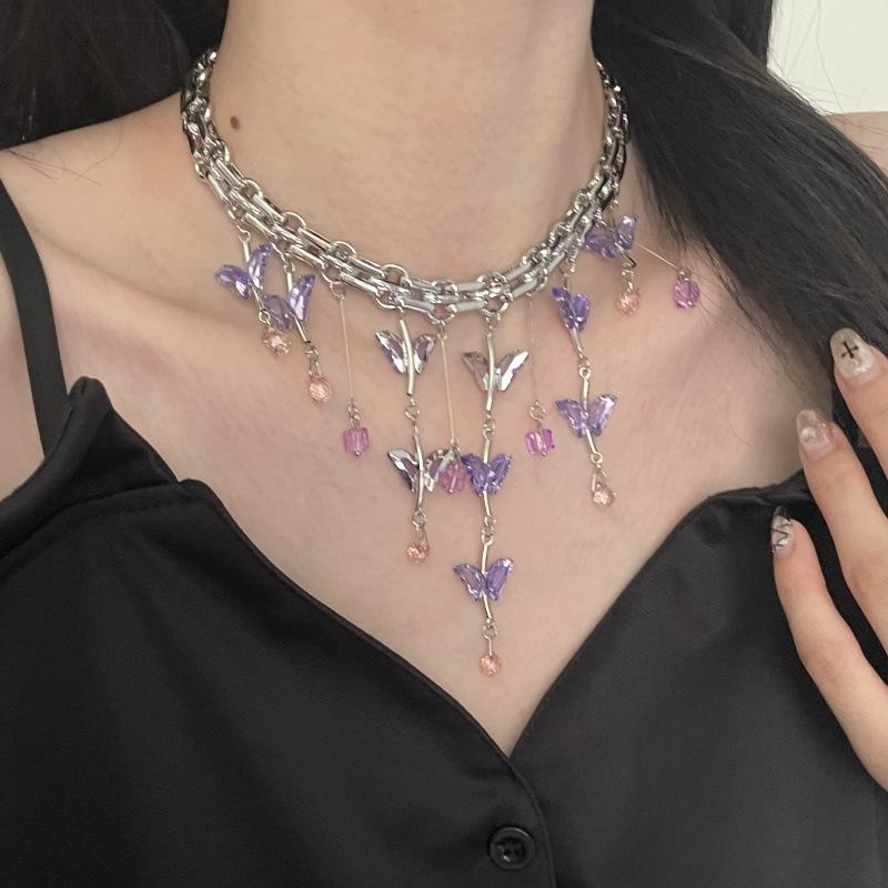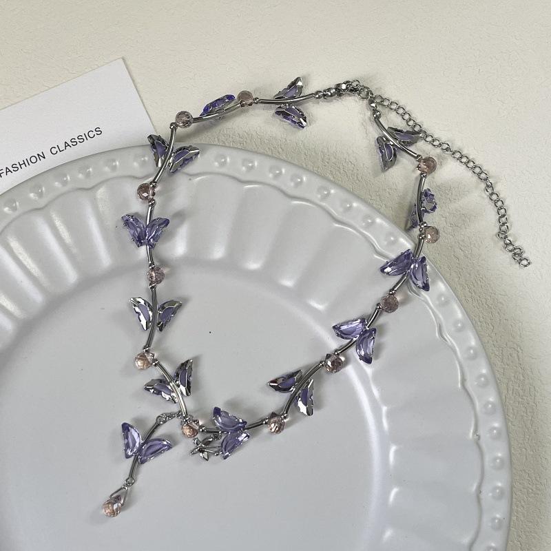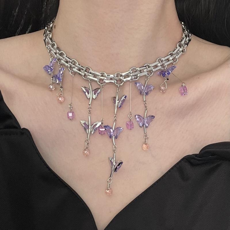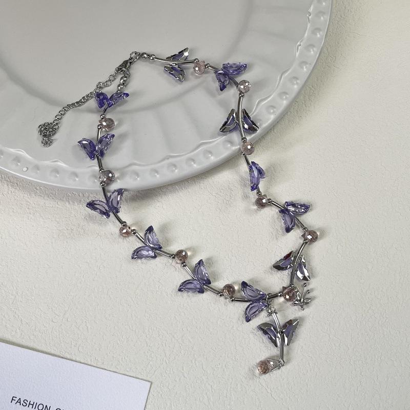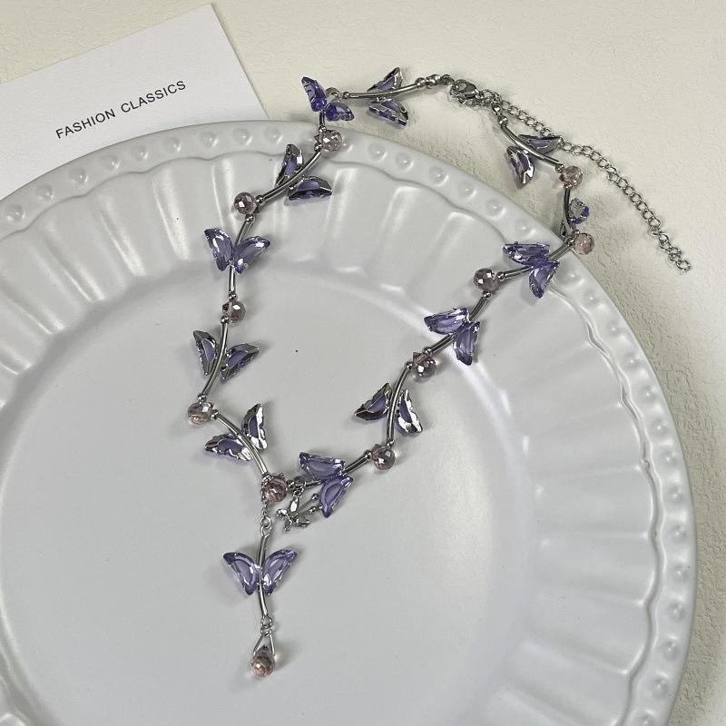 Collar con borlas de mariposa morada, elegante y a la moda, con diseño de nicho, cadena para el cuello, exquisita cadena para clavícula.