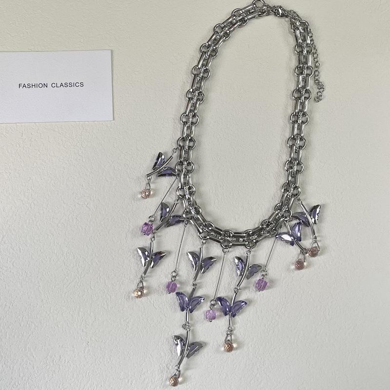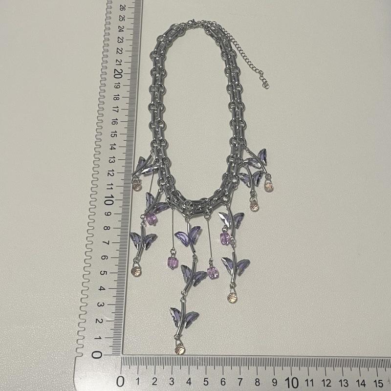 Single-layer purple butterfly necklace, Multi-layer purple butterfly tassel necklace
