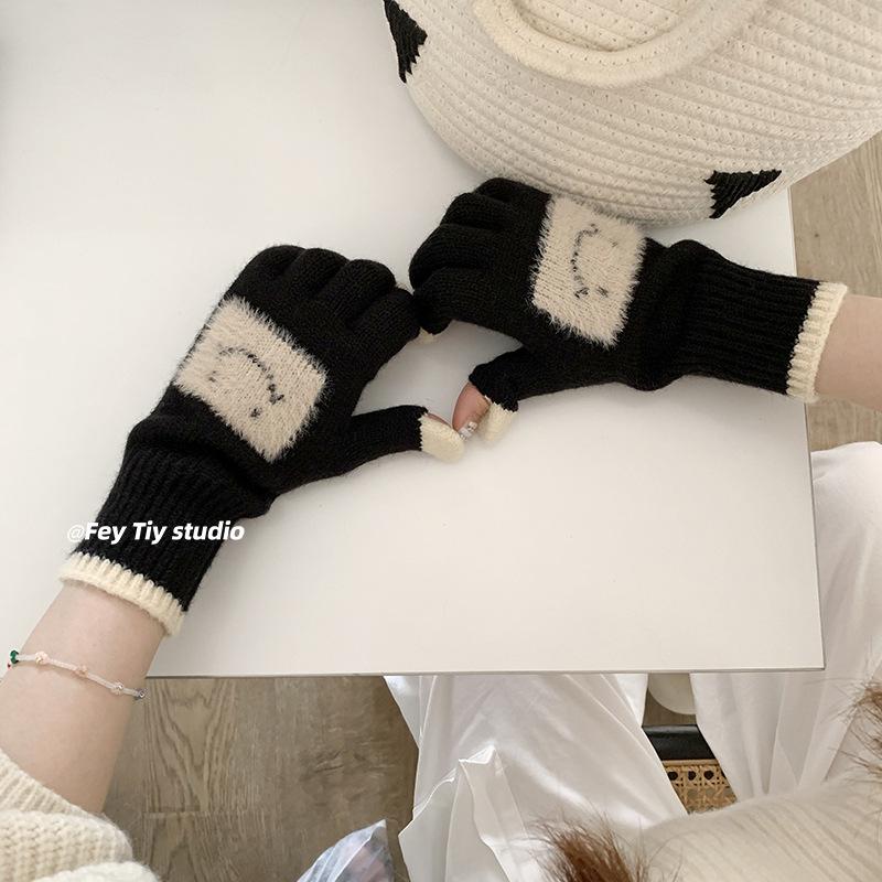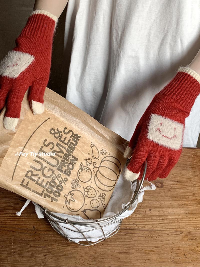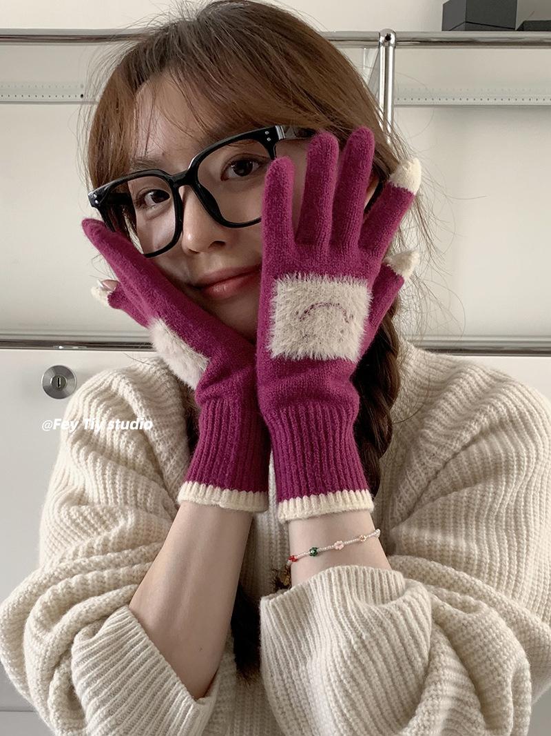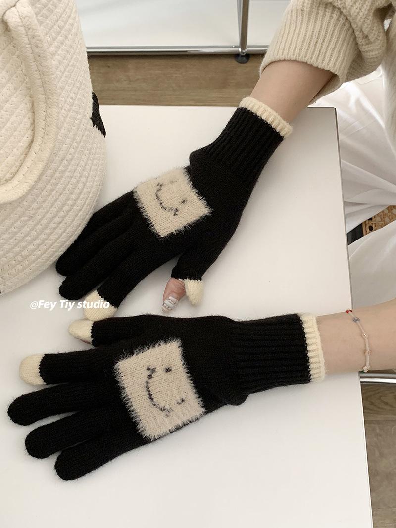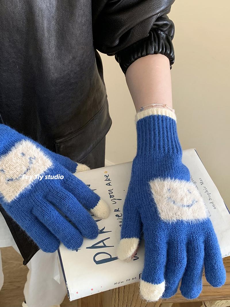 Otoño e Invierno Corea del Sur ins nuevos guantes de punto smiley para mujer de cinco dedos color sólido pantalla táctil cálidos lindos moda
