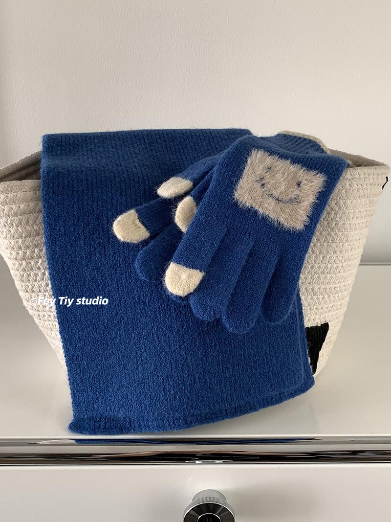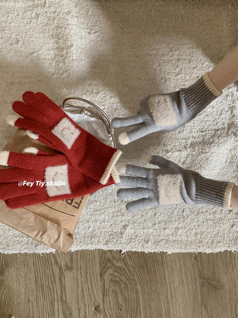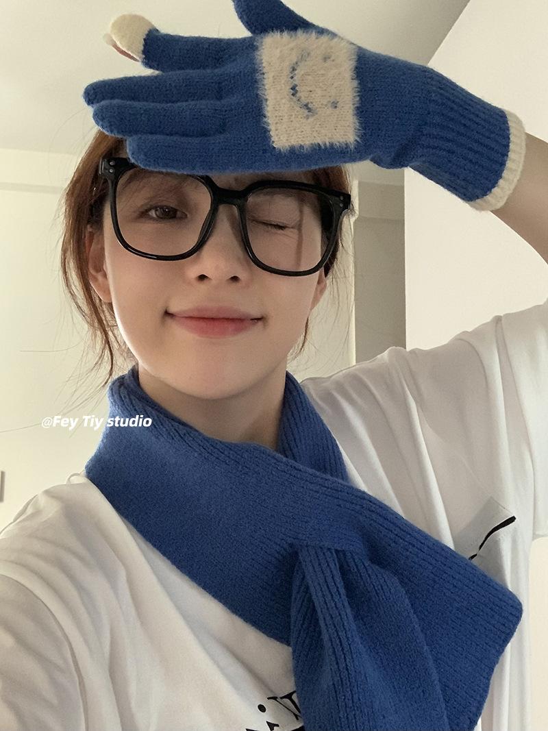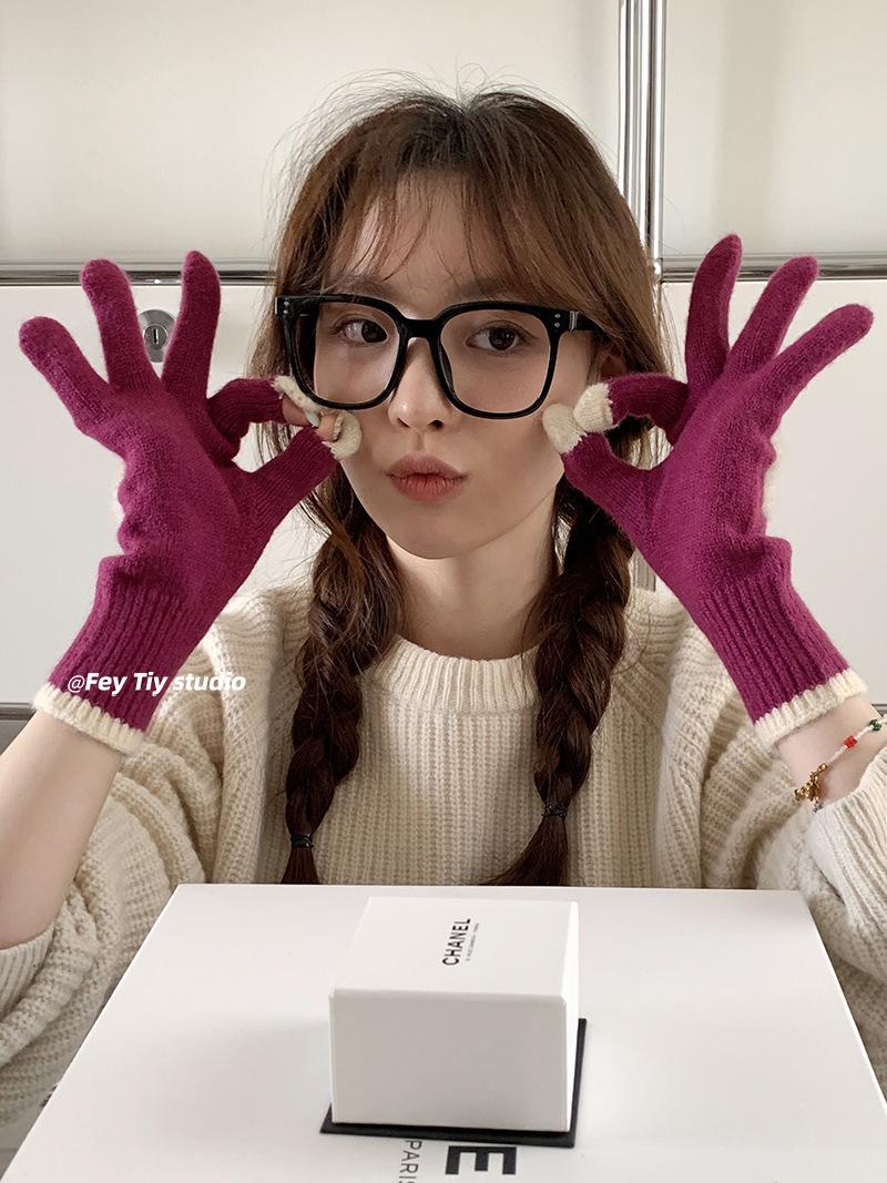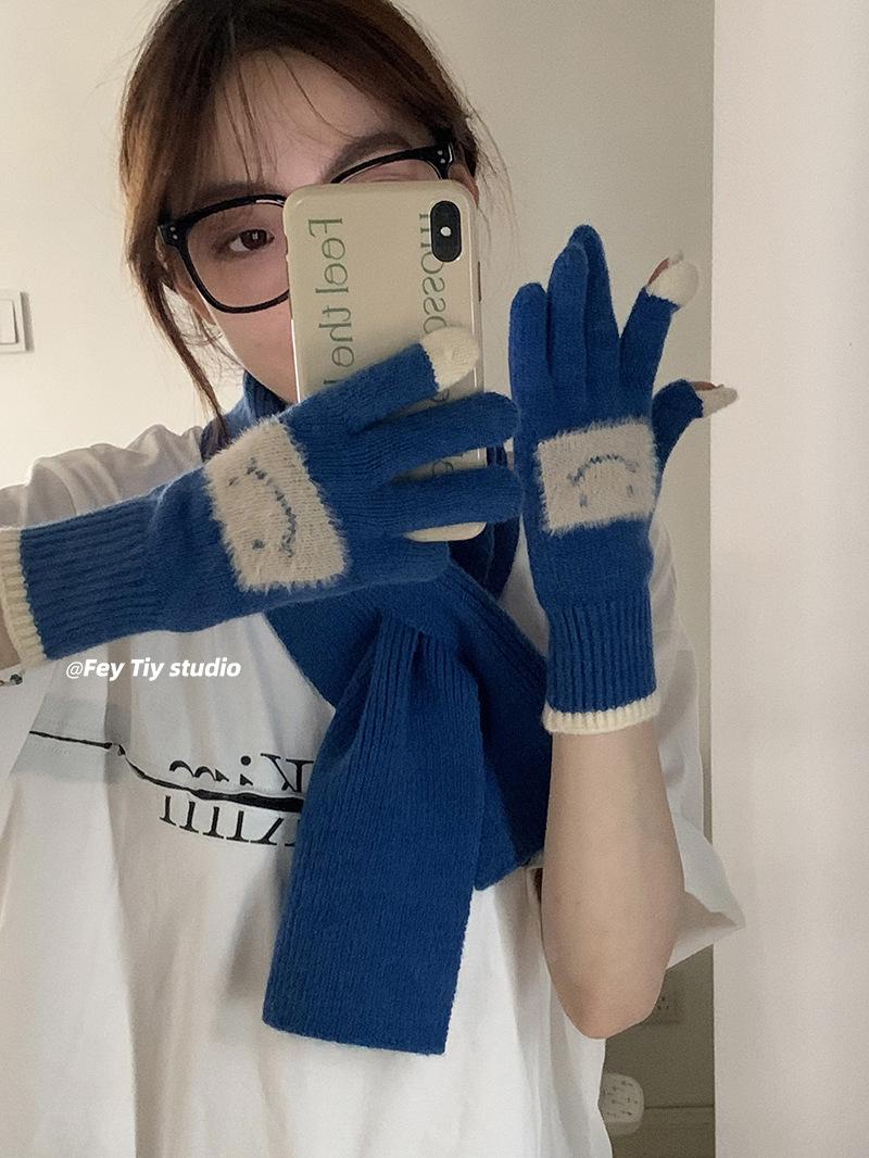 Otoño e Invierno Corea del Sur ins nuevos guantes de punto smiley para mujer de cinco dedos color sólido pantalla táctil cálidos lindos moda