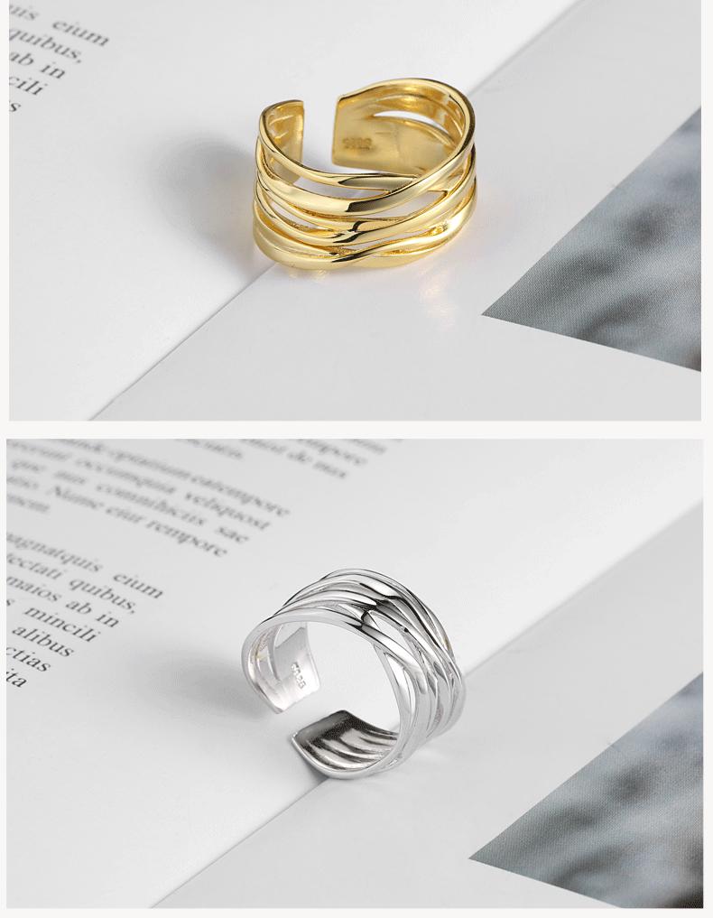 Anillo de moda multicapa con línea sinuosa para mujer, anillo abierto simple, joyería de moda personalizada, anillo ajustable