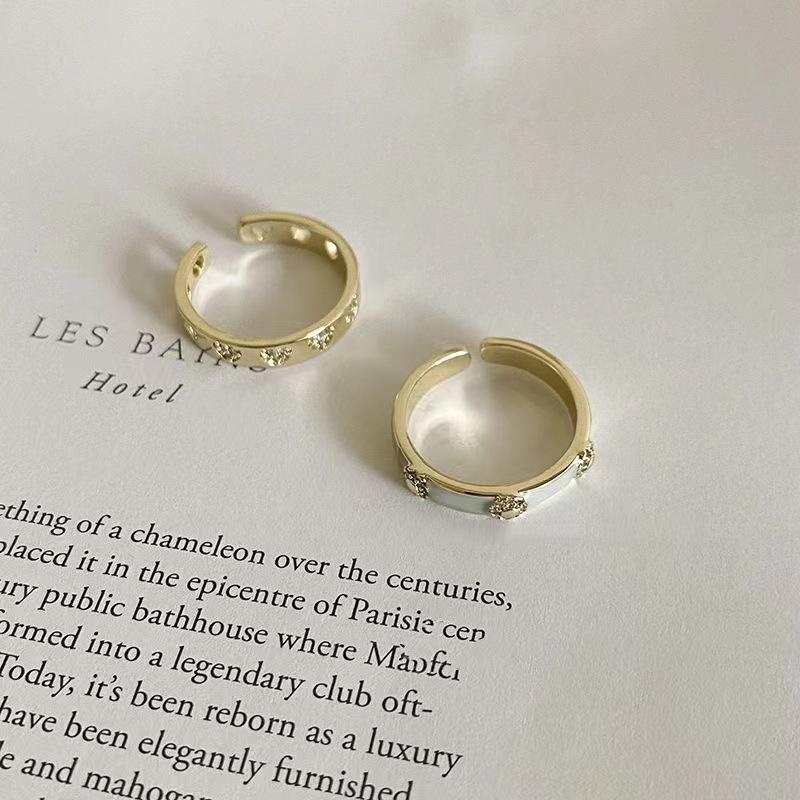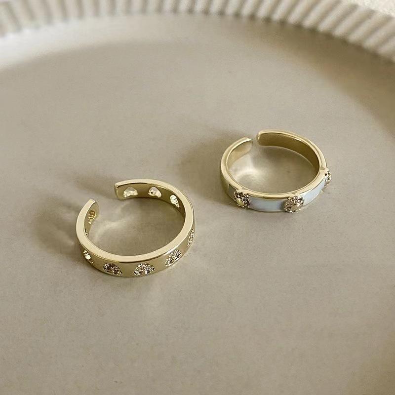 Diseño Nicho Anillo de Circonita con Esmalte Goteado Azul Gris para Mujer ins Sentido de Alta Gama Delicado Anillo de Dedo Abierto Anillo de Novia