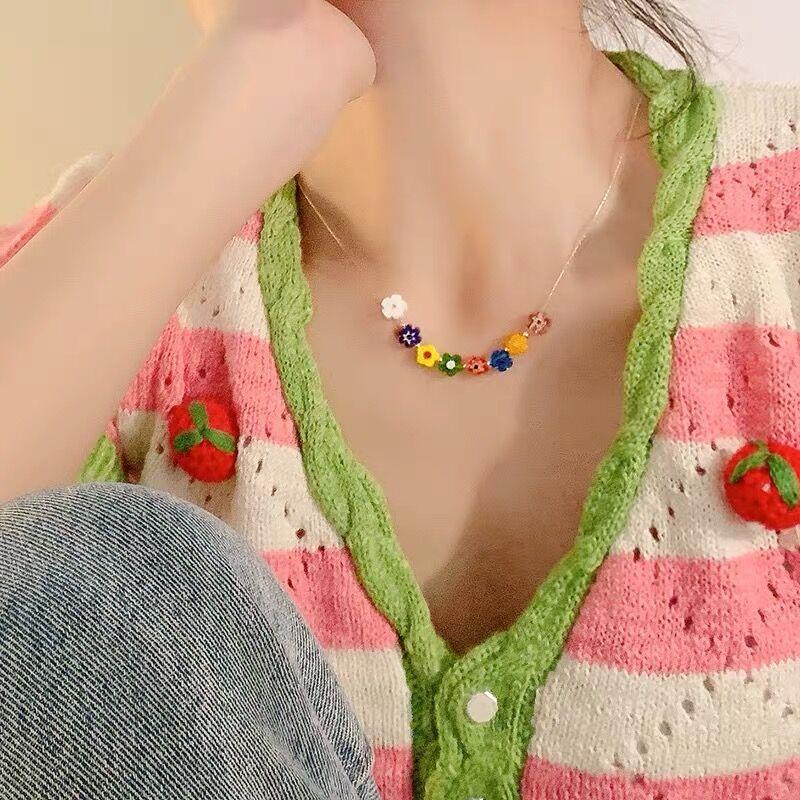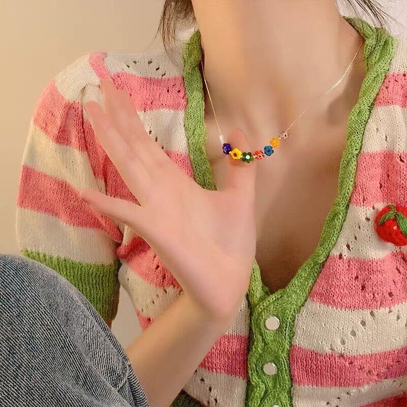 Collar de cuentas de flores esmaltadas de colores para mujer, cadena de clavícula dulce de verano, diseño de nicho de lujo ligero y moderno, estilo dulce y fresco.