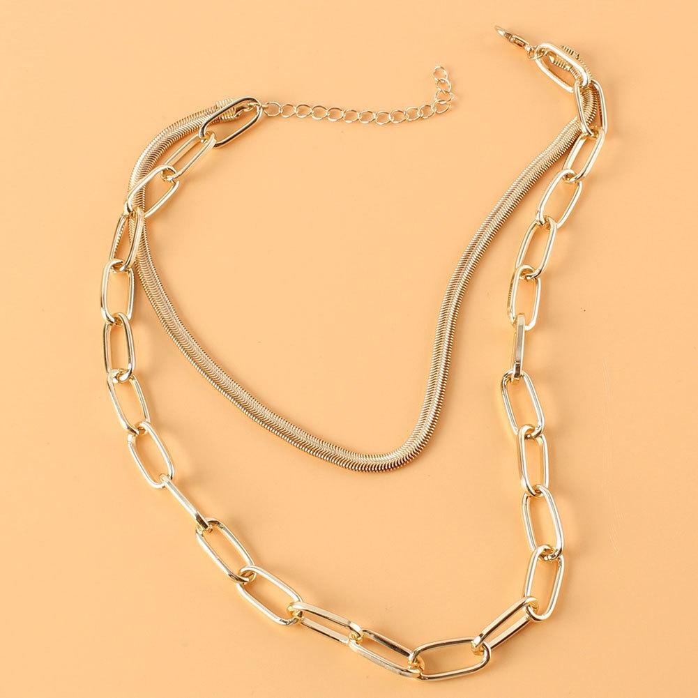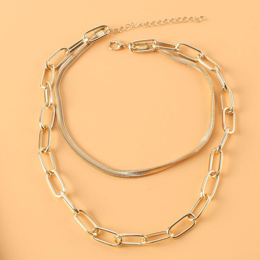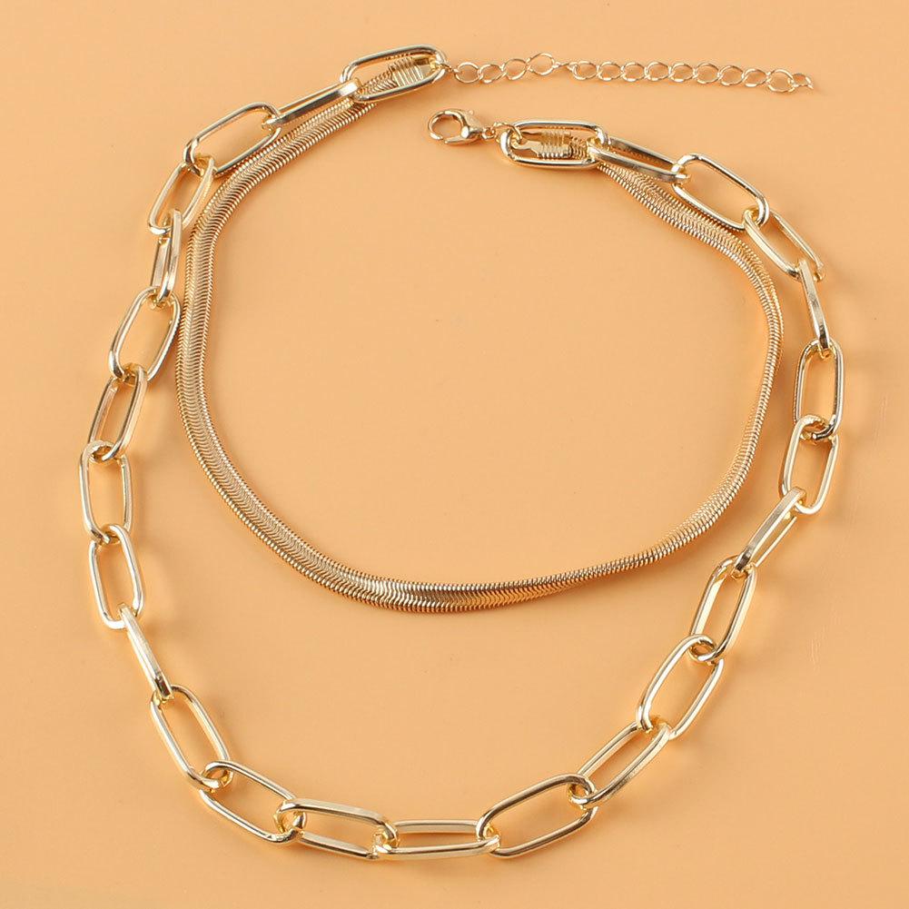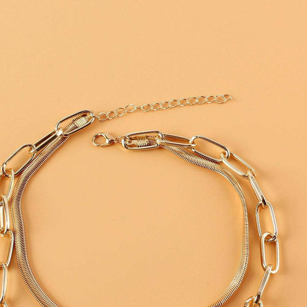 Joyería de Moda Transfronteriza Europea y Americana Aleación Geométrica Doble Capa Cadena de Hueso de Serpiente Punk Hip-hop Collar Collar 17740