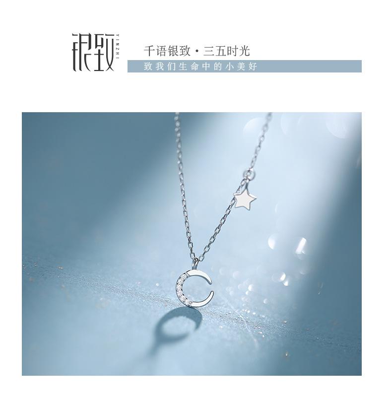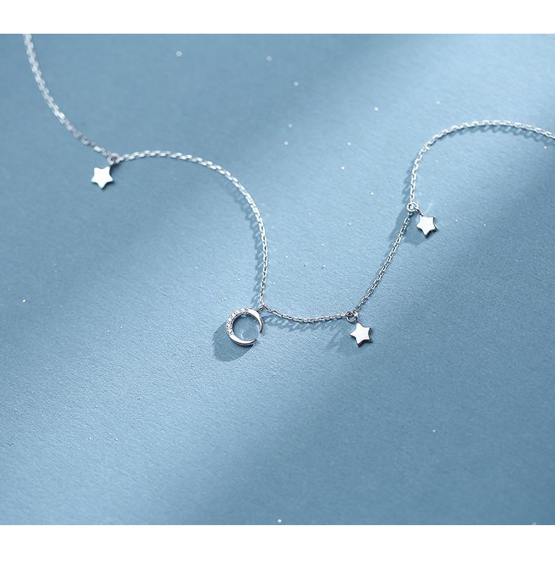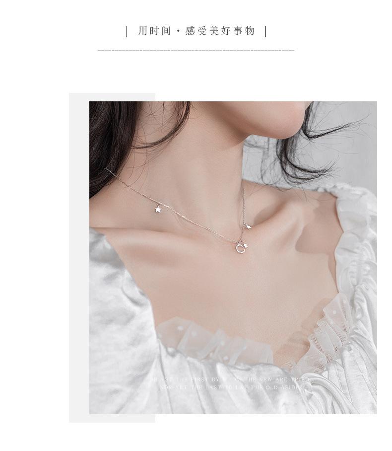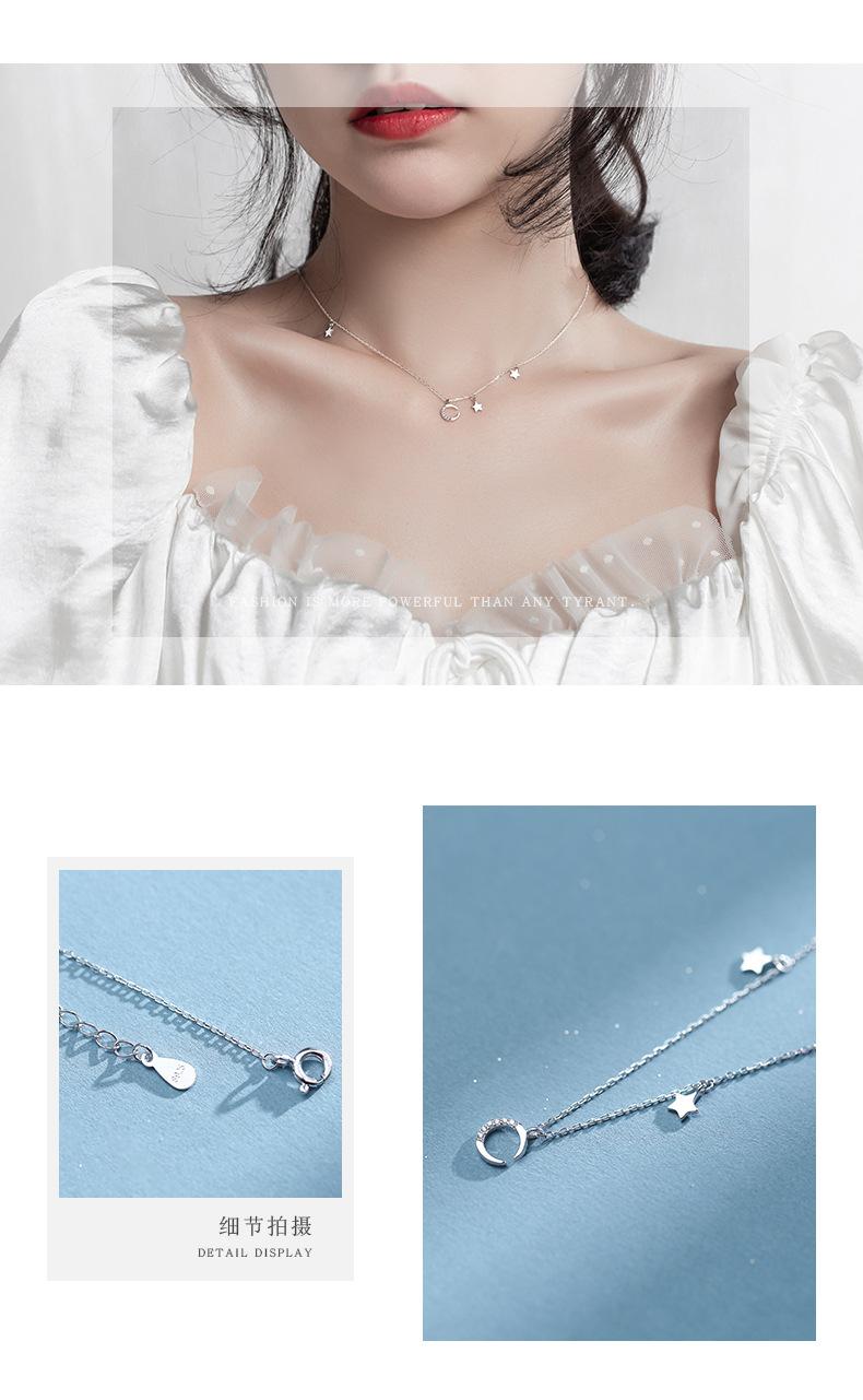 Collar de plata S925 con forma de estrella y luna para mujer, cadena corta para clavícula, elegante, estilo coreano, sencillo y distintivo, joyería corta.