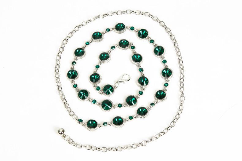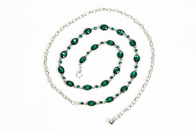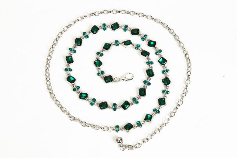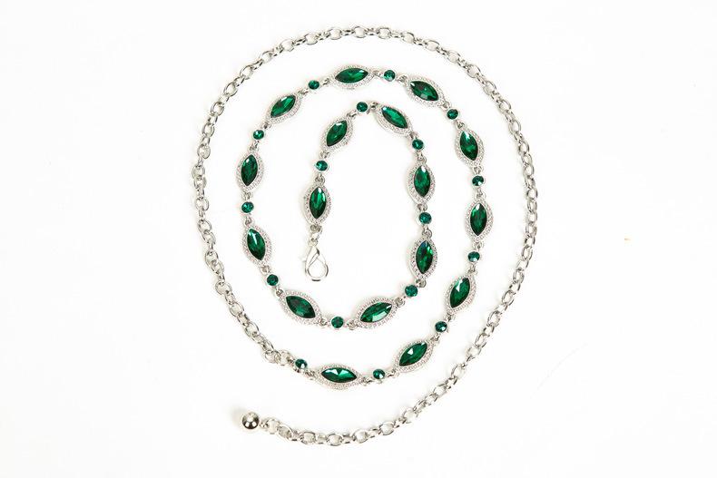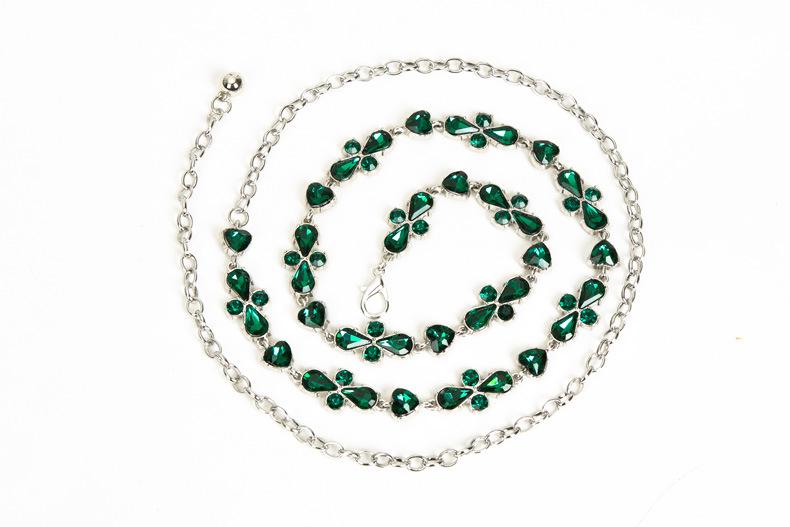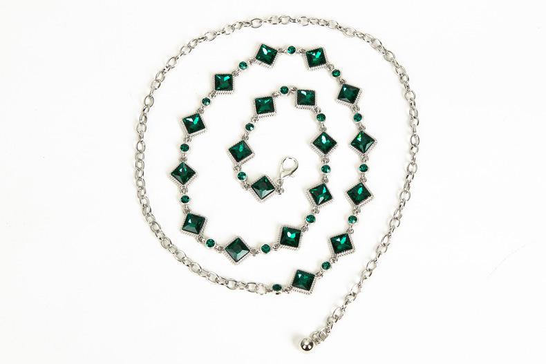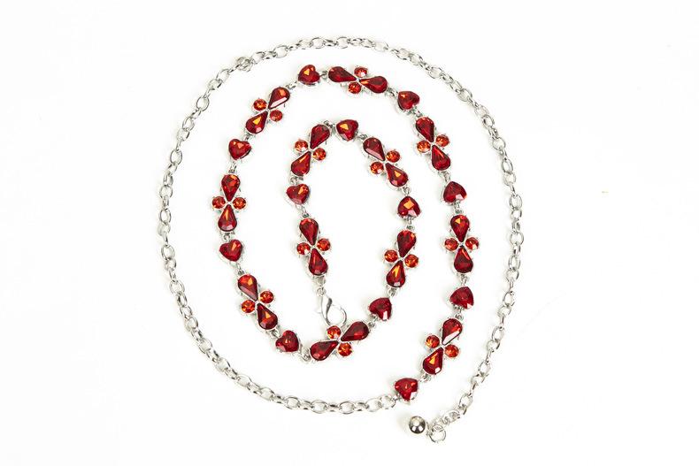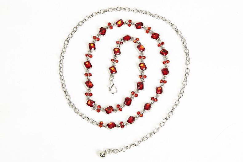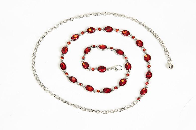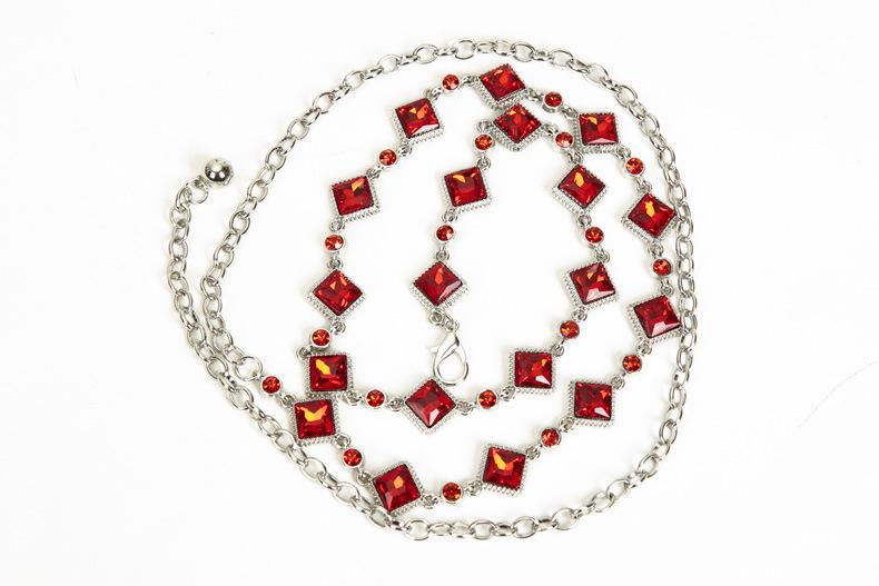 Cinturón rojo de red para mujer, cadena de cintura de alta calidad de verano, accesorios para falda con diamantes de imitación rojos y verdes, nueva cadena plateada con diamantes de imitación de metal.