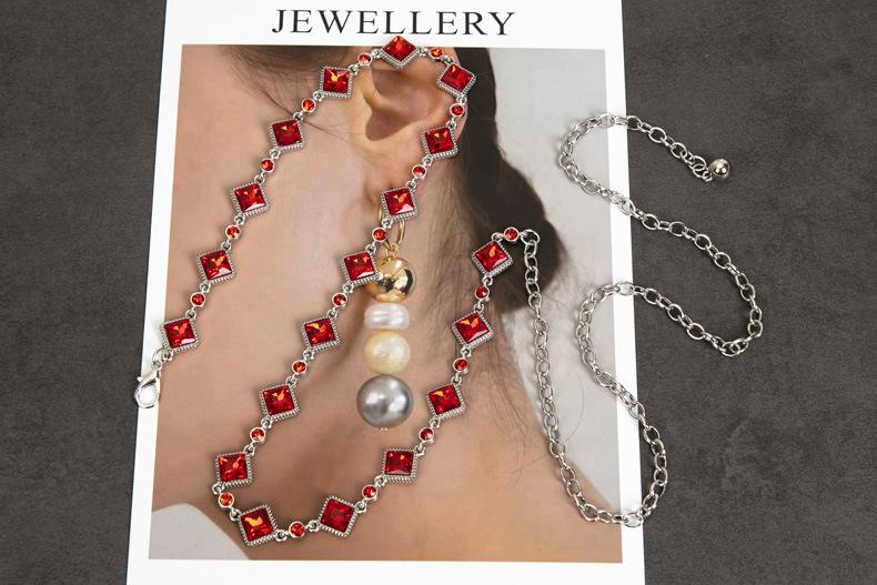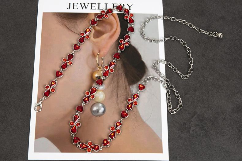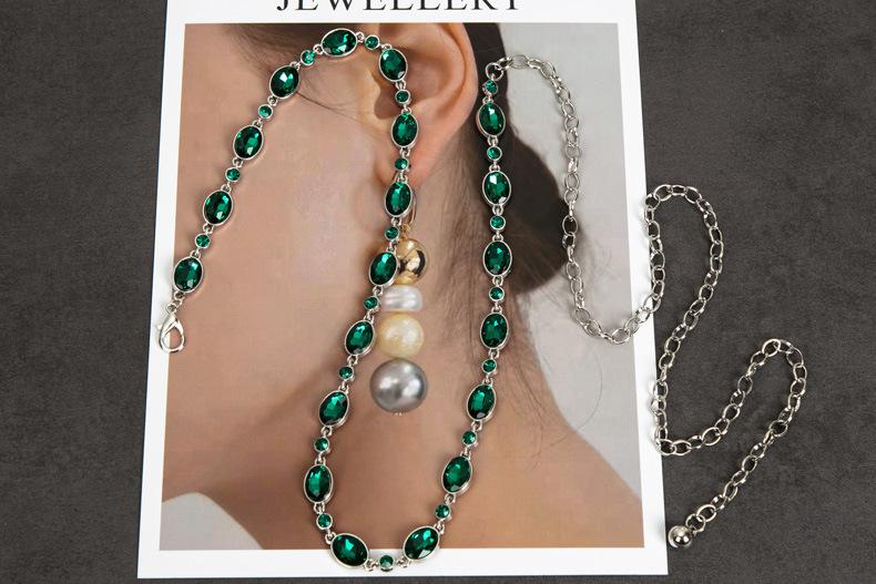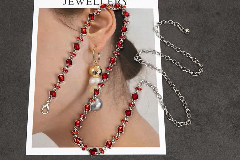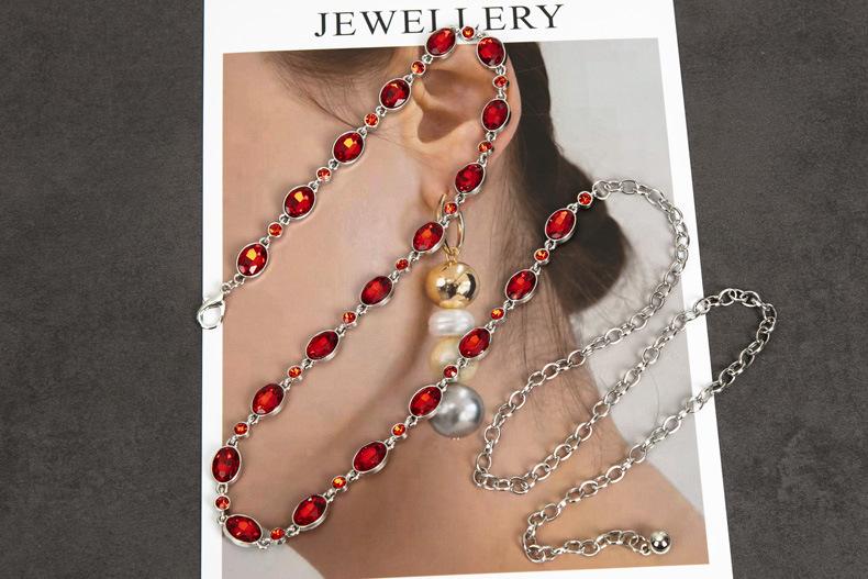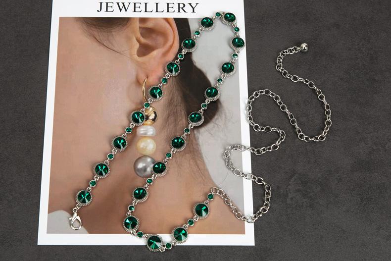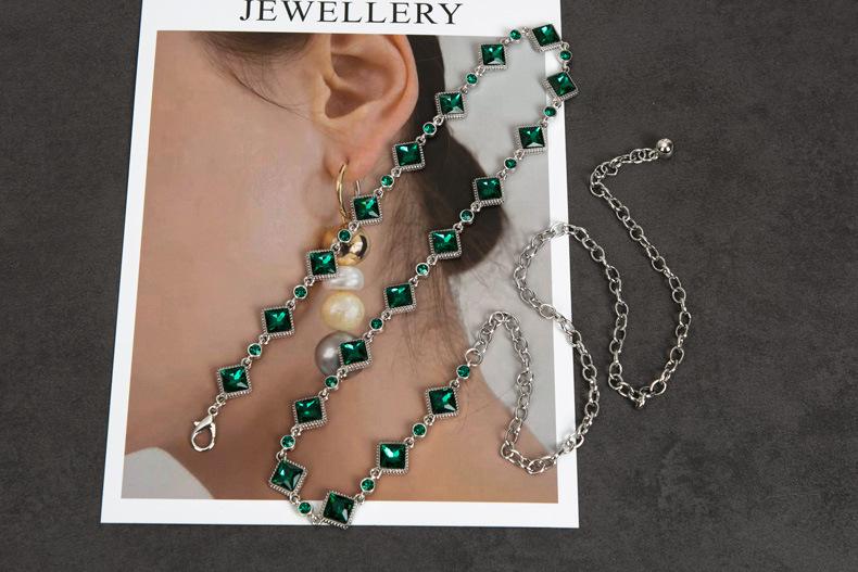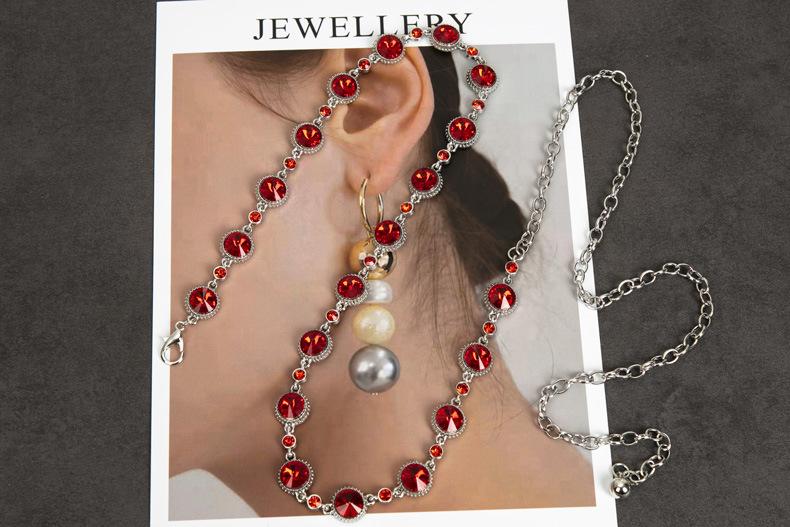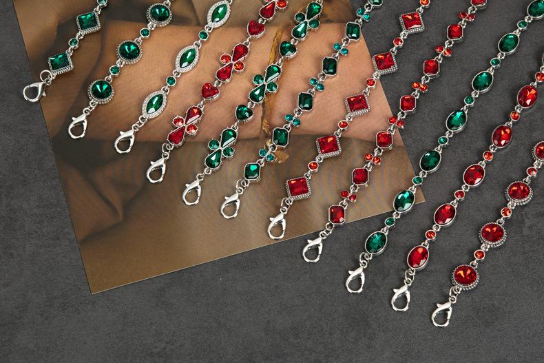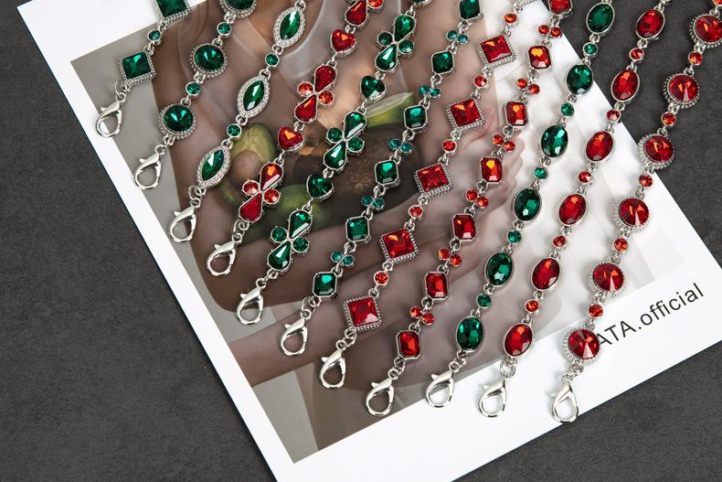 Cinturón rojo de red para mujer, cadena de cintura de alta calidad de verano, accesorios para falda con diamantes de imitación rojos y verdes, nueva cadena plateada con diamantes de imitación de metal.