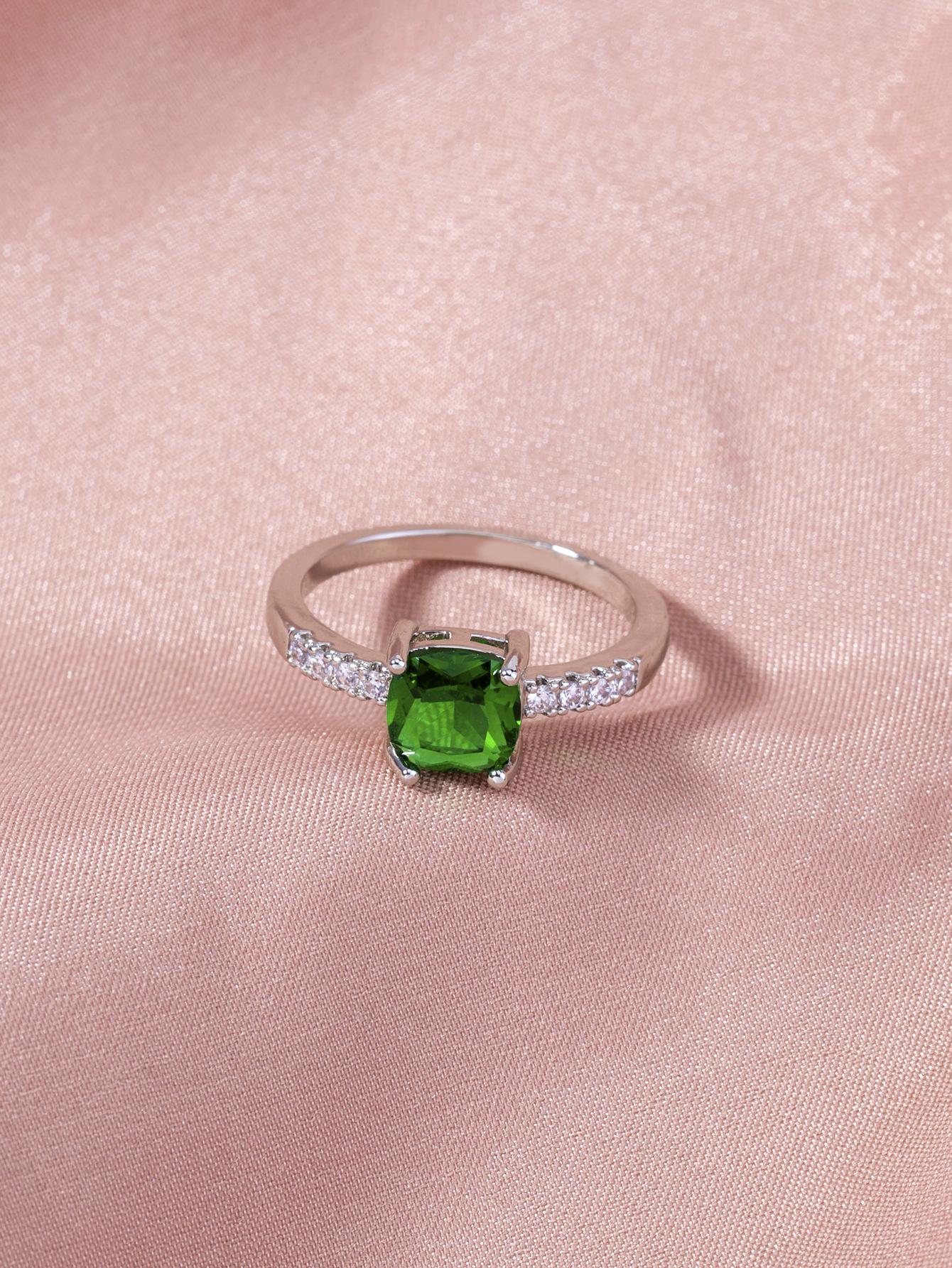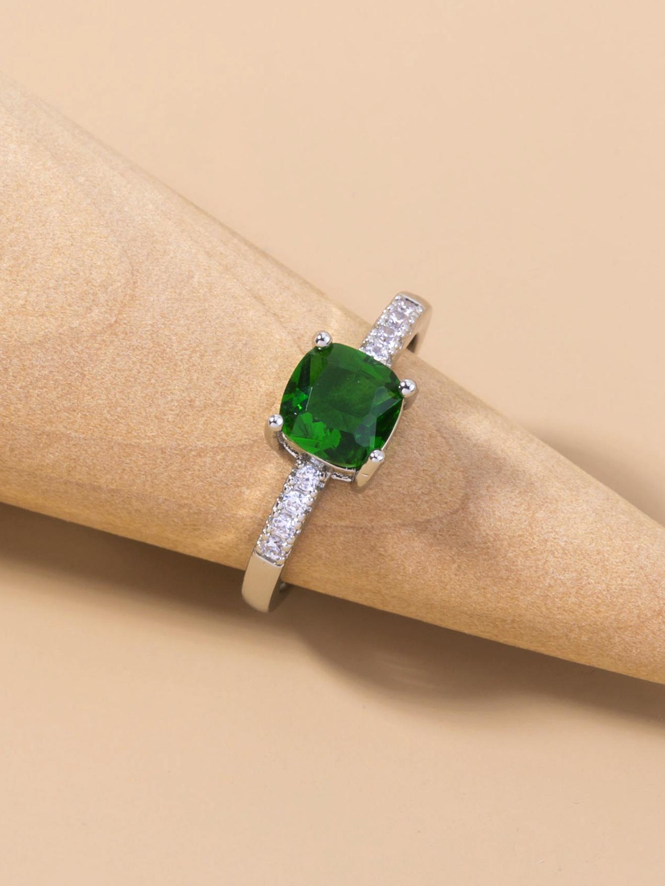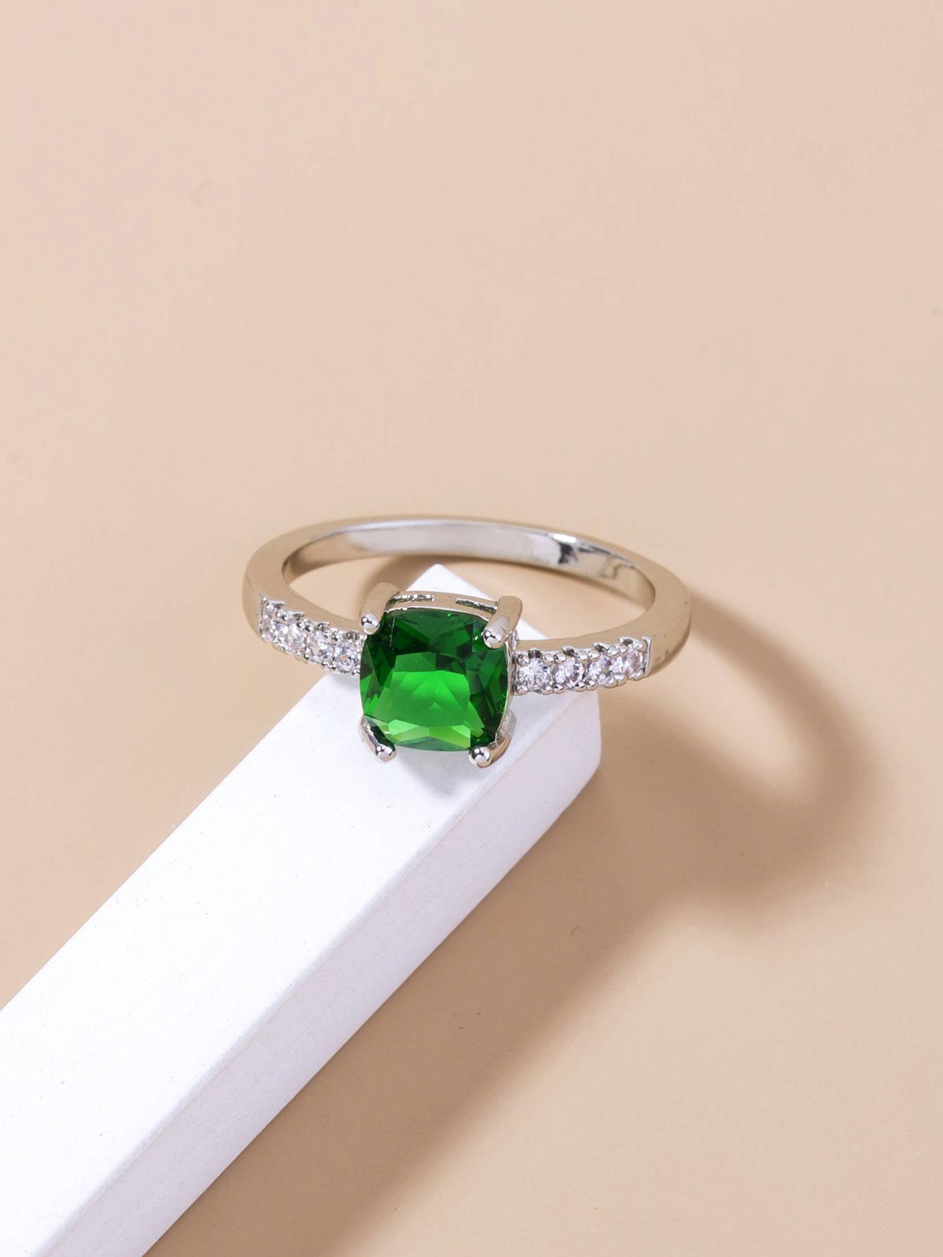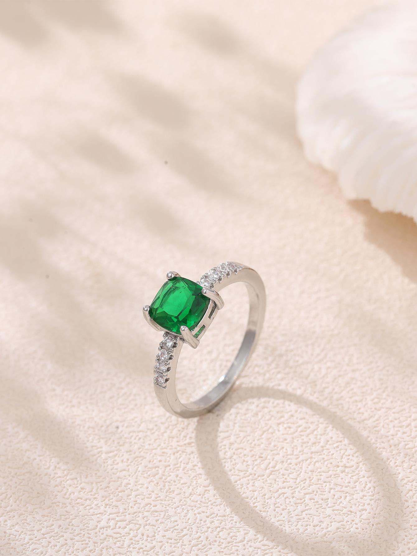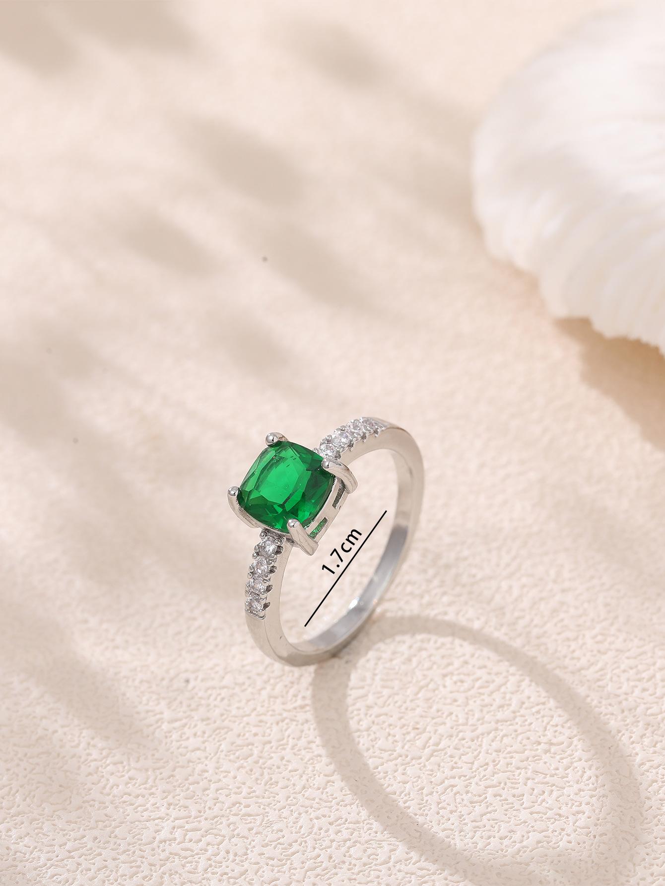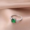 Anillo de circonita verde cuadrada de lujo con estilo ins simple y tendencia de moda de venta caliente transfronteriza entre Europa y Estados Unidos
