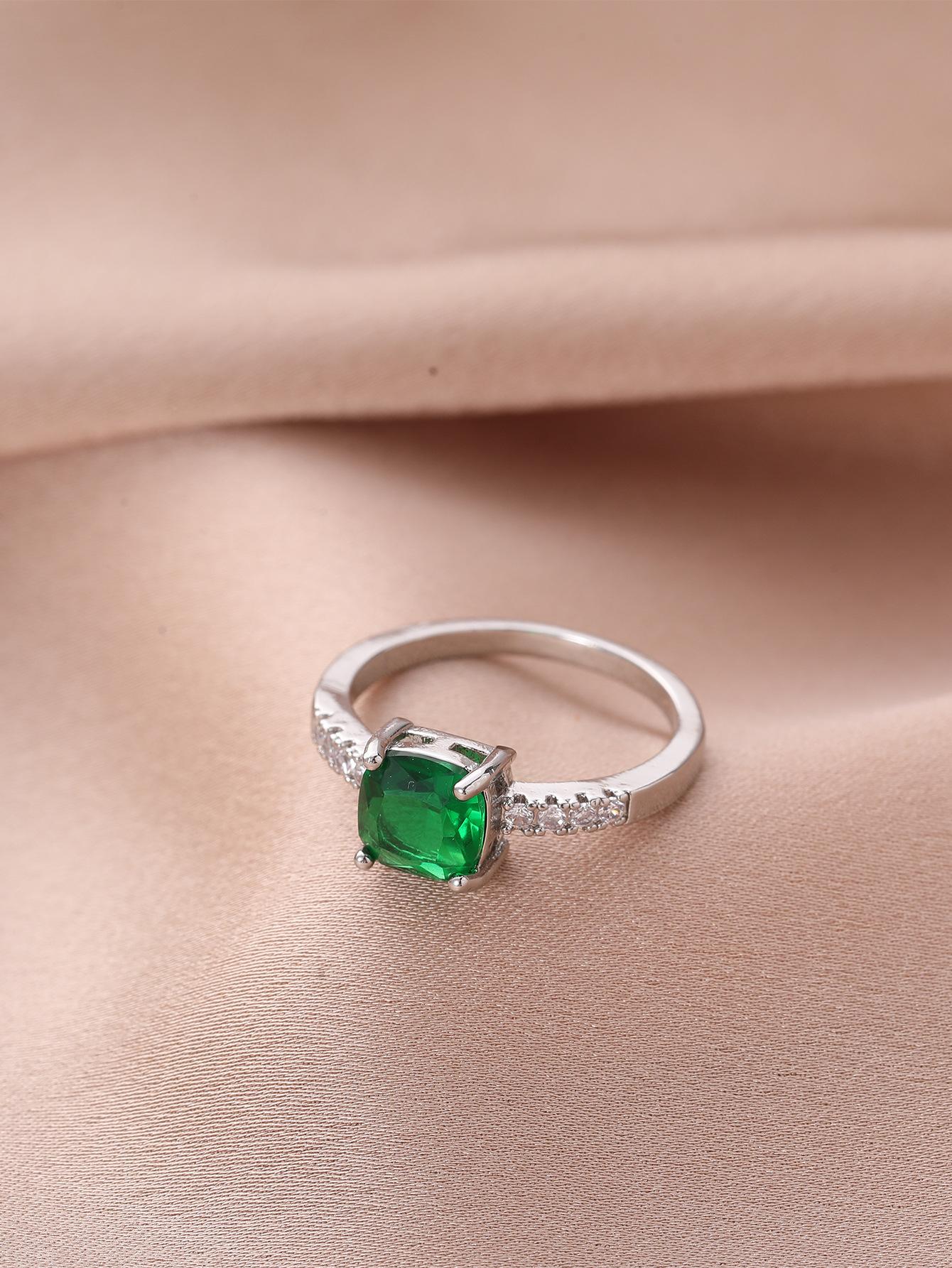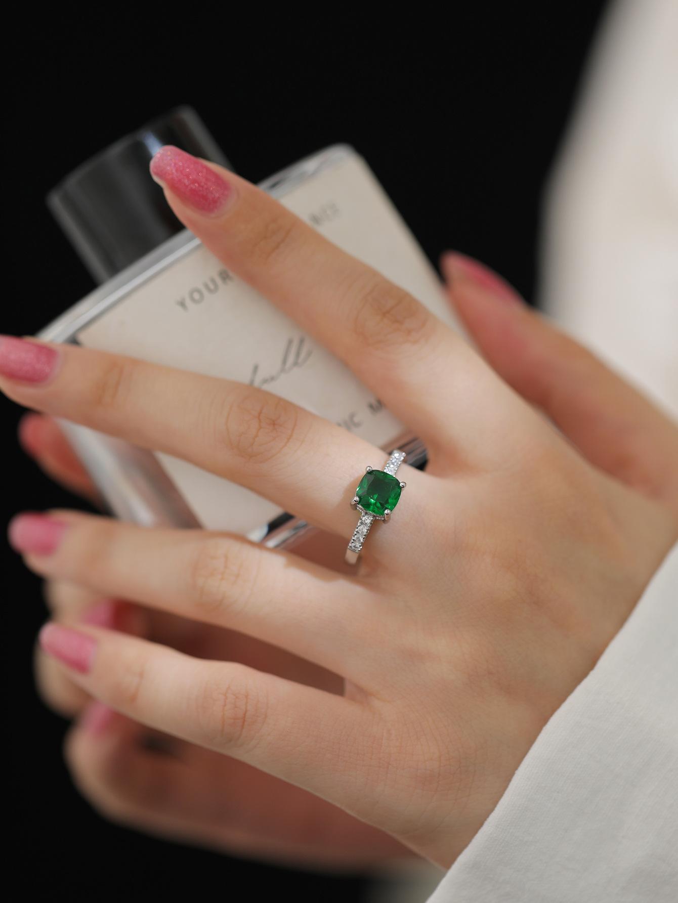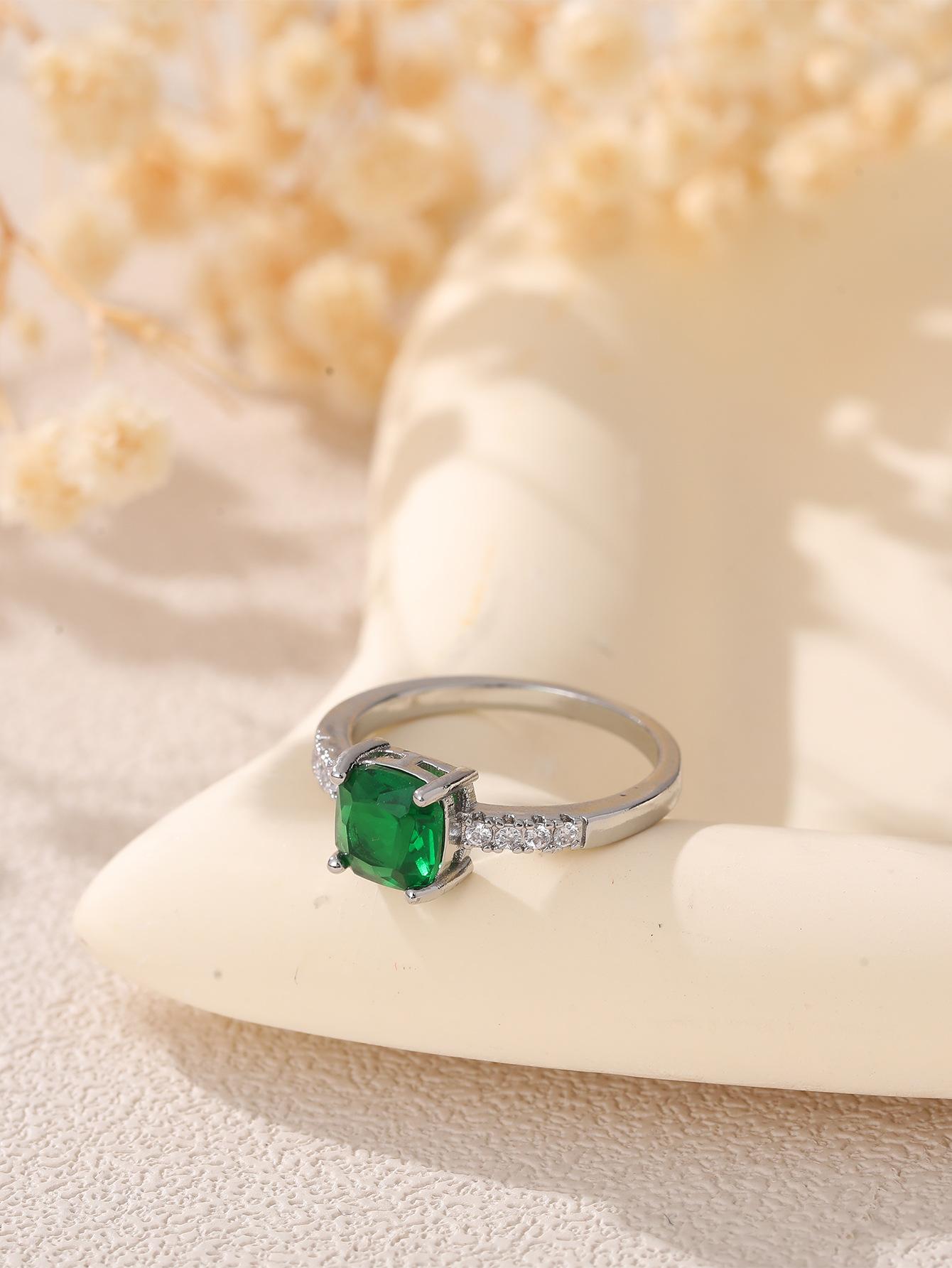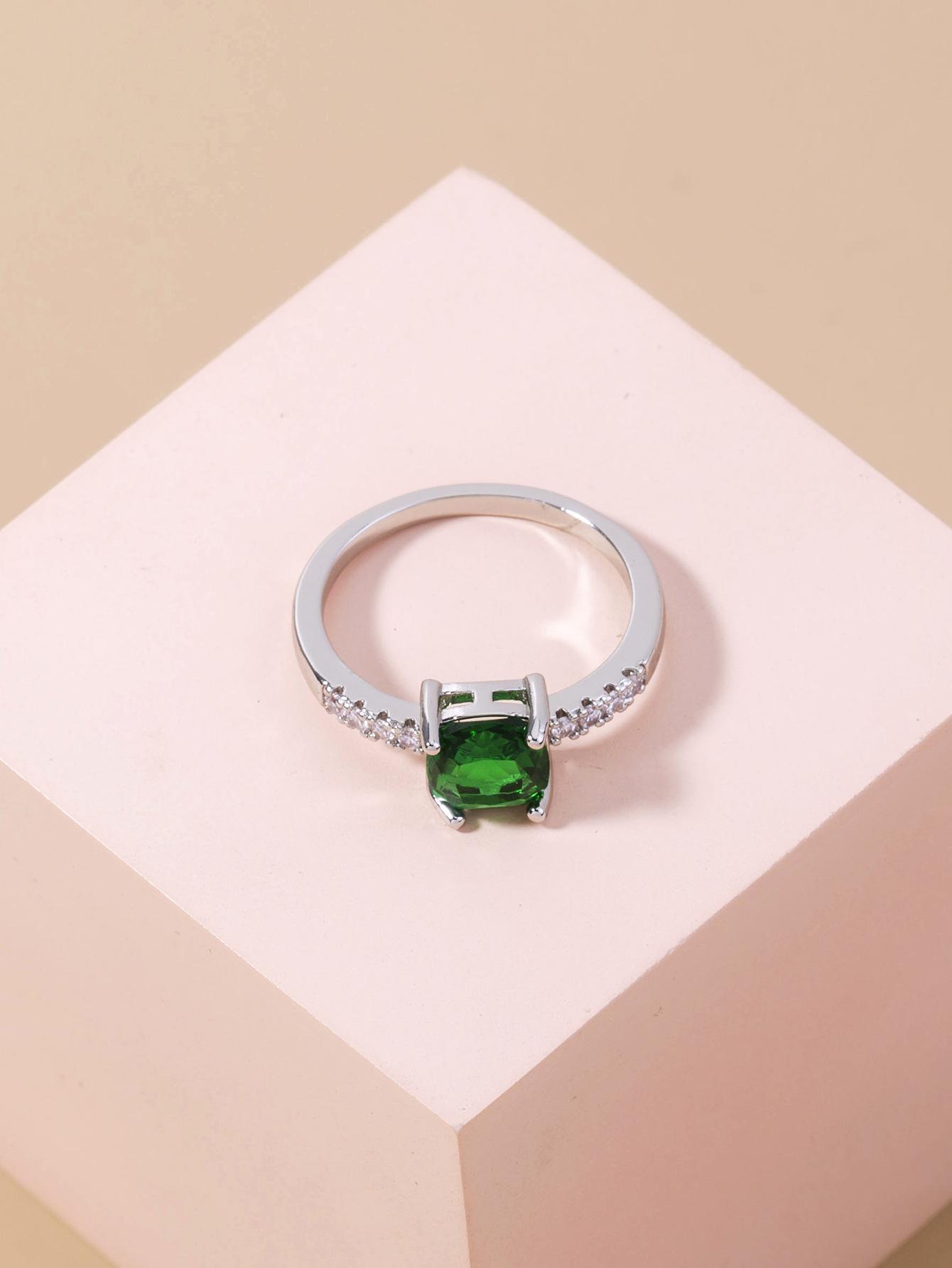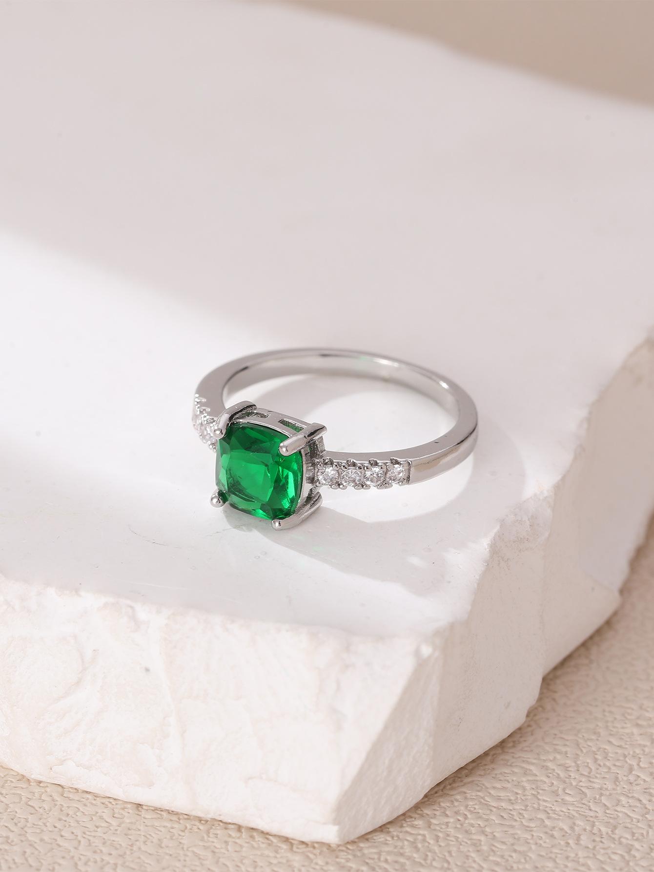 Anillo de circonita verde cuadrada de lujo con estilo ins simple y tendencia de moda de venta caliente transfronteriza entre Europa y Estados Unidos