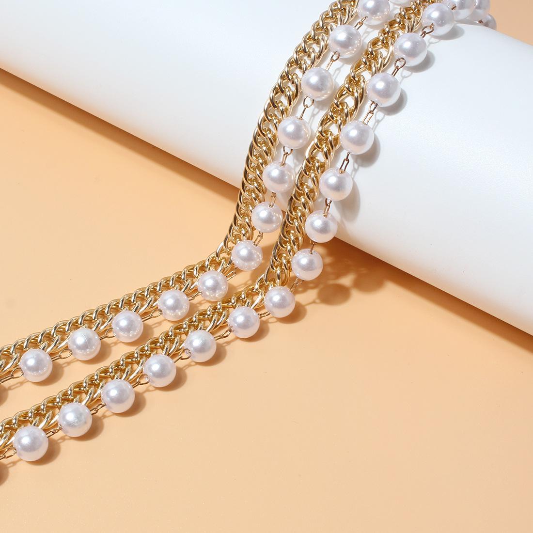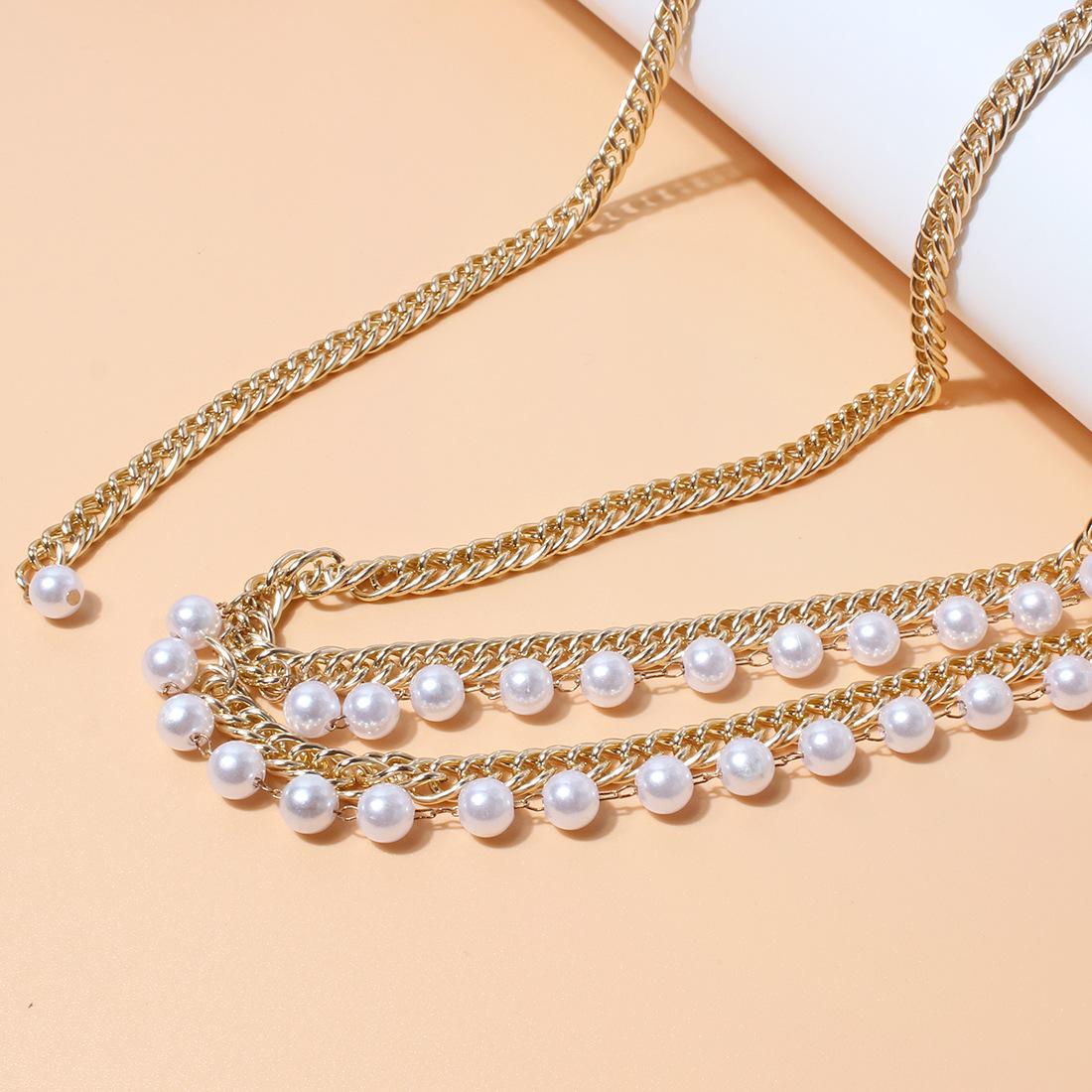 Cadena geométrica sexy transfronteriza europea y americana, cadena corporal con borlas multicapa de perlas de imitación, joyería para mujer 19750