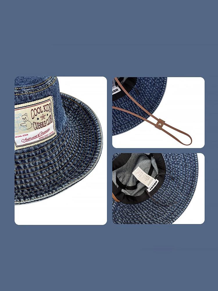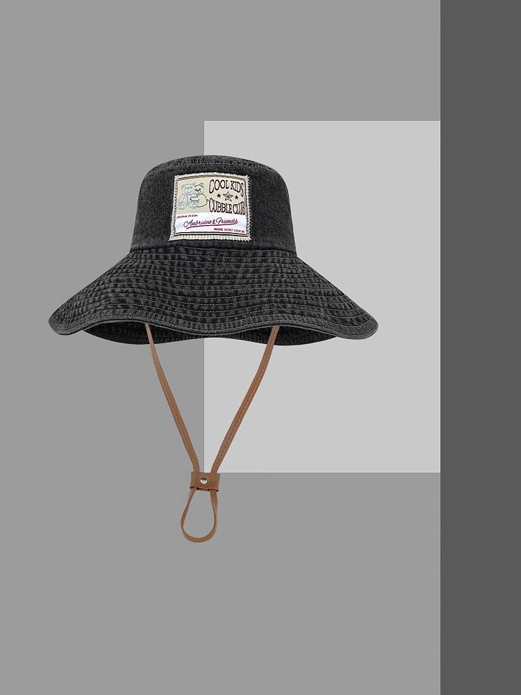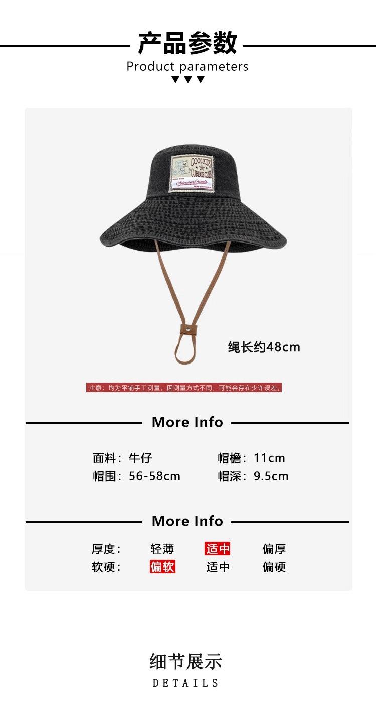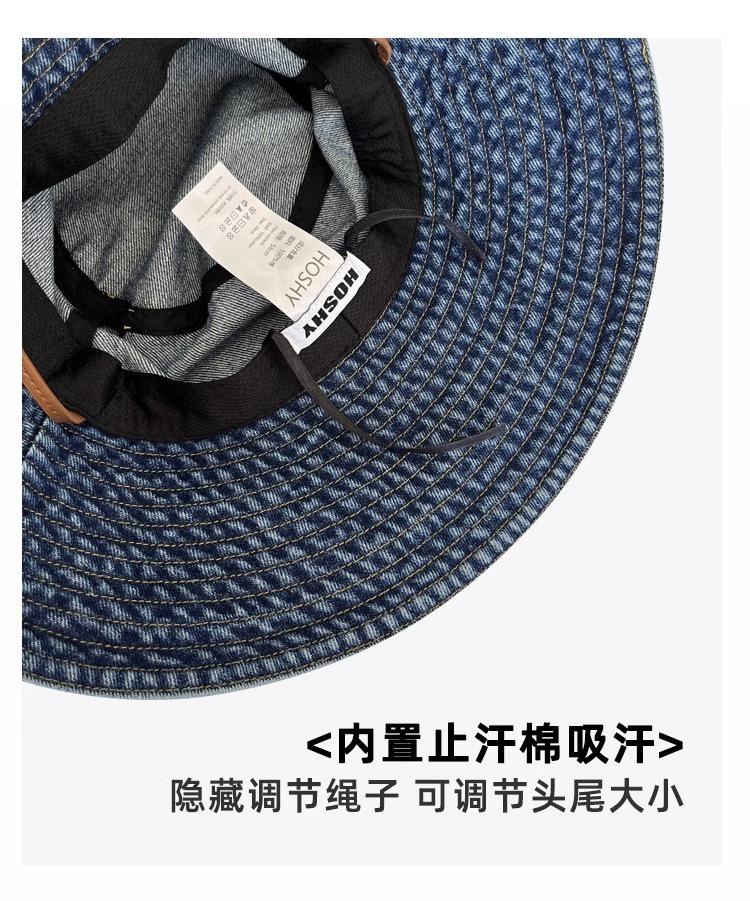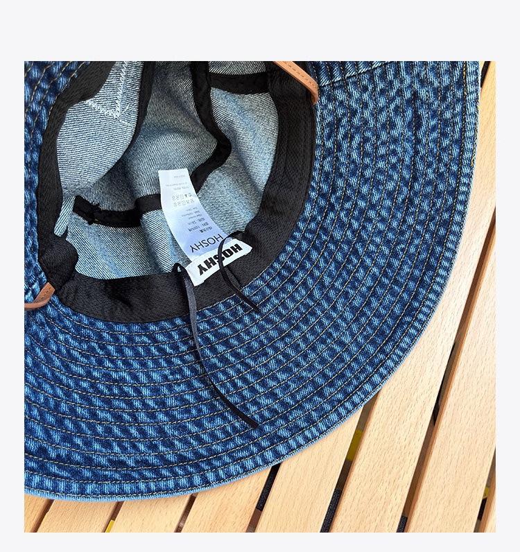 Sombrero de pescador japonés, sombrero de lavabo para hombres y mujeres, primavera y verano, retro, combinable, sombrero grande, ala de cuero, resistente al viento, cuerda, parasol, protección solar, cara pequeña.