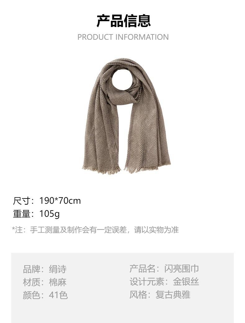 Chal brillante transfronterizo bufanda grande pañuelo para la cabeza oro y plata seda algodón y lino arrugado bufanda larga bufanda de seda ventas directas de fábrica bufanda