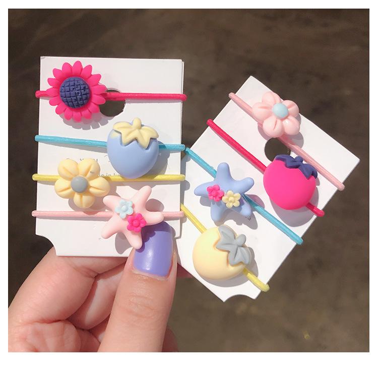 La cuerda con forma de cabeza de fruta de dibujos animados para bebés de Corea del Sur no daña el cabello, pequeña banda de goma para el cabello para niñas, color de alta elasticidad