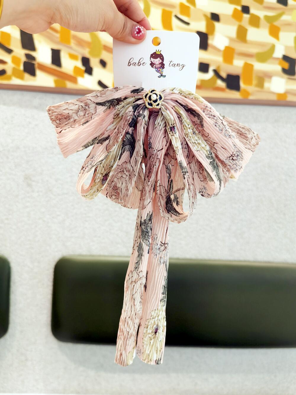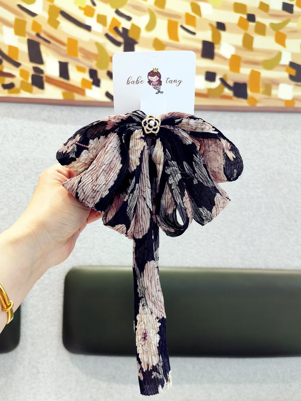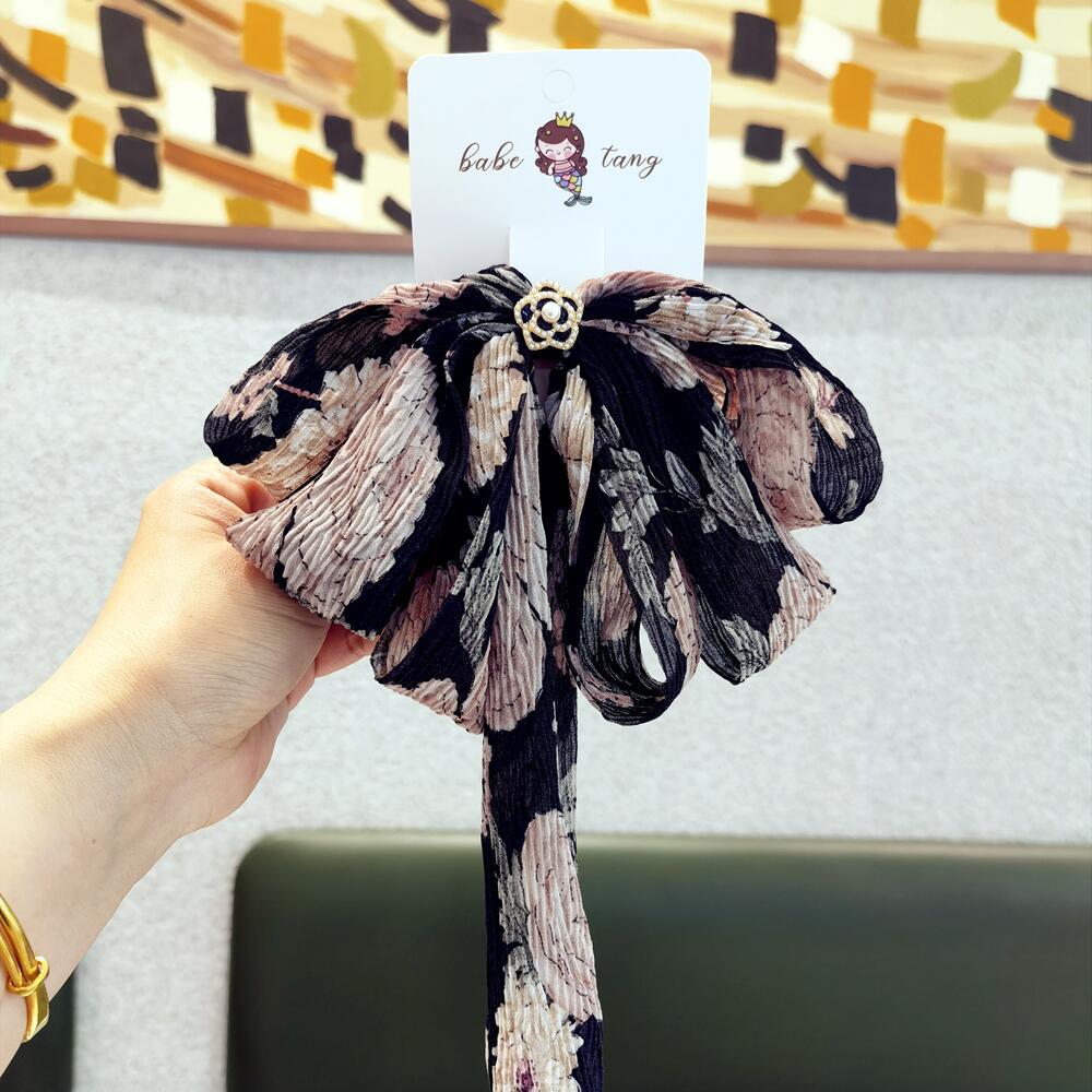Tienda de fábrica nuevos accesorios para el cabello al por mayor gasa hilo arrugado lazo grande pasador de cinta accesorios para clip superior