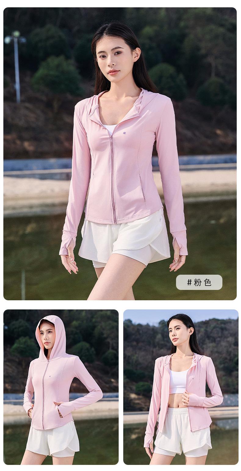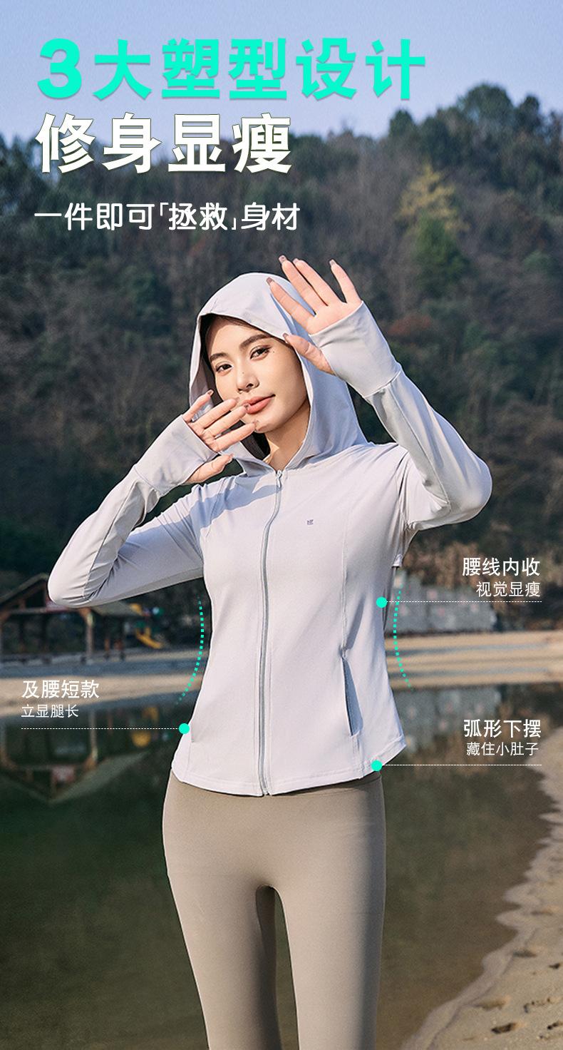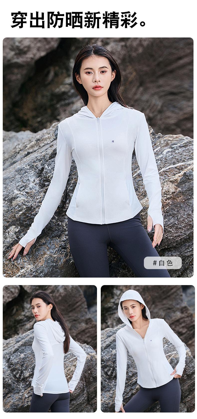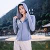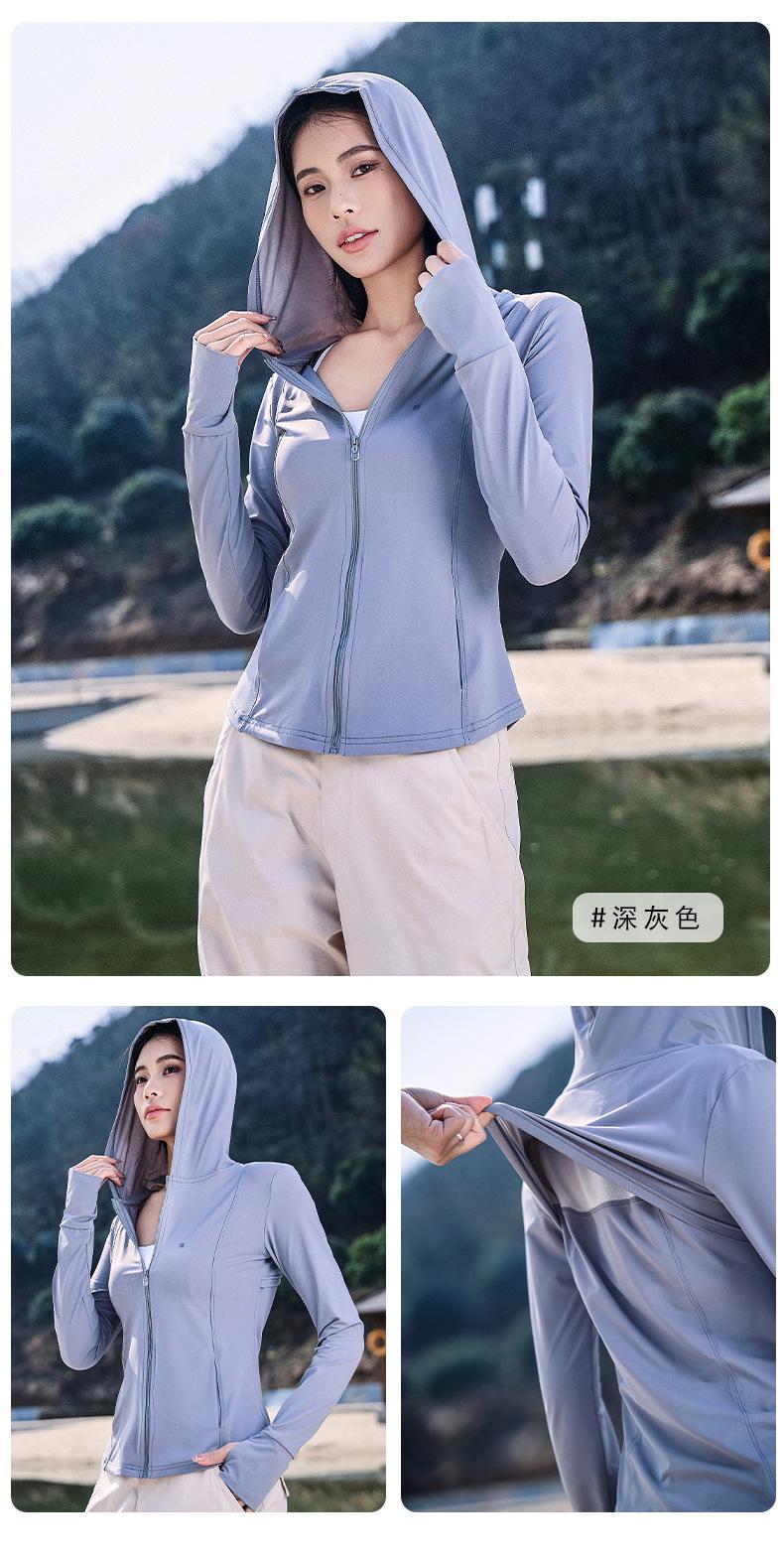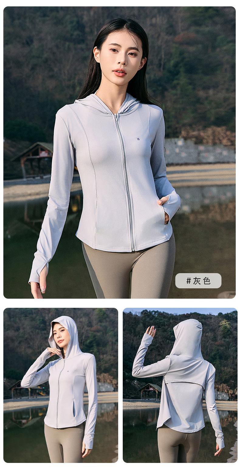 Chaqueta con capucha de yoga antiultravioleta para mujer, transpirable, de verano, ajustada y con protección solar, de nailon y seda helada.