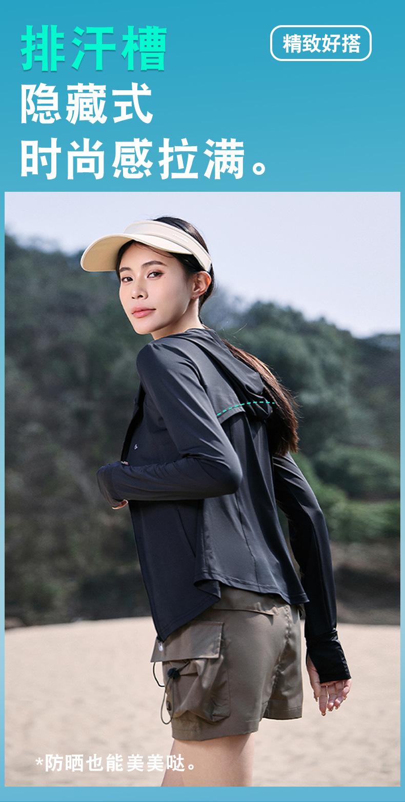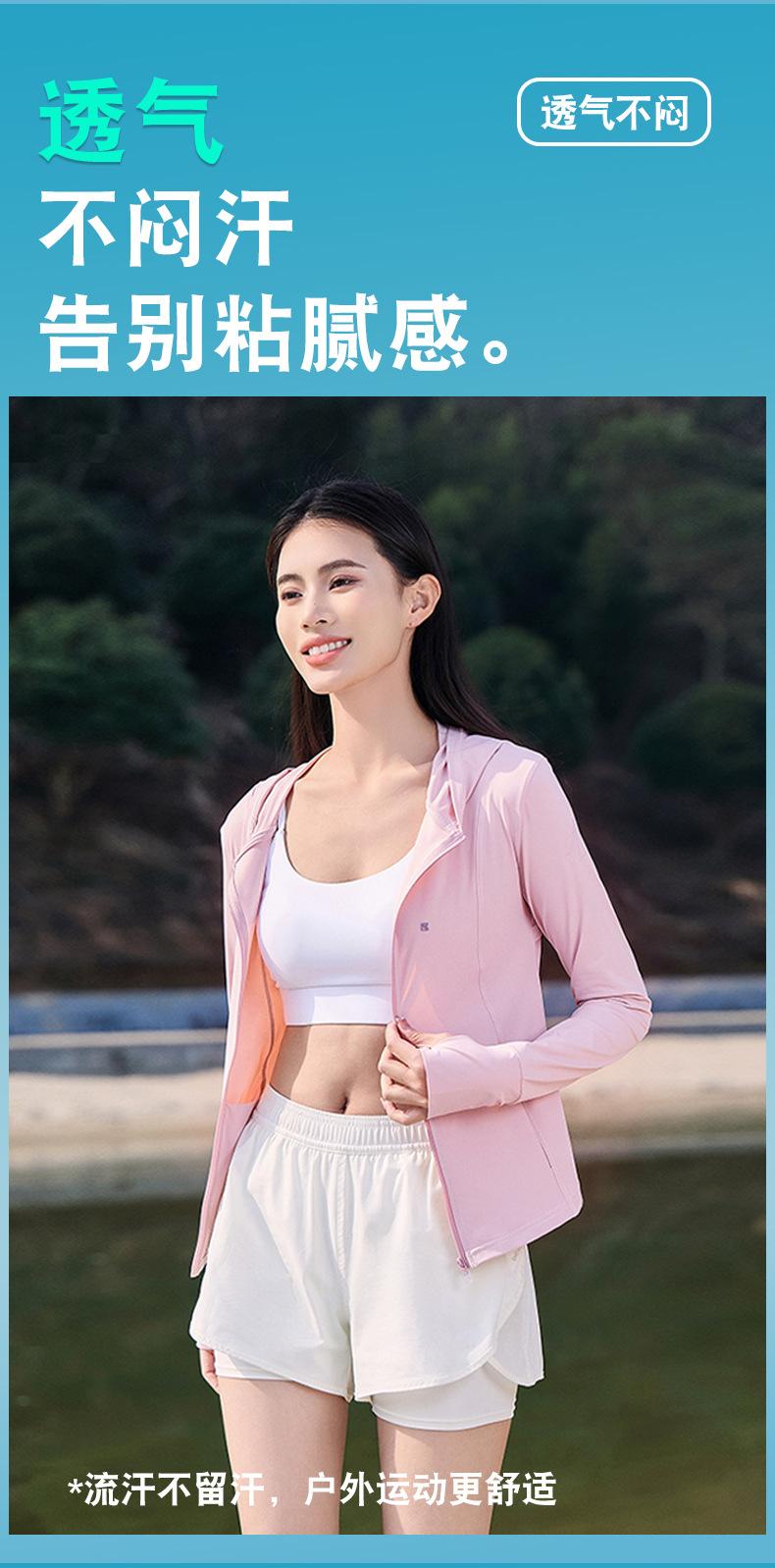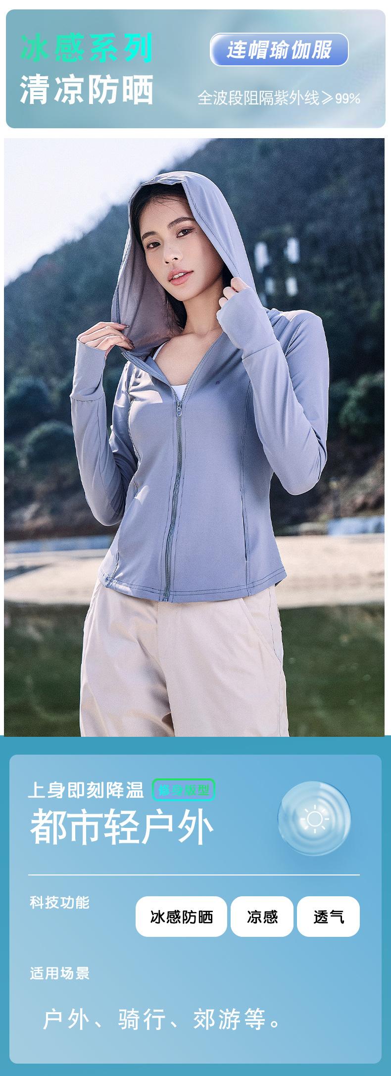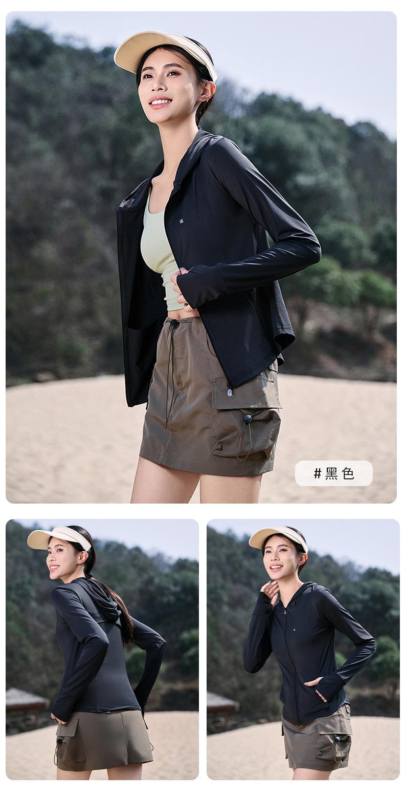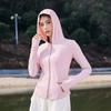 Chaqueta con capucha de yoga antiultravioleta para mujer, transpirable, de verano, ajustada y con protección solar, de nailon y seda helada.