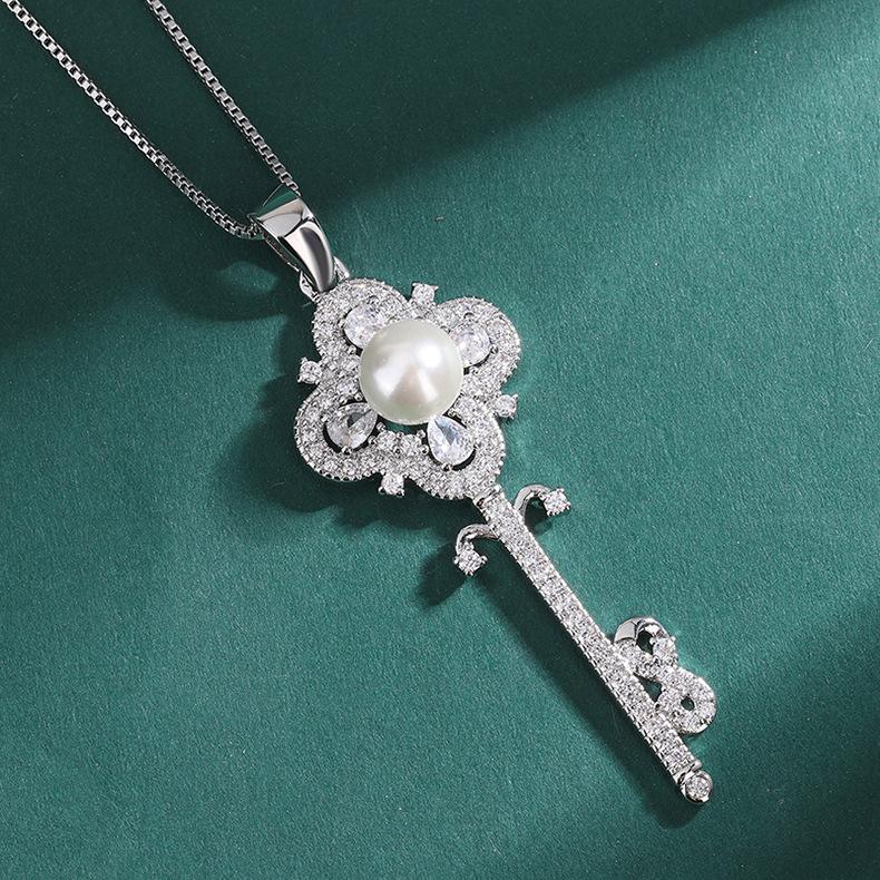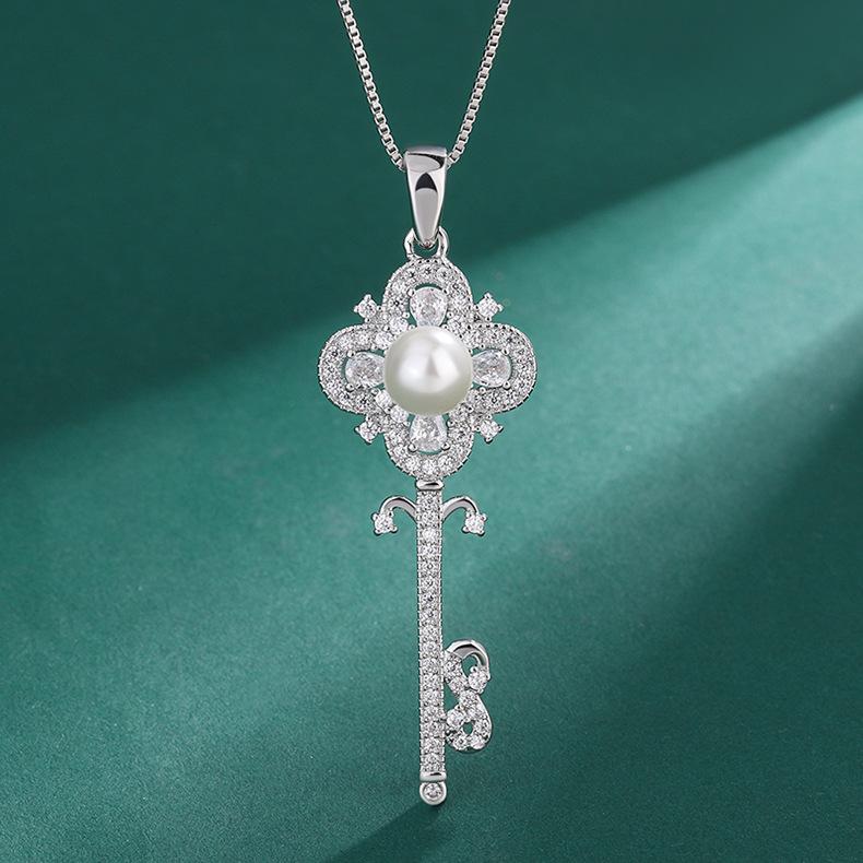 Collar de perlas con llave de diamante de 7,5 mm, accesorios de imitación de perla natural, cadena de clavícula, colgante, venta al por mayor en vivo transfronteriza