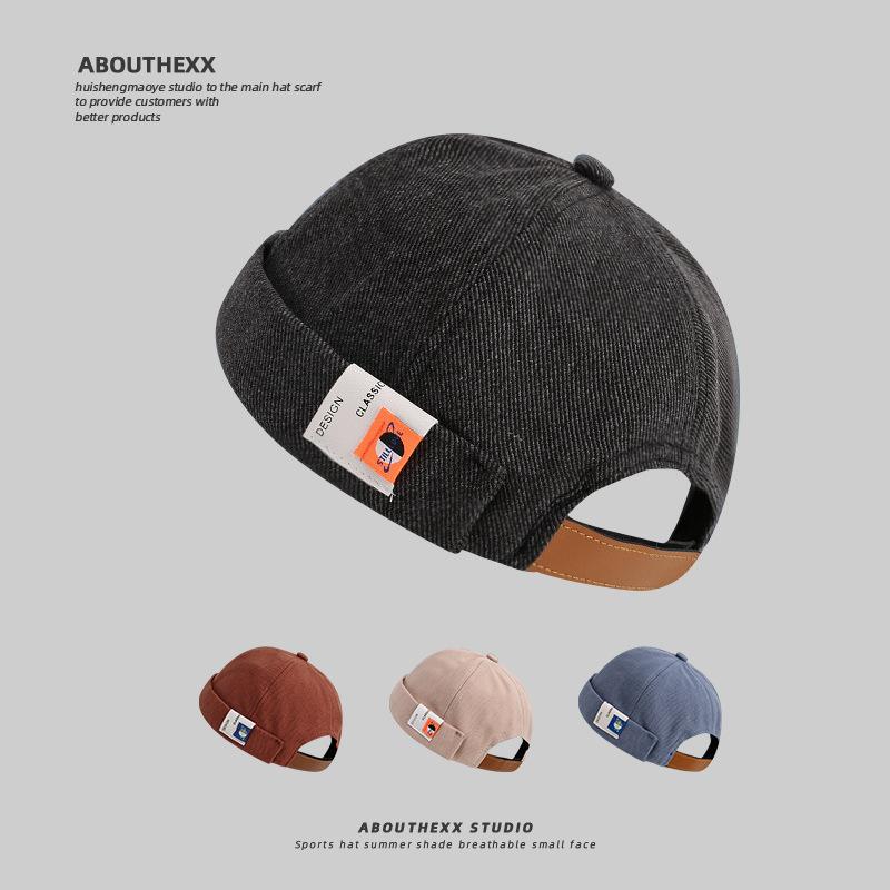 Sombrero de melón de primavera y verano para mujer, sombrero de piso retro de calle, sombrero de yuppie marinero sin ala de hip hop callejero japonés nuevo para hombre