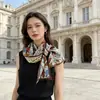 Bufanda de seda para mujer, primavera y verano, nueva moda, estilo occidental, estampado de flores y hojas, doble capa, doble cara, bufanda larga de seda morera