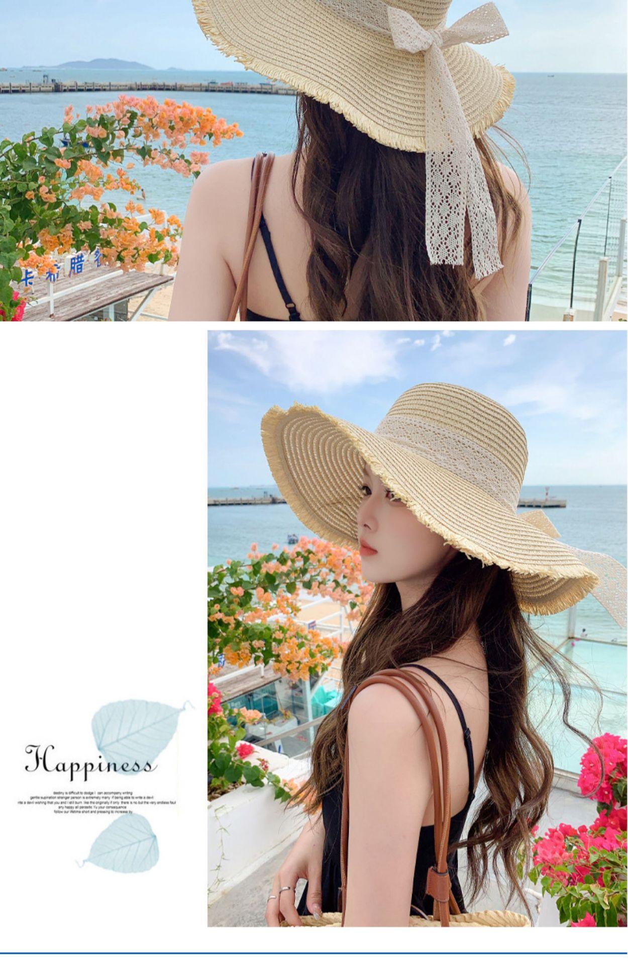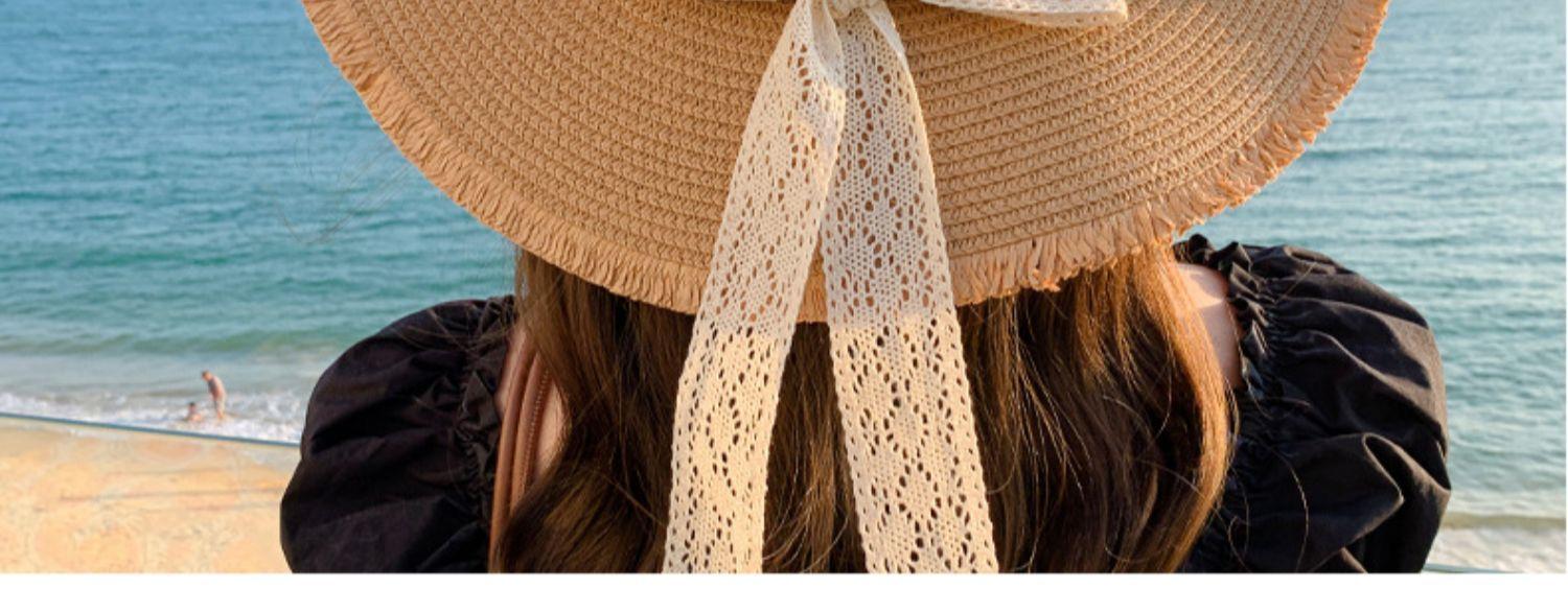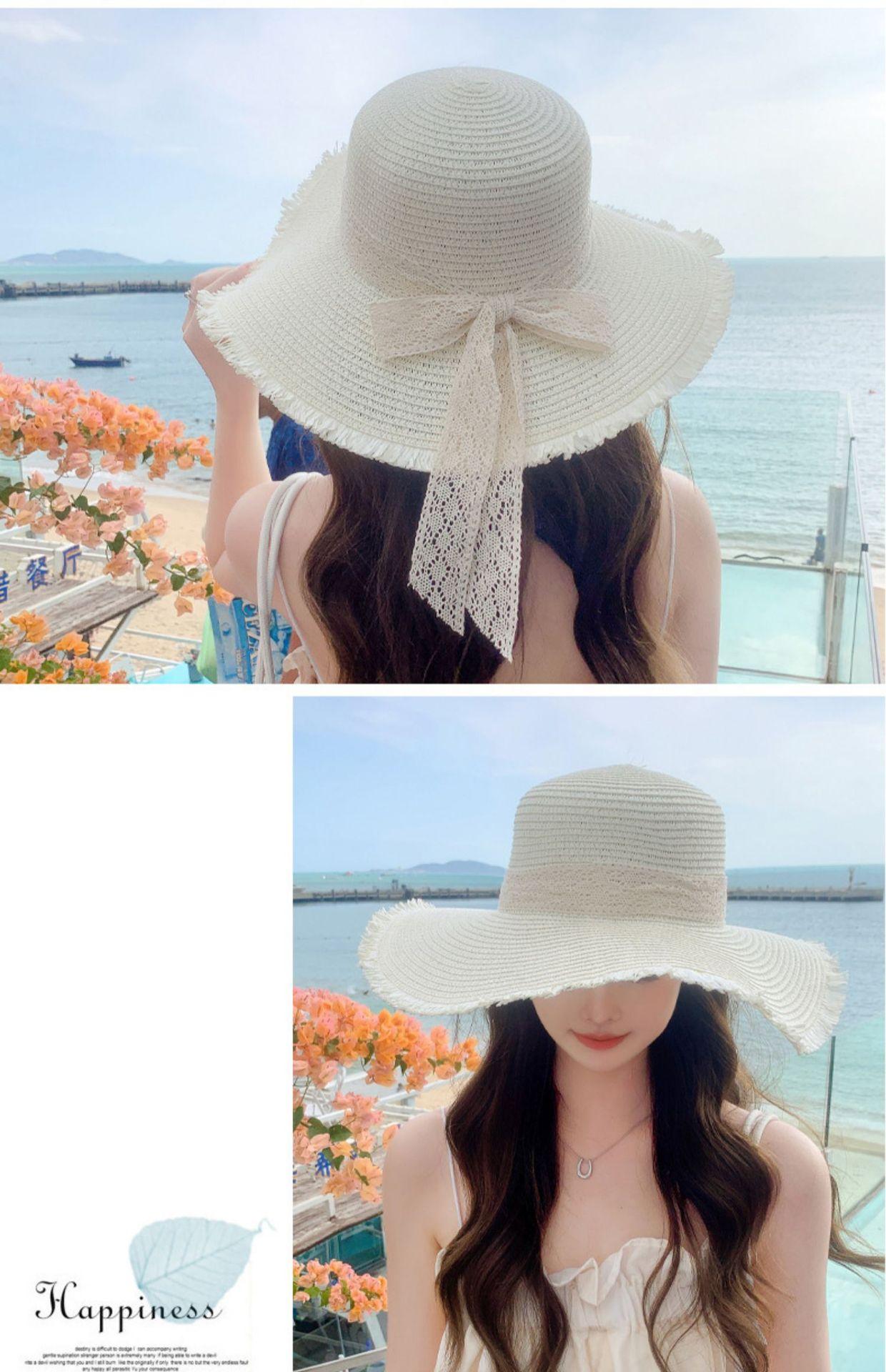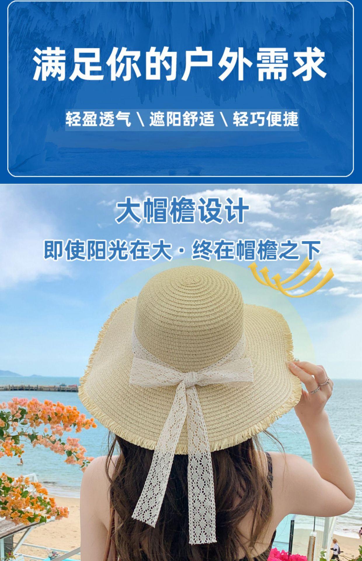 Sombrero de verano nuevo para mujer, con lazo de cinta, sombrero de paja para viajes al aire libre, sombrero para el sol con protección solar para la playa.
