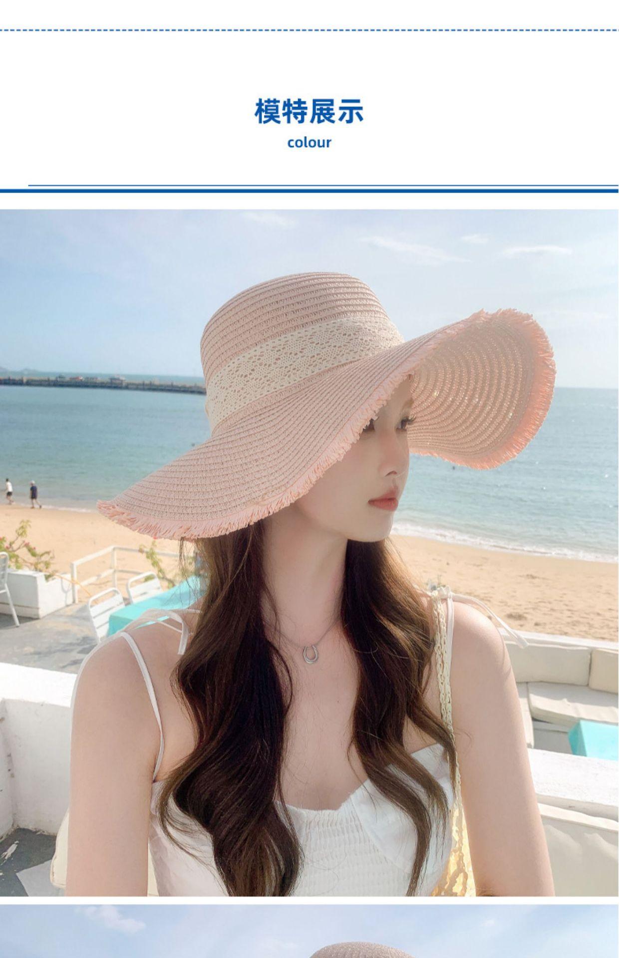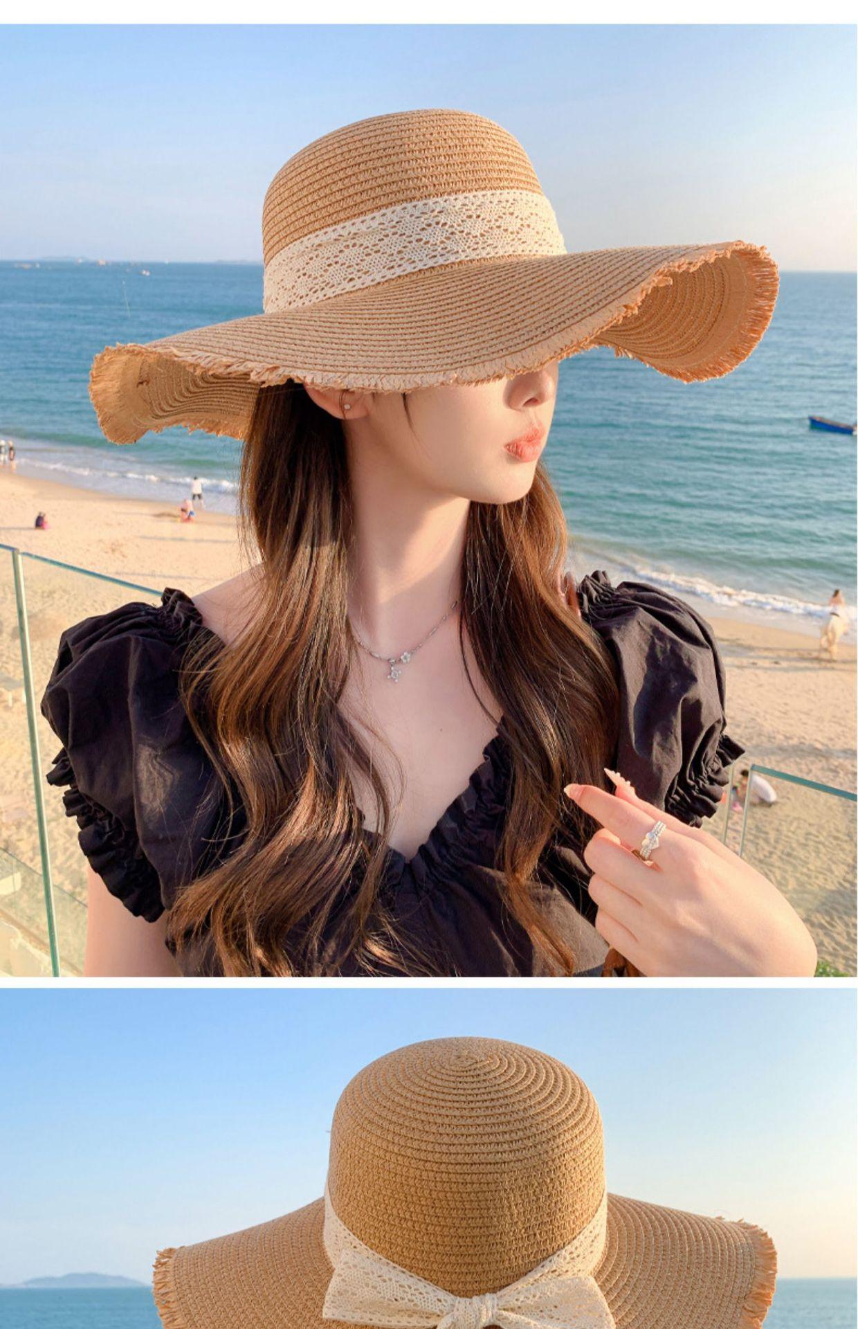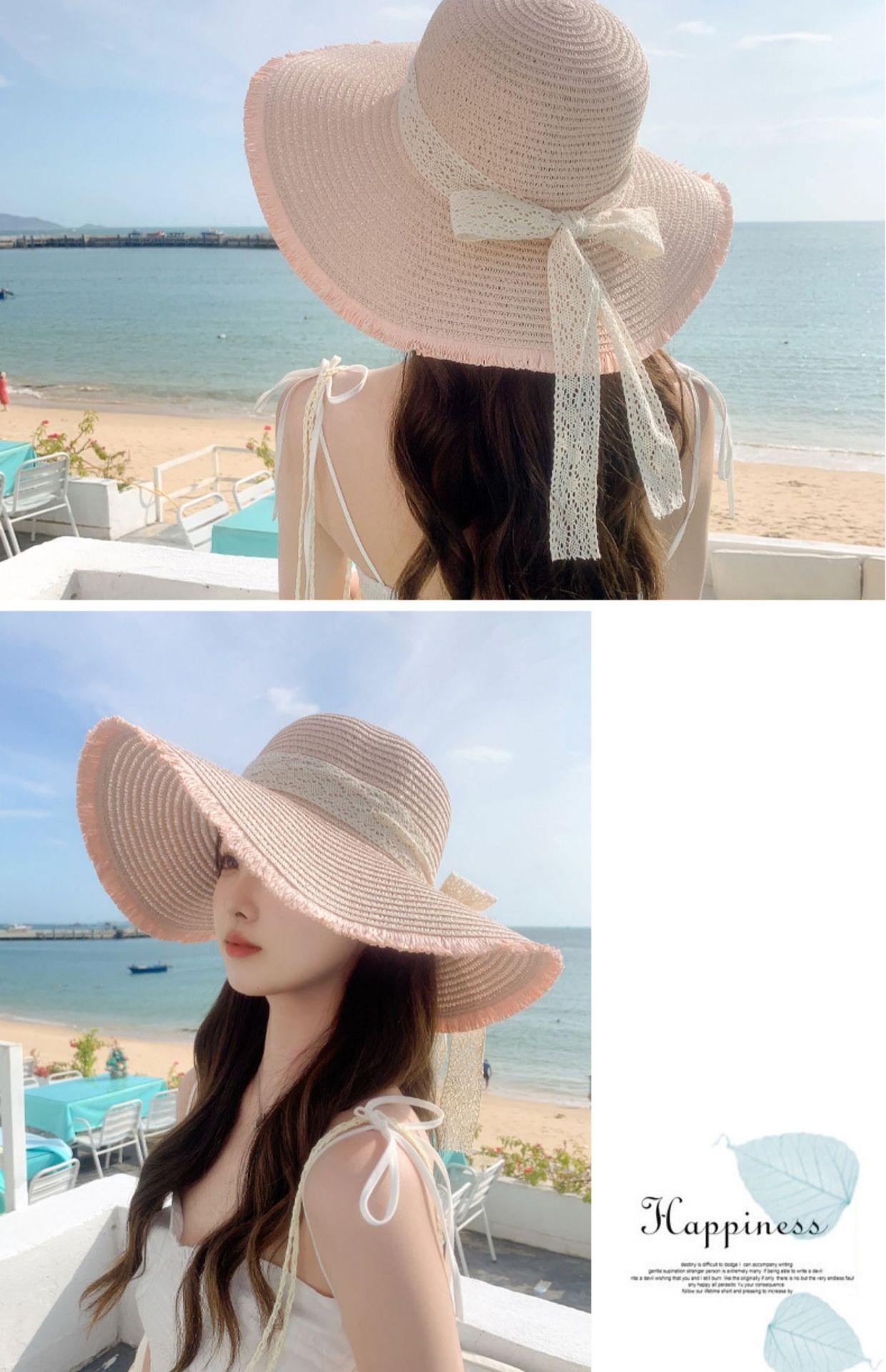 Sombrero de verano nuevo para mujer, con lazo de cinta, sombrero de paja para viajes al aire libre, sombrero para el sol con protección solar para la playa.