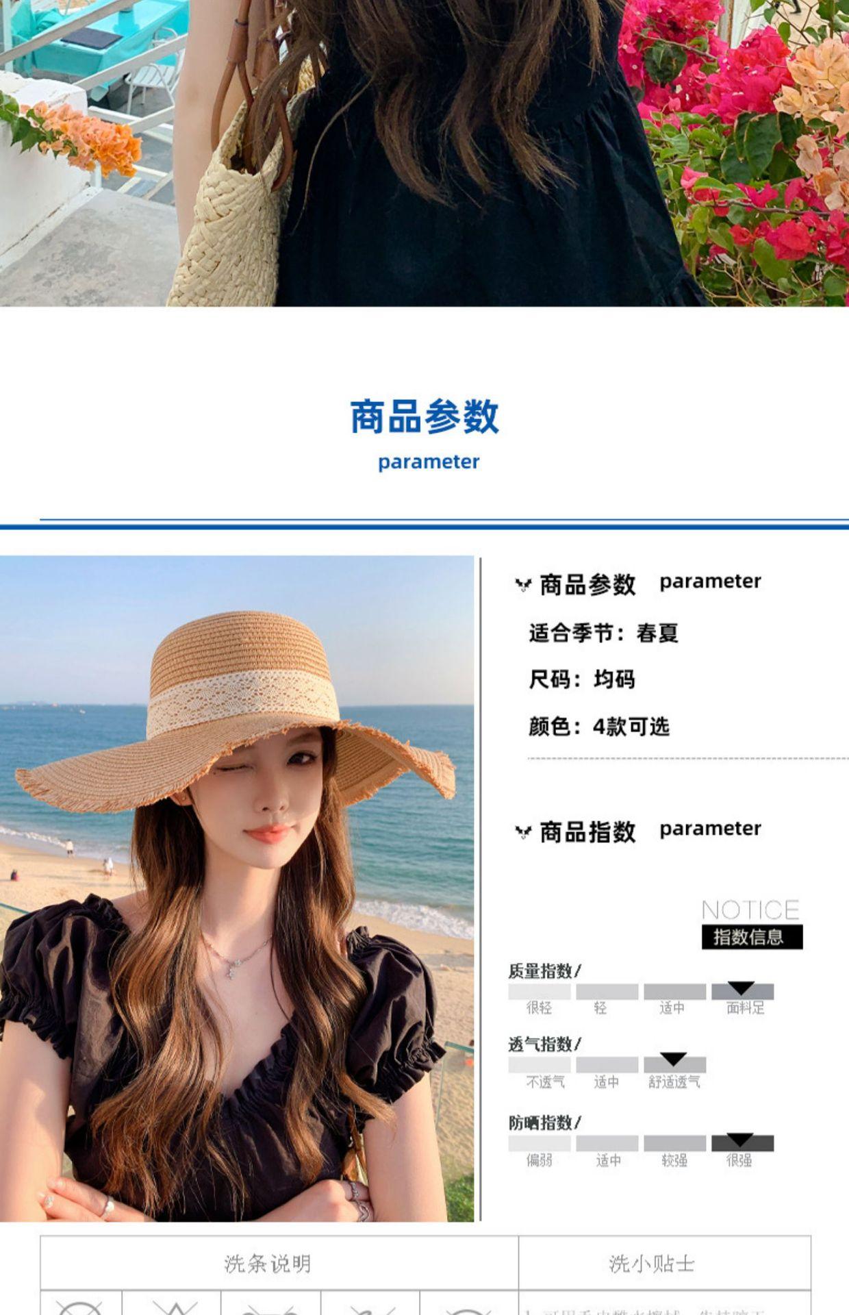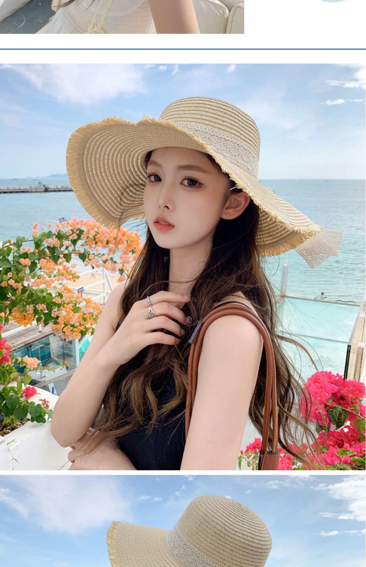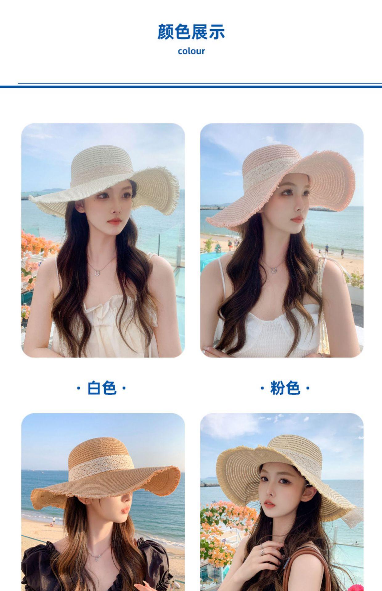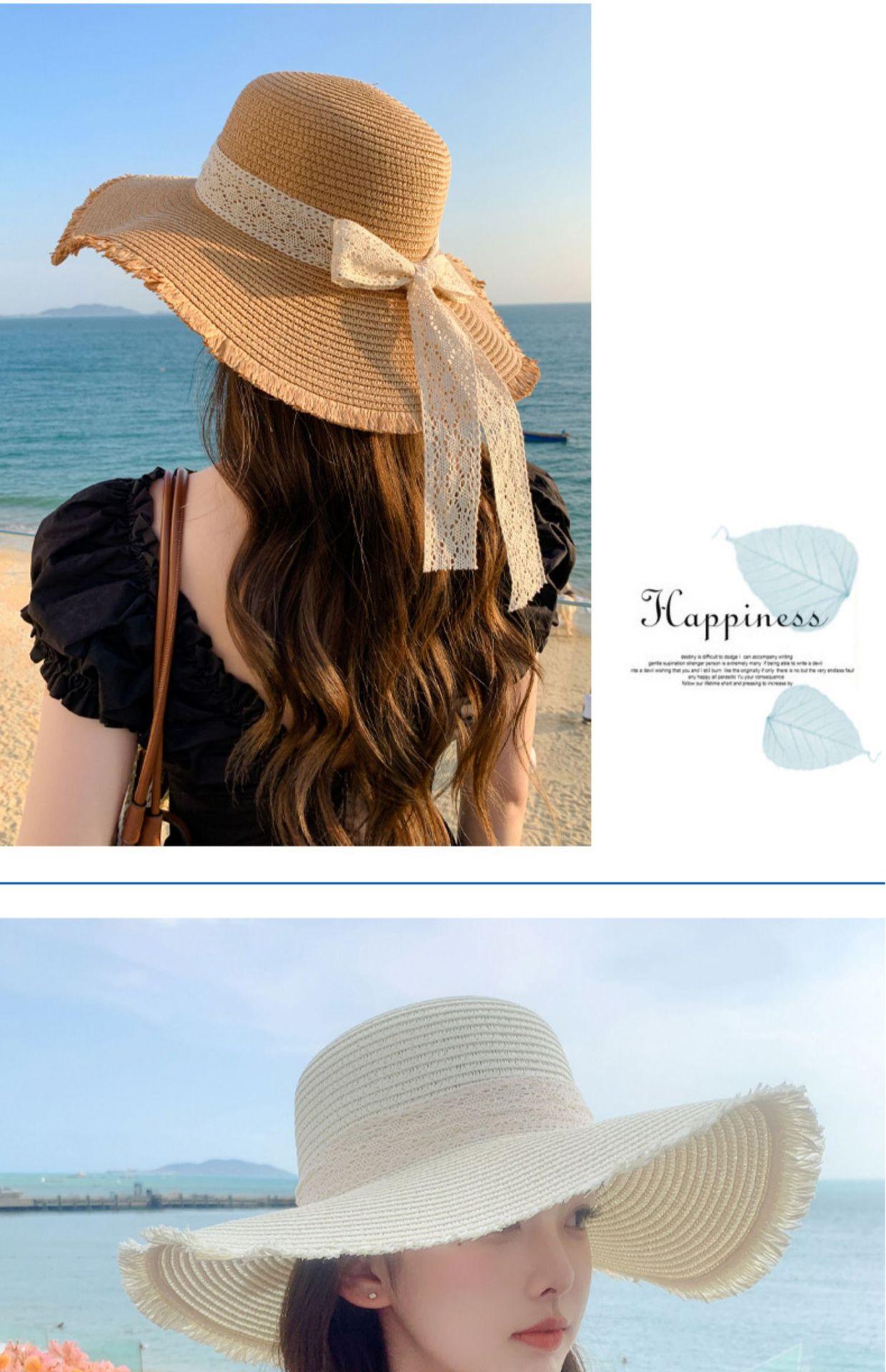 Sombrero de verano nuevo para mujer, con lazo de cinta, sombrero de paja para viajes al aire libre, sombrero para el sol con protección solar para la playa.