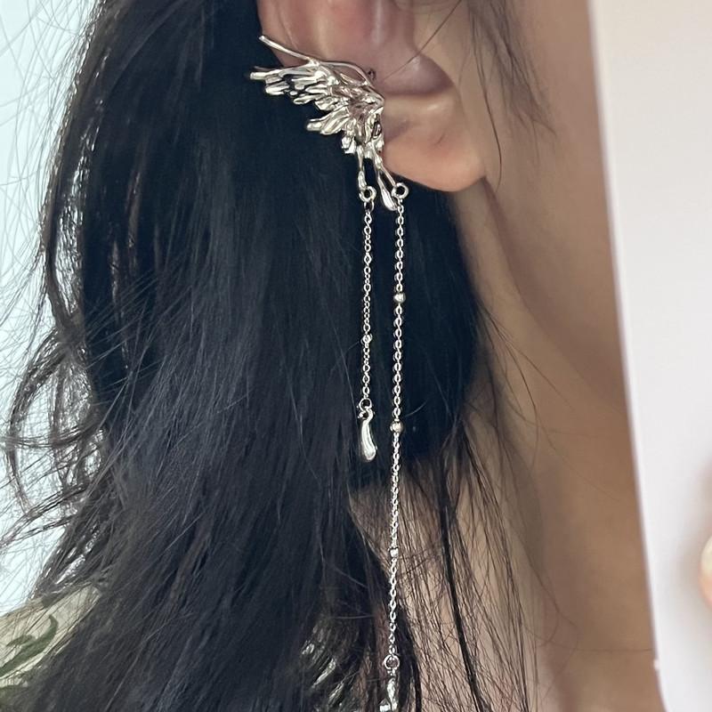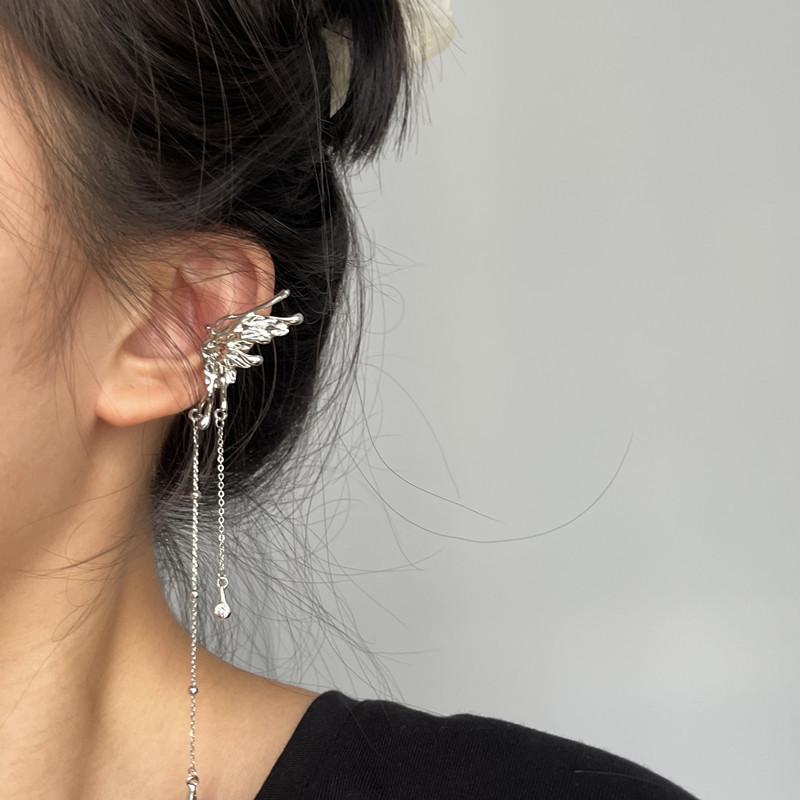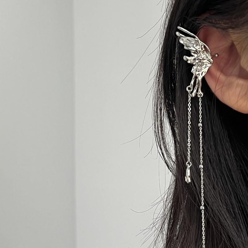 Pendientes de clip con borlas y alas de mariposa para oreja, sin perforaciones, estilo frío para mujer, diseño de nicho, combinables con todo.