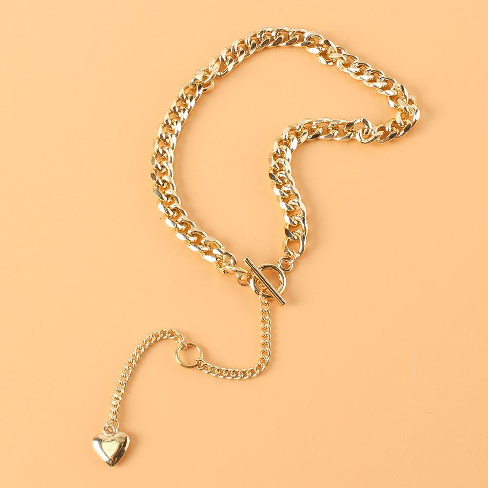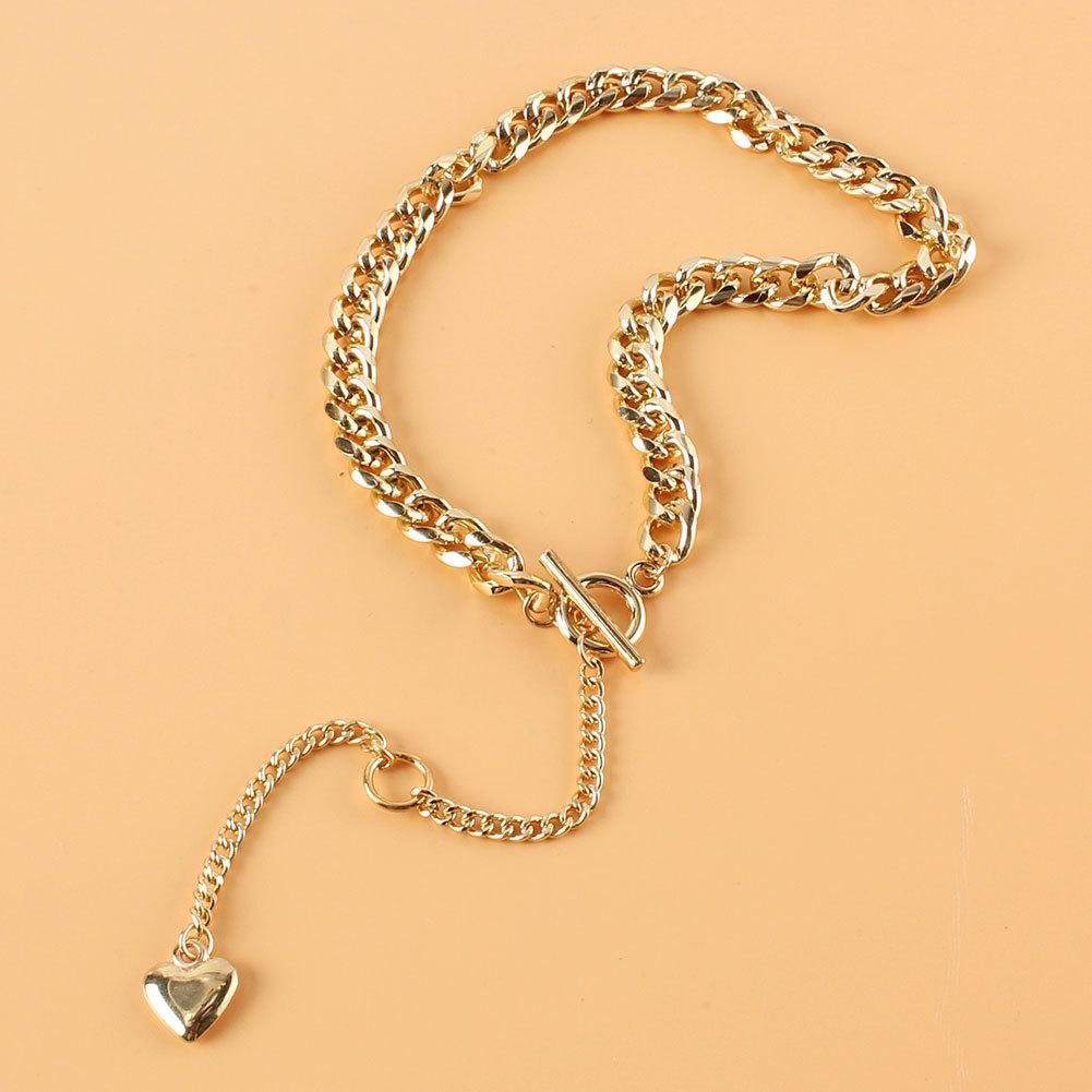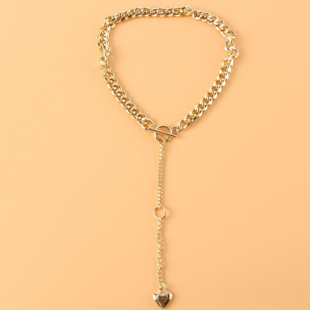 Collar multicapa personalizado de moda transfronteriza europea y americana, colgante de corazón de melocotón de aleación vintage, cadena de hueso de serpiente para mujer 17530