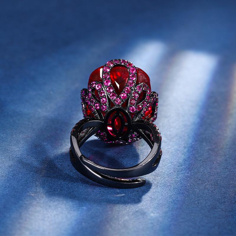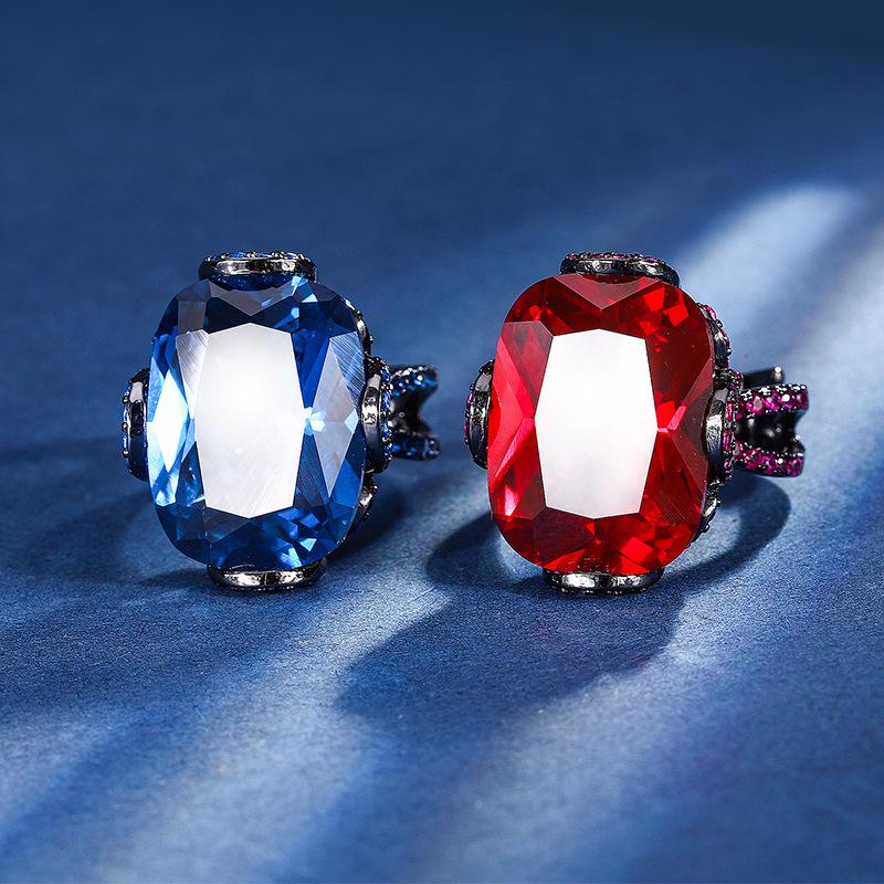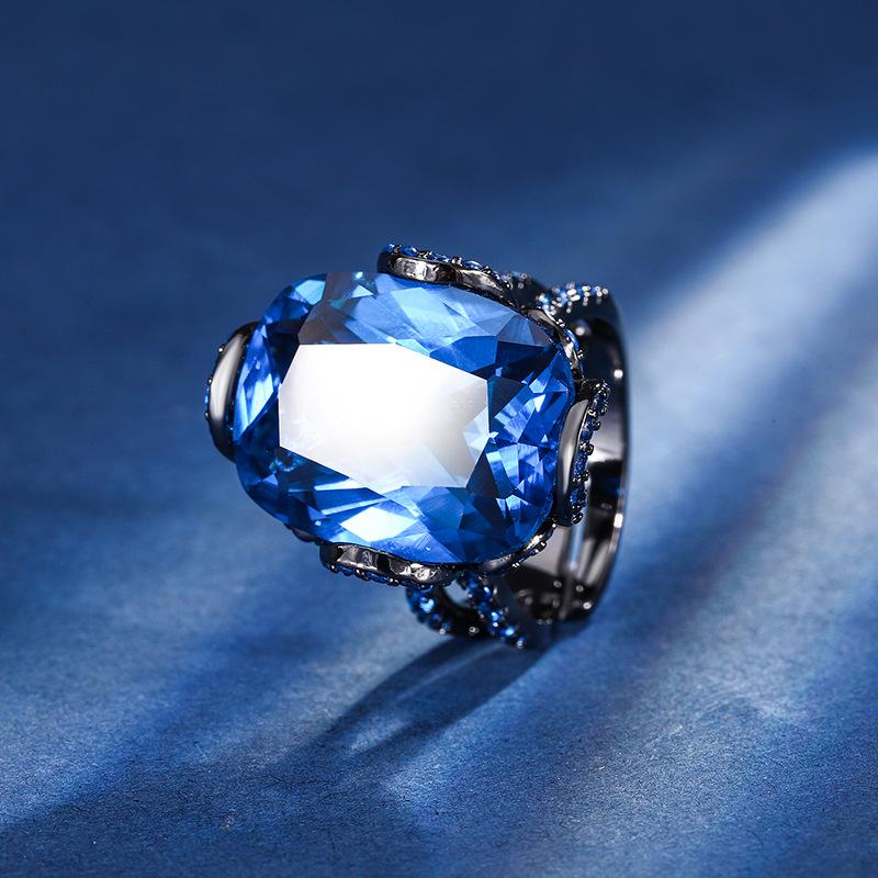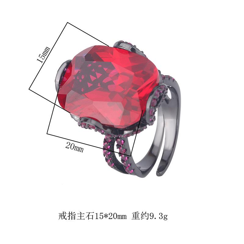 2024 Nueva joyería Zhuang Sheng con fondo de cobre chapado en oro, simulación de corindón, grasa rectangular, luz de lujo, oro negro, dedo femenino 15*20