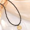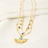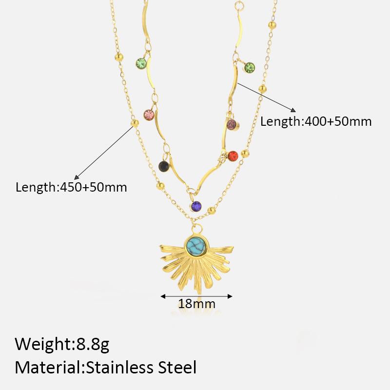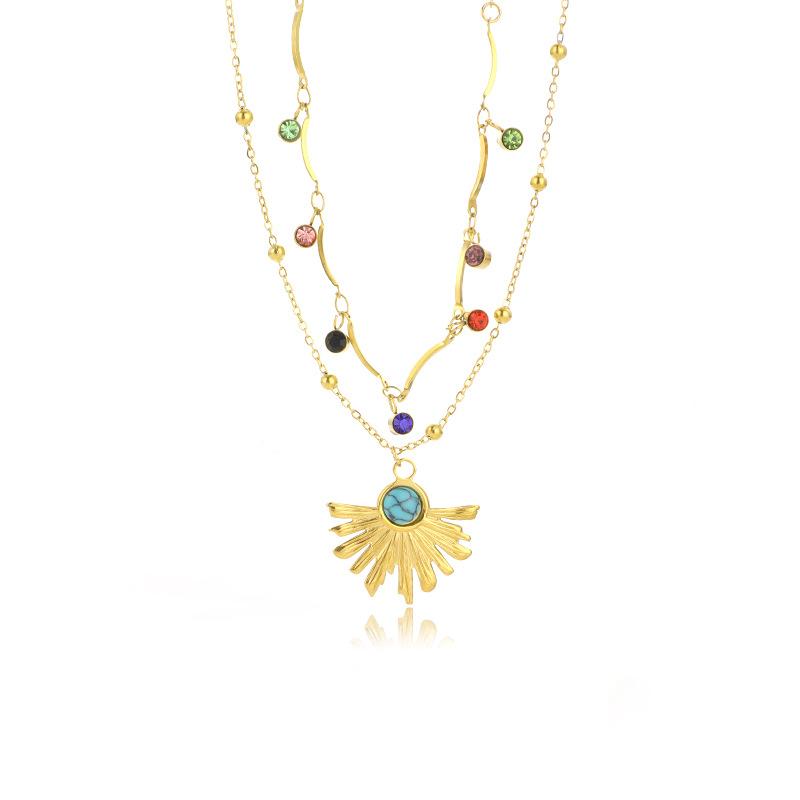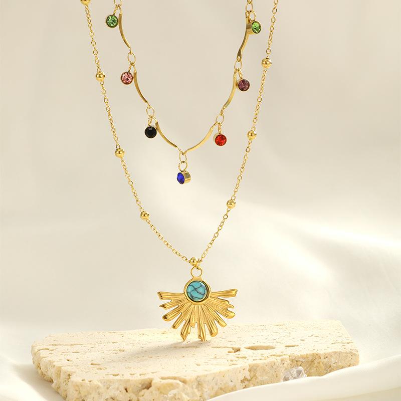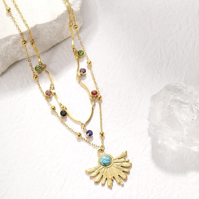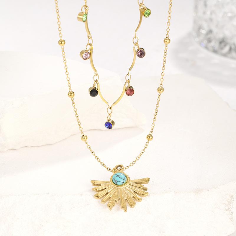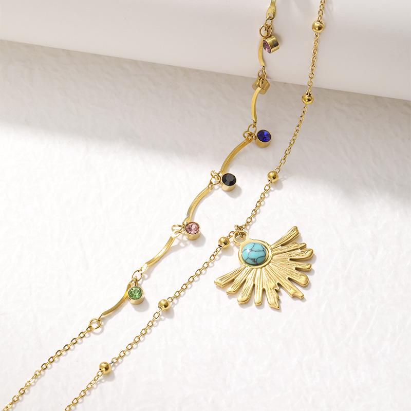 Nuevo temperamento transfronterizo estilo ins simple turquesa collar de doble capa personalidad Joker acero inoxidable collar chapado en oro al por mayor