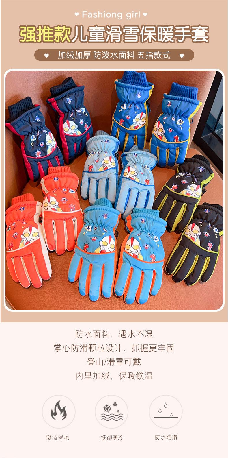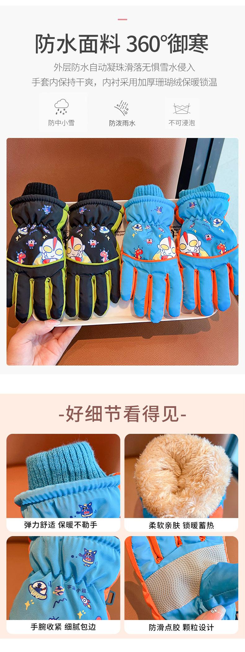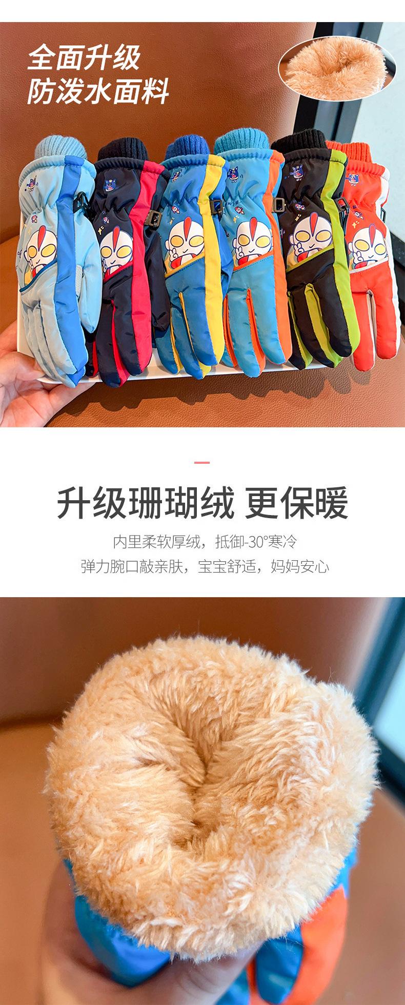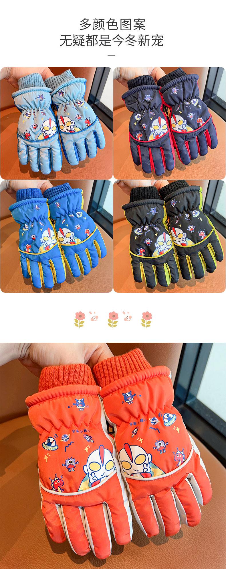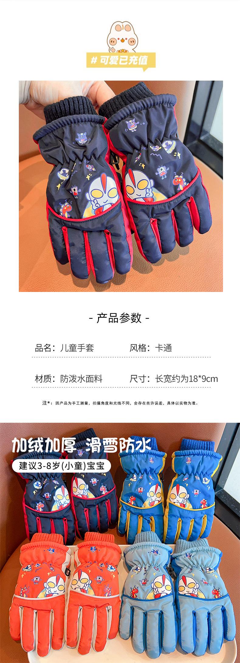 Guantes de esquí para niños de invierno con dibujos animados Ultraman para niño, forrados en polar, cálidos, impermeables, para montar a caballo, para niños de 3 a 6 años