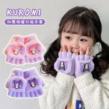 Guantes de terciopelo de cinco dedos para niñas Kuromi, con dibujos animados bonitos de otoño e invierno, resistentes al viento y cálidos, sin dedos.