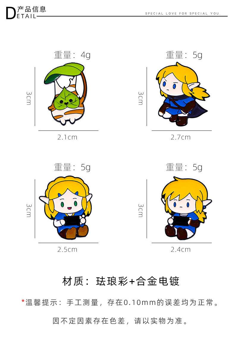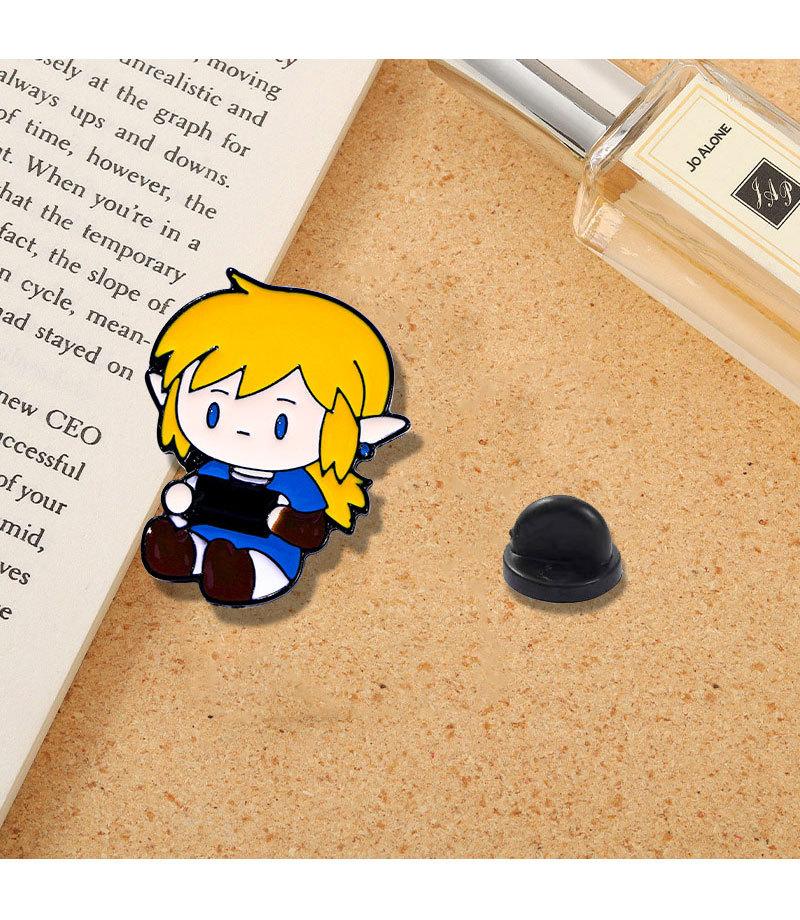 Broche con insignia de personaje de dibujos animados de metal que rodea el juego Zelda, insignia para estudiante, accesorios bonitos, hebilla para bolso
