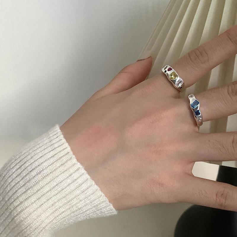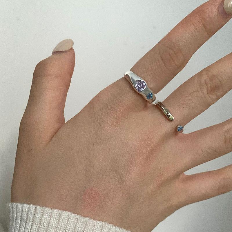 Anillo de Diseño Nicho Retro Lujo Ligero con Incrustaciones de Gemas Coloridas para Mujer, Anillo de Dedo Índice Abierto Moderno y Versátil