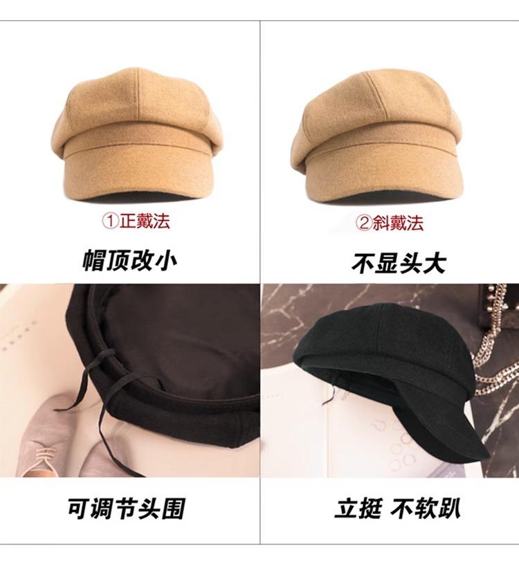 Sombrero Octogonal para Mujer Invierno Estilo Coreano Marca de Moda Sombrero de Otoño e Invierno Boina Retro Británica de Repartidor Estilo Japonés Estilo Cabeza Grande Boina para Hombre